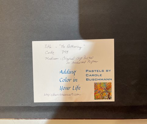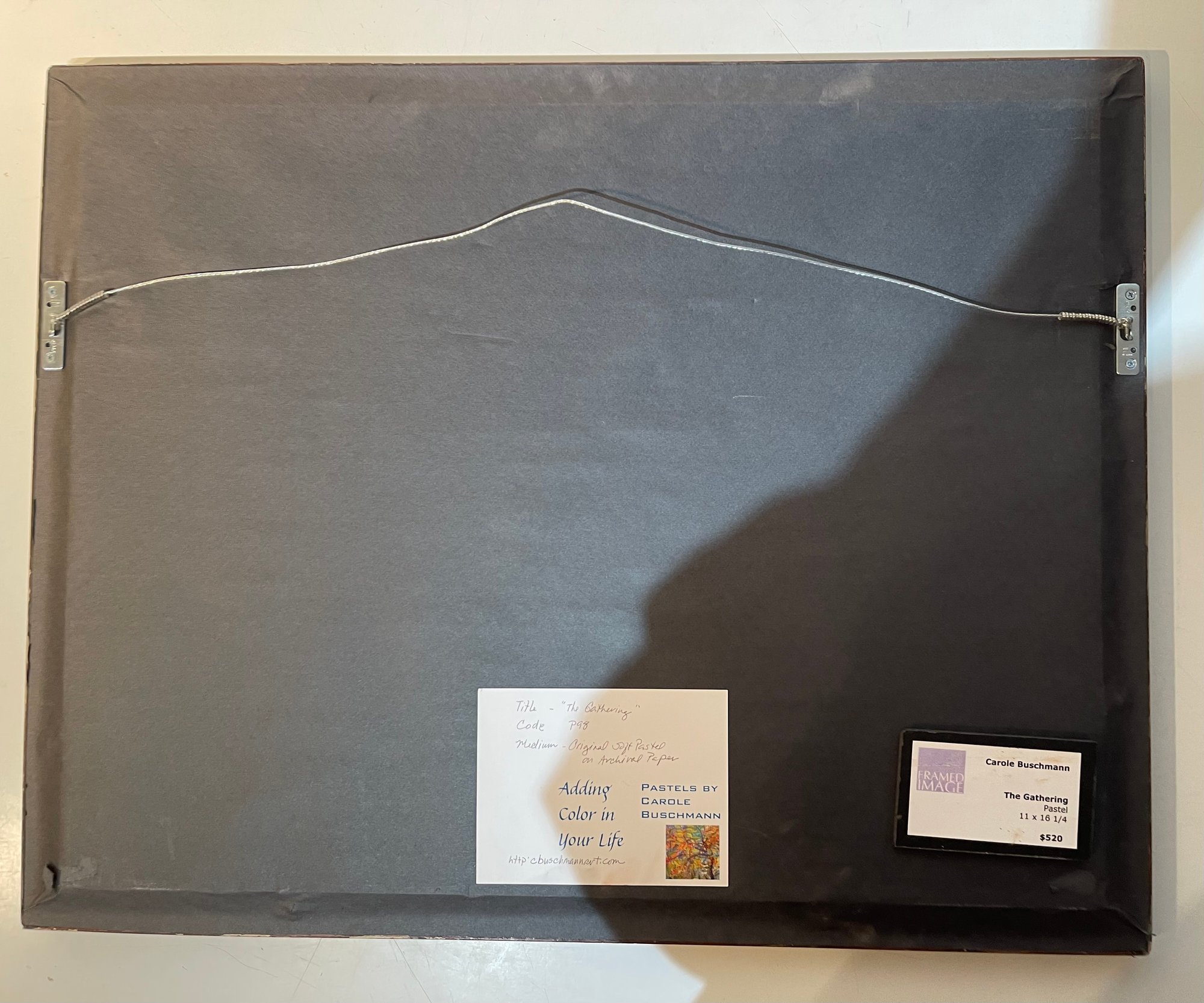 Beautiful signed pastel, double matted in brushed gold frame with glass. 25 x 19.5 inches, by artist Carole Buschmann.