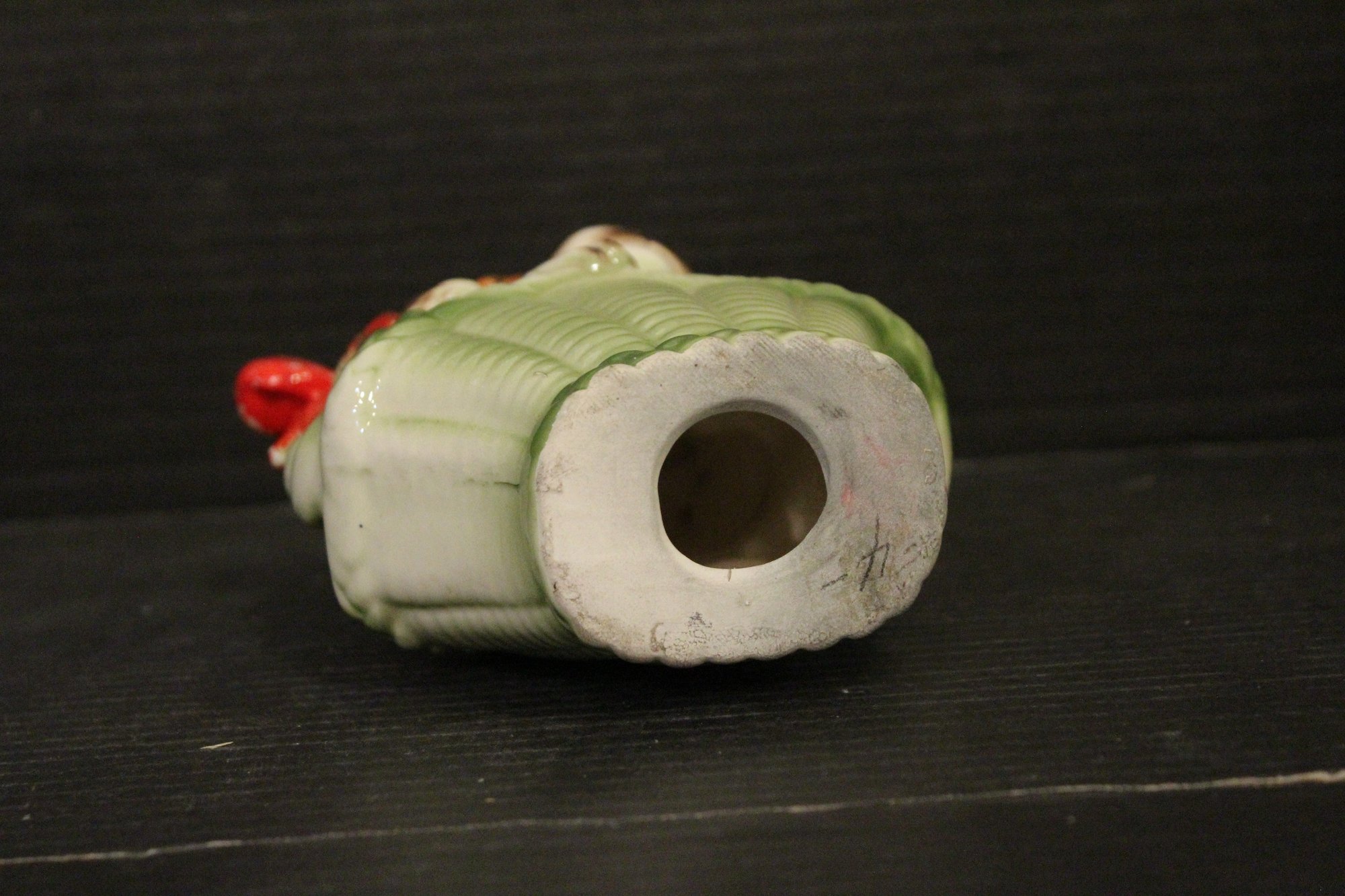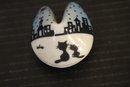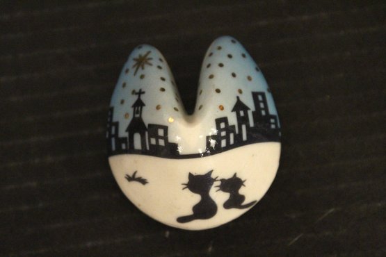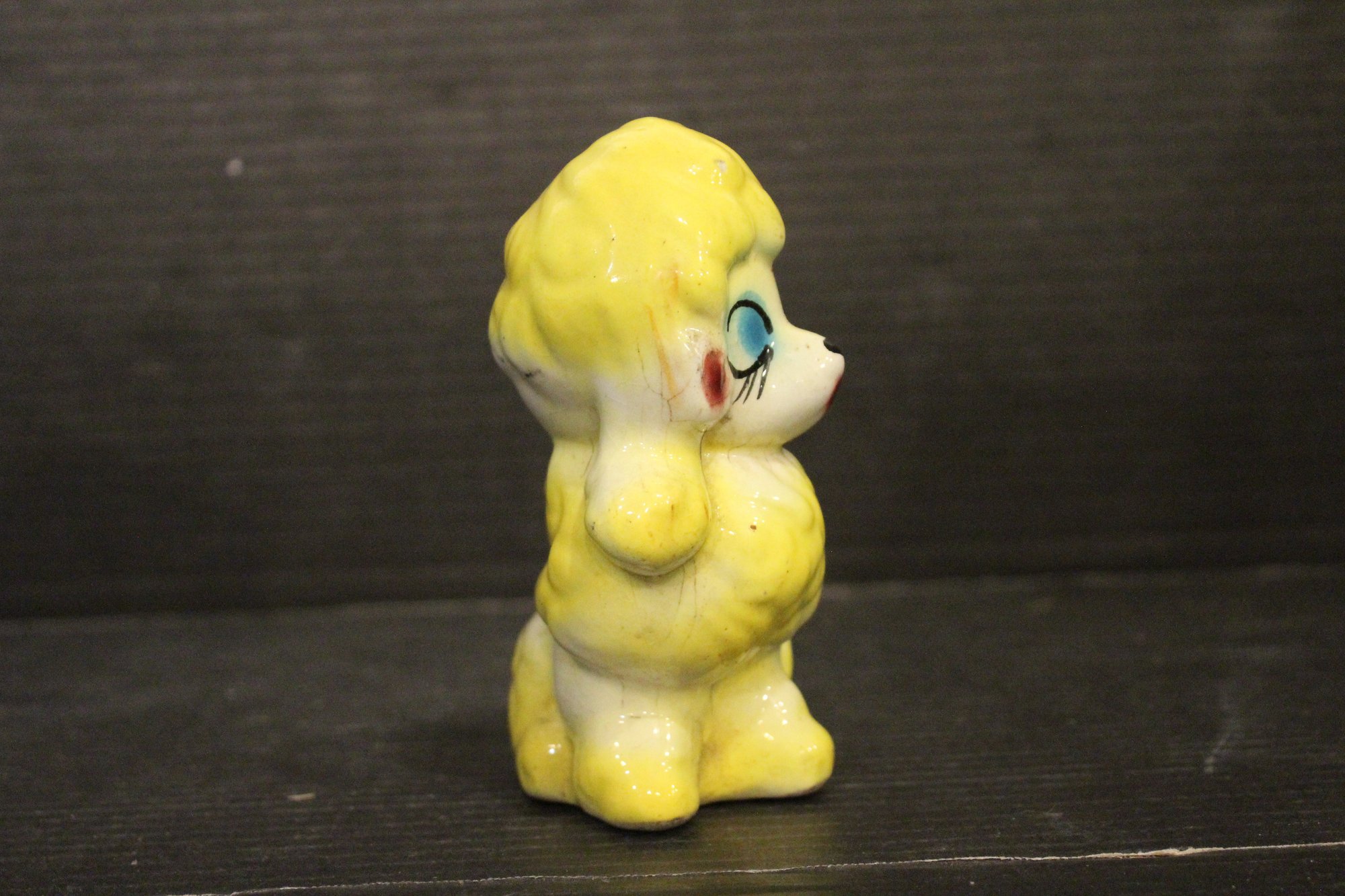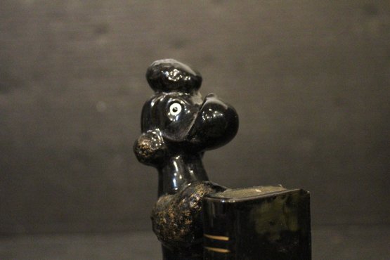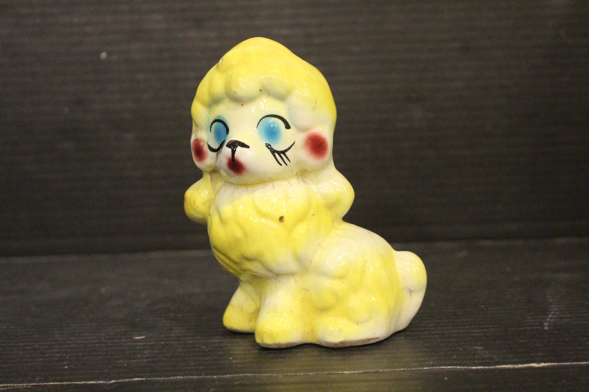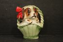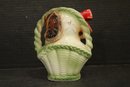 vintage 1950s Norleans Cocker Spaniel Ceramic Green Woven Handled Basket Coin Bank, 6" x 5", Vintage Redware French black poodle Bookend Pen Holder 7" x 3" x 2", Vintage Ceramic Poodle Figurine: Hand-Painted Dog Collectible 6" x 4", hand-painted ceramic fortune cookie-shaped trinket 2" x 1". These items can be shipped.