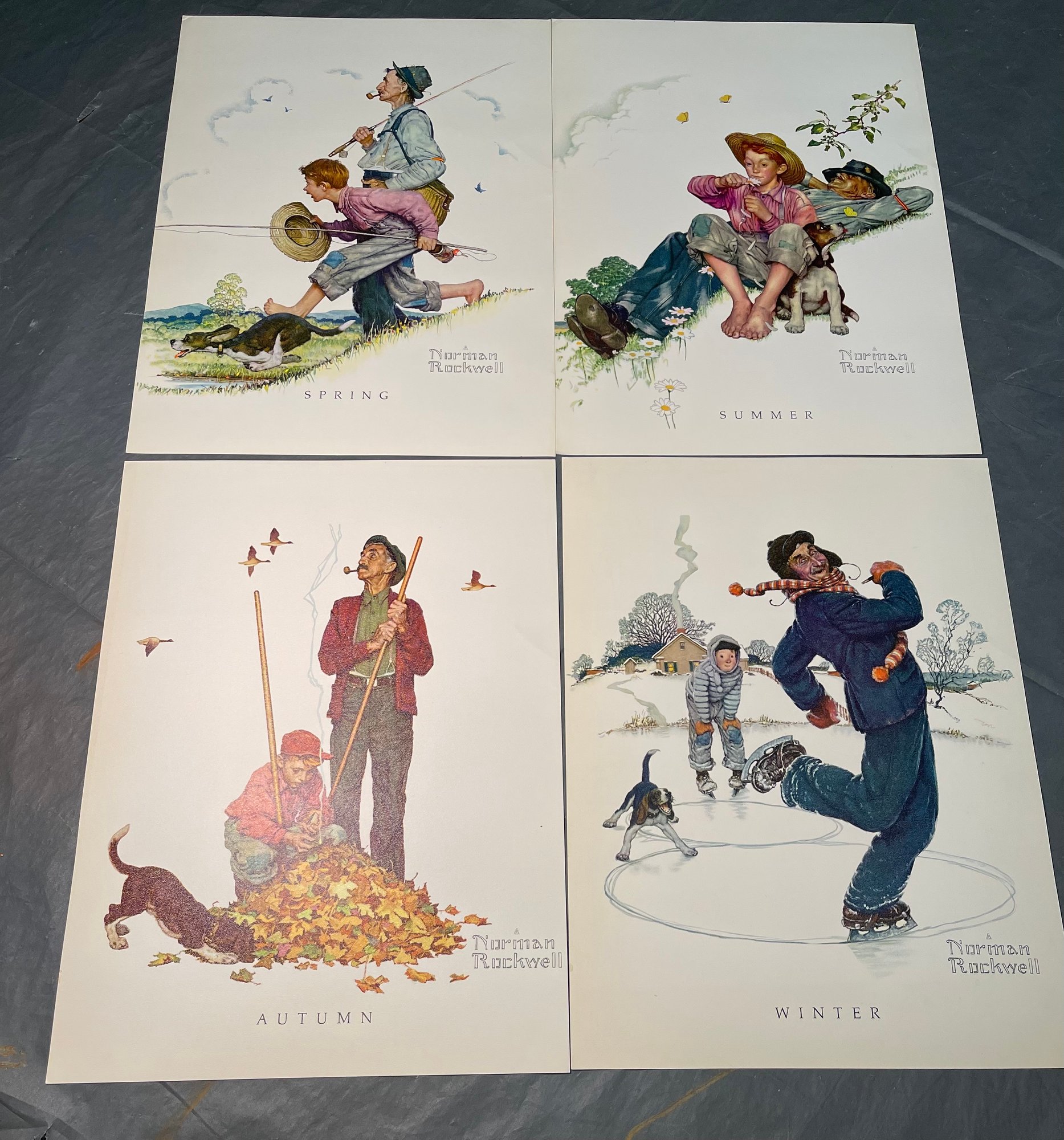 Vintage Norman Rockwell Fine Art Reproduction Prints of "The Four Seasons- Grandpa and Me". 16" x 12" - 4 prints.