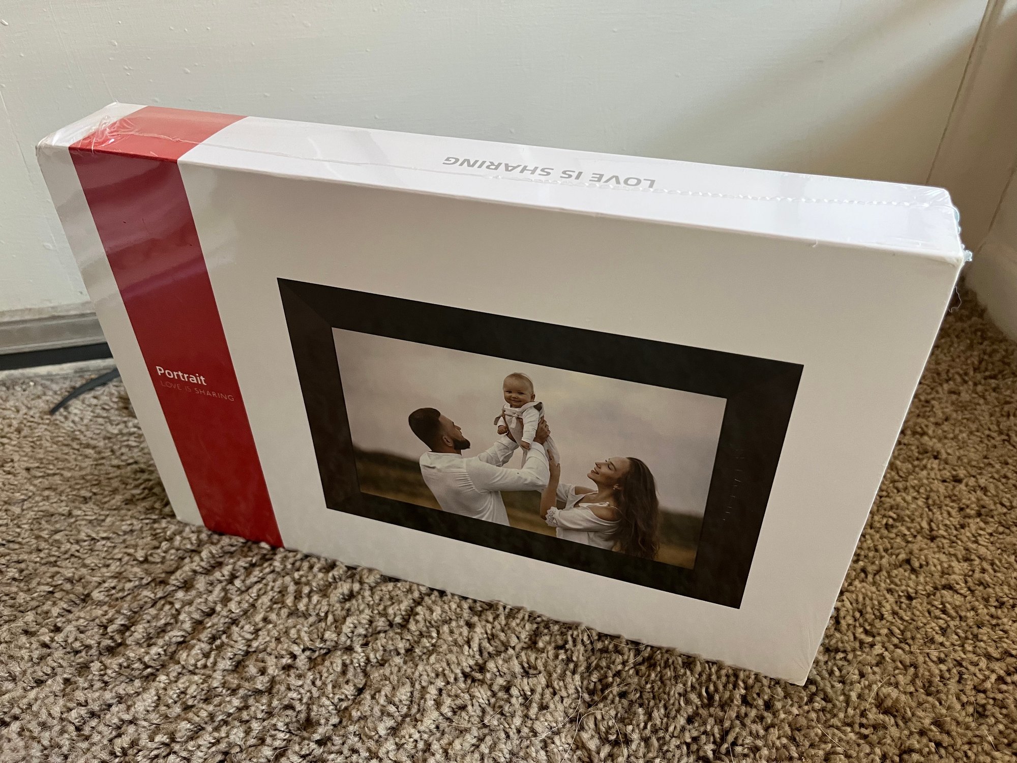 A Portrait Love is Sharing electronic HD, touch screen, picture frame 10.1". New still in packaging, this item can be shipped.