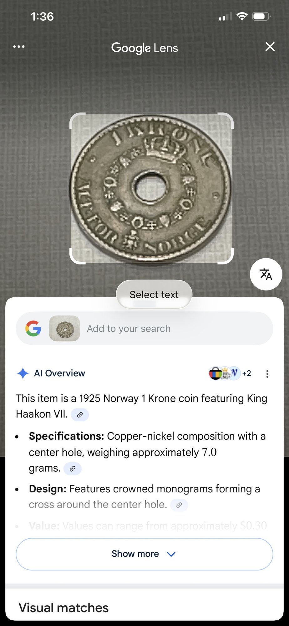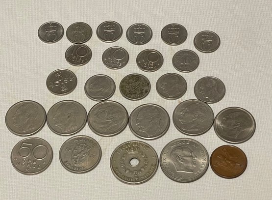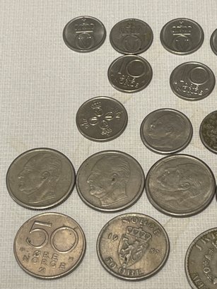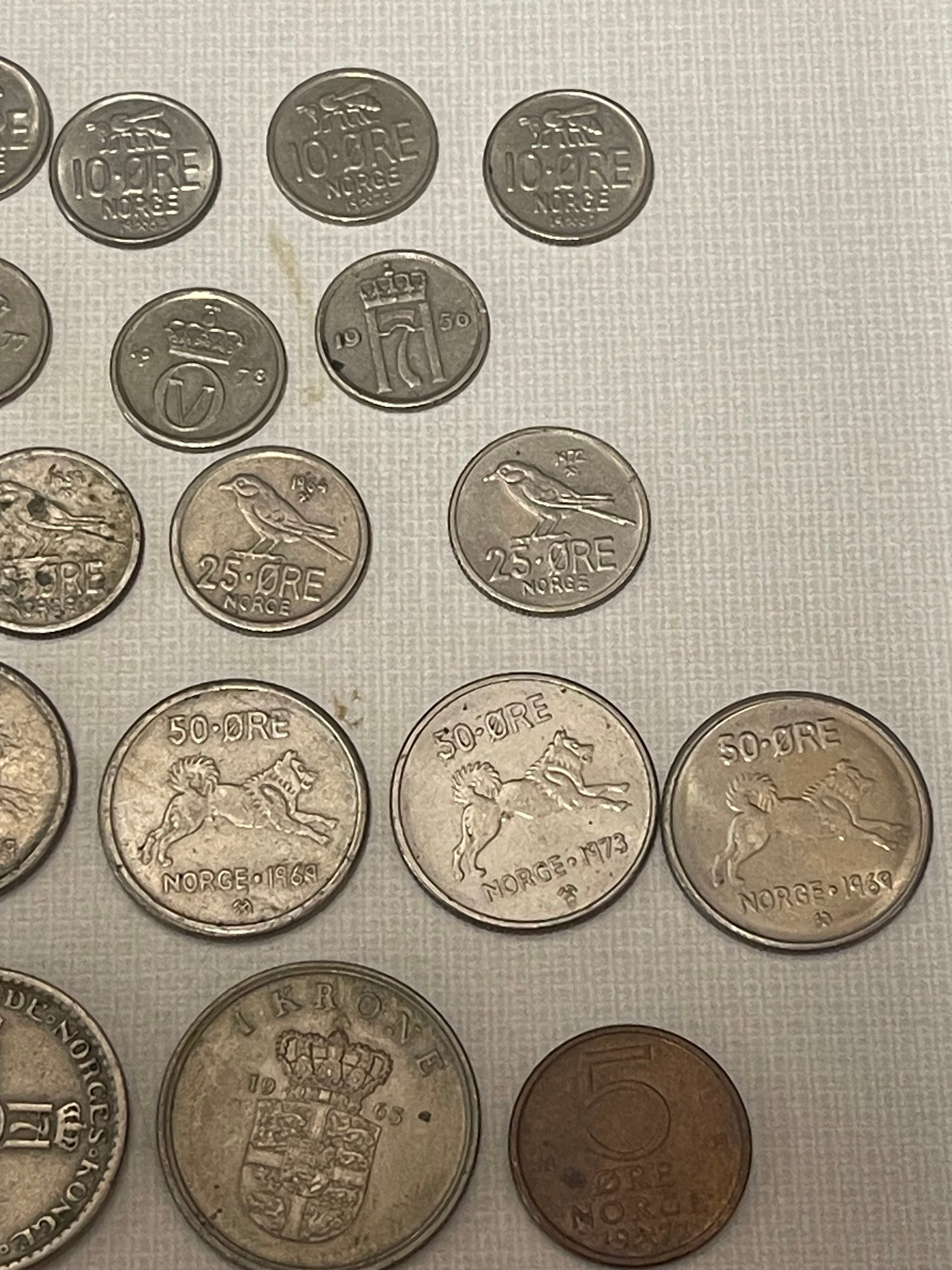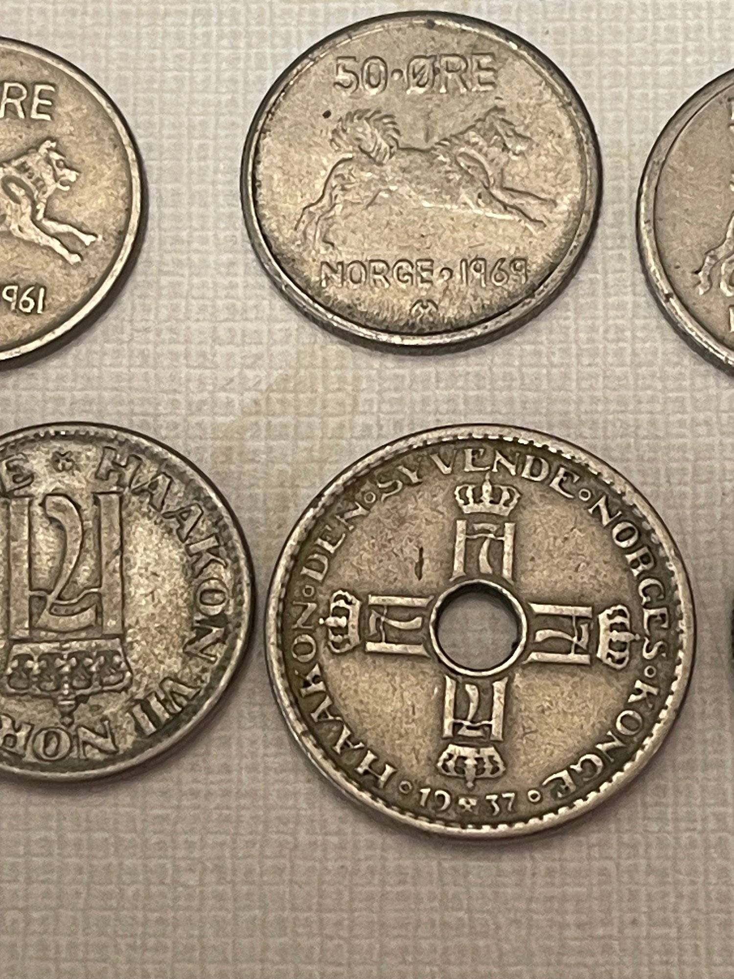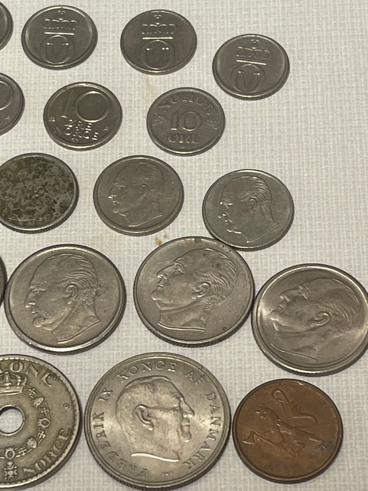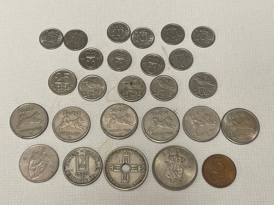 26 assorted Norwegian coins, including one that was produced in 1937 with an intentional hole in the center.