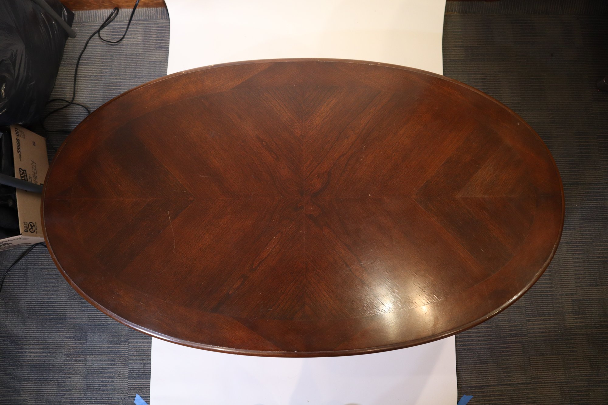 Notes: The edges show slight wear from use, with small spots of the finish missing. The damage is cosmetic and there is no major damage to the wood structure of the table.