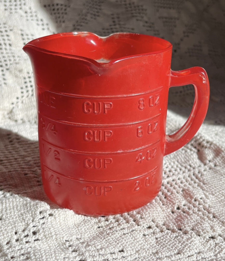 red glass measuring cup 3.5 inches tall