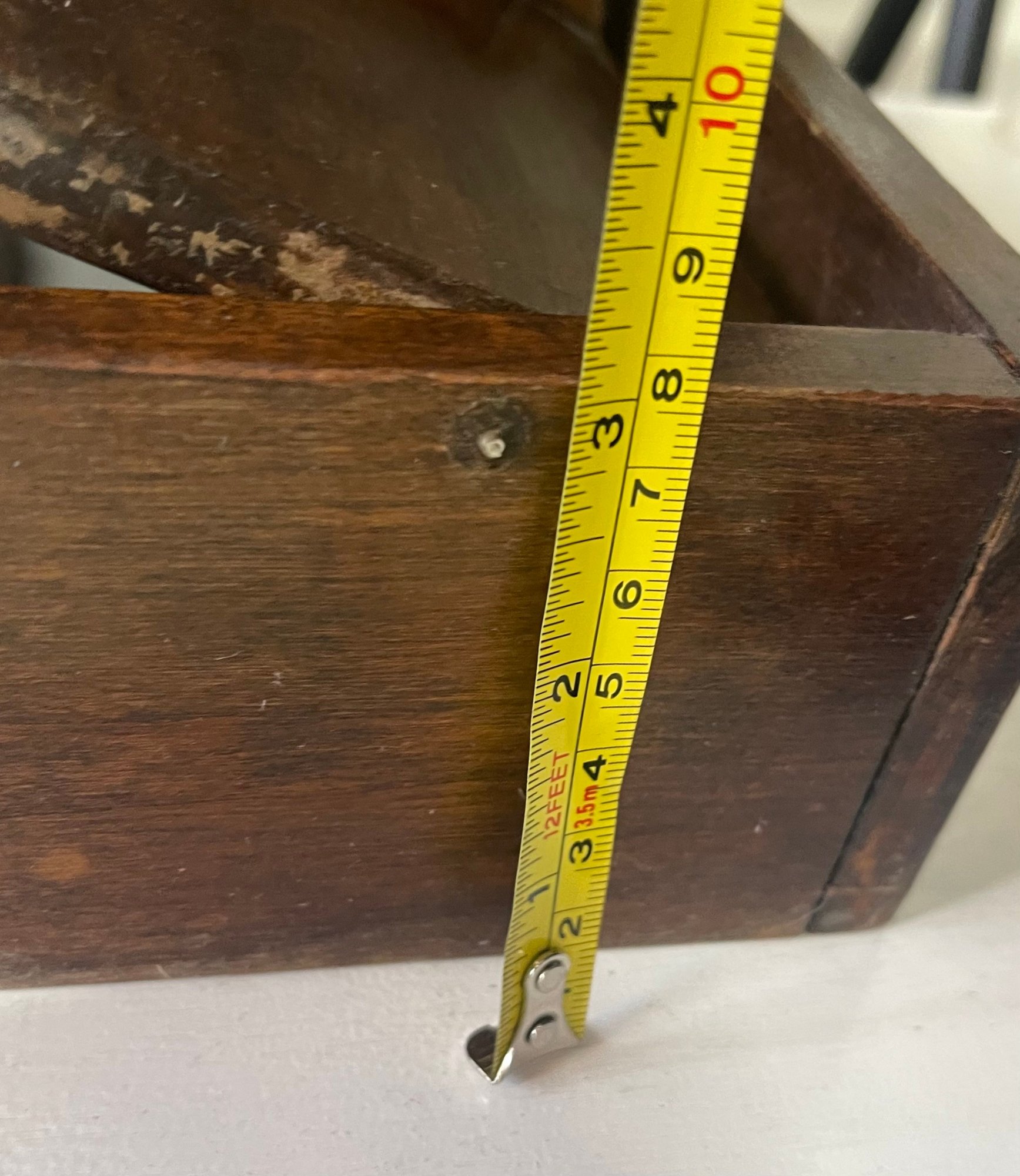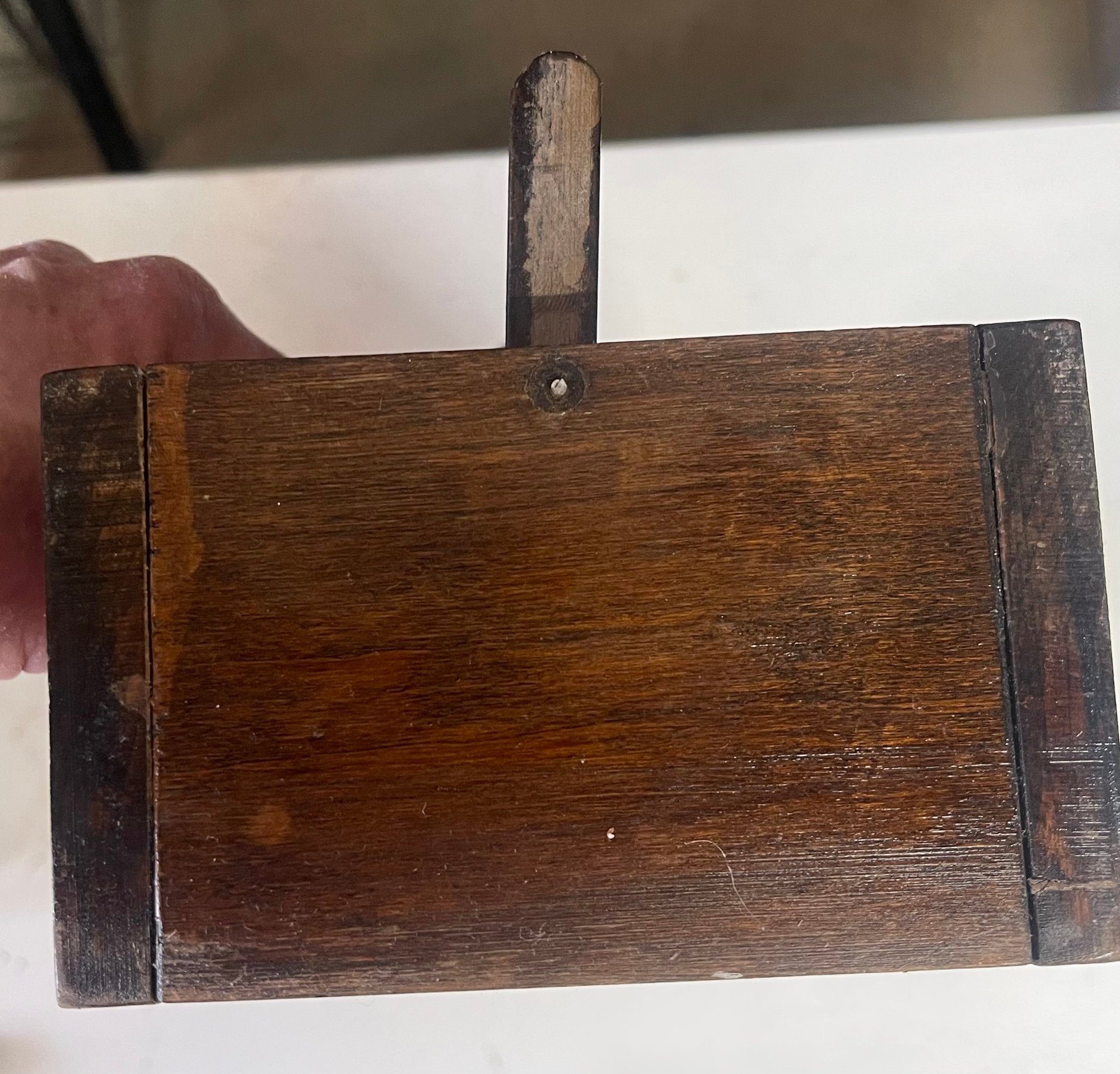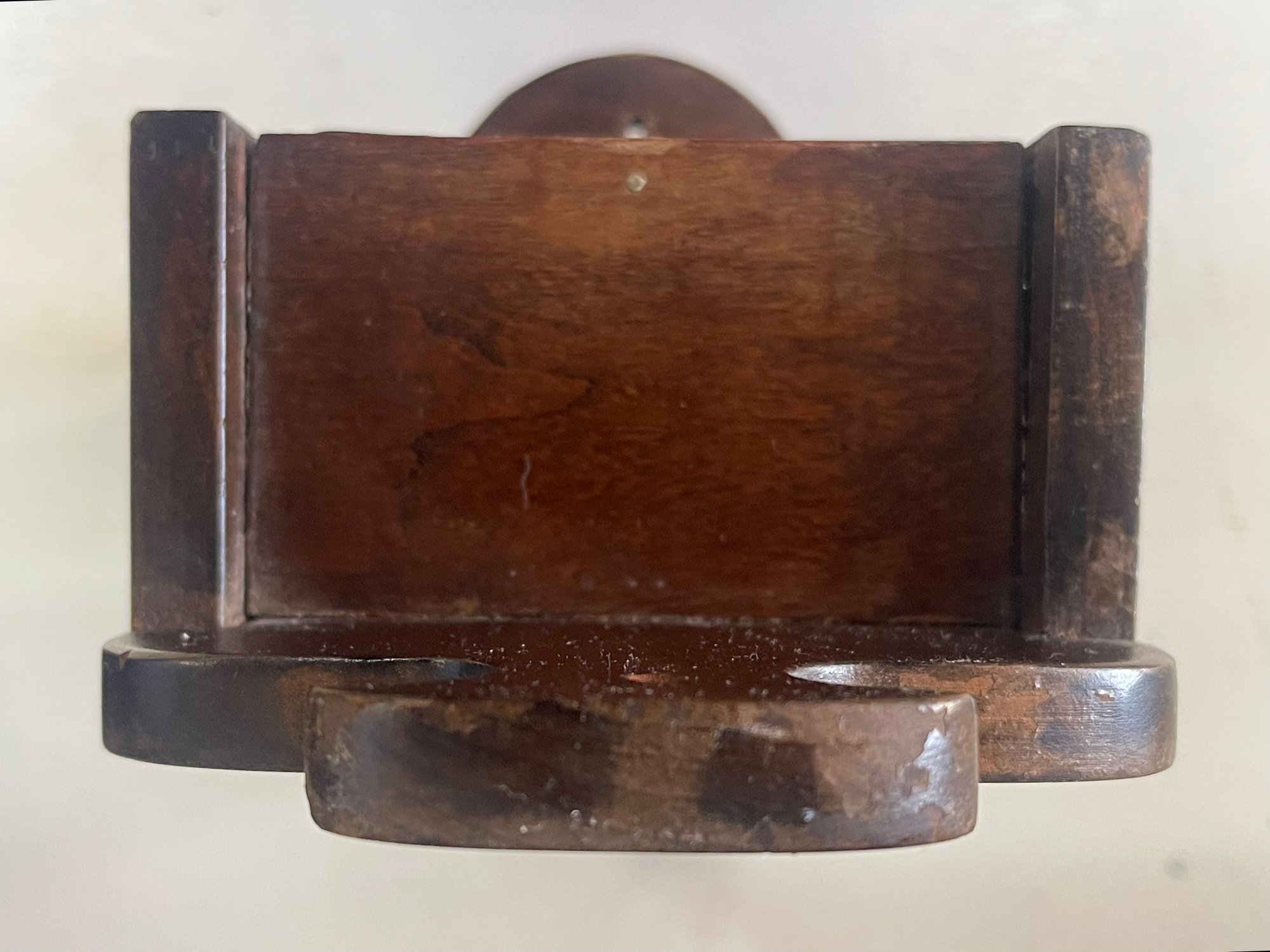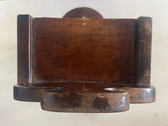 Primitive wall mounted knife holder with revolving door. 14 H x 5 W x 3 D. Sturdy and in good condition. This can be shipped.