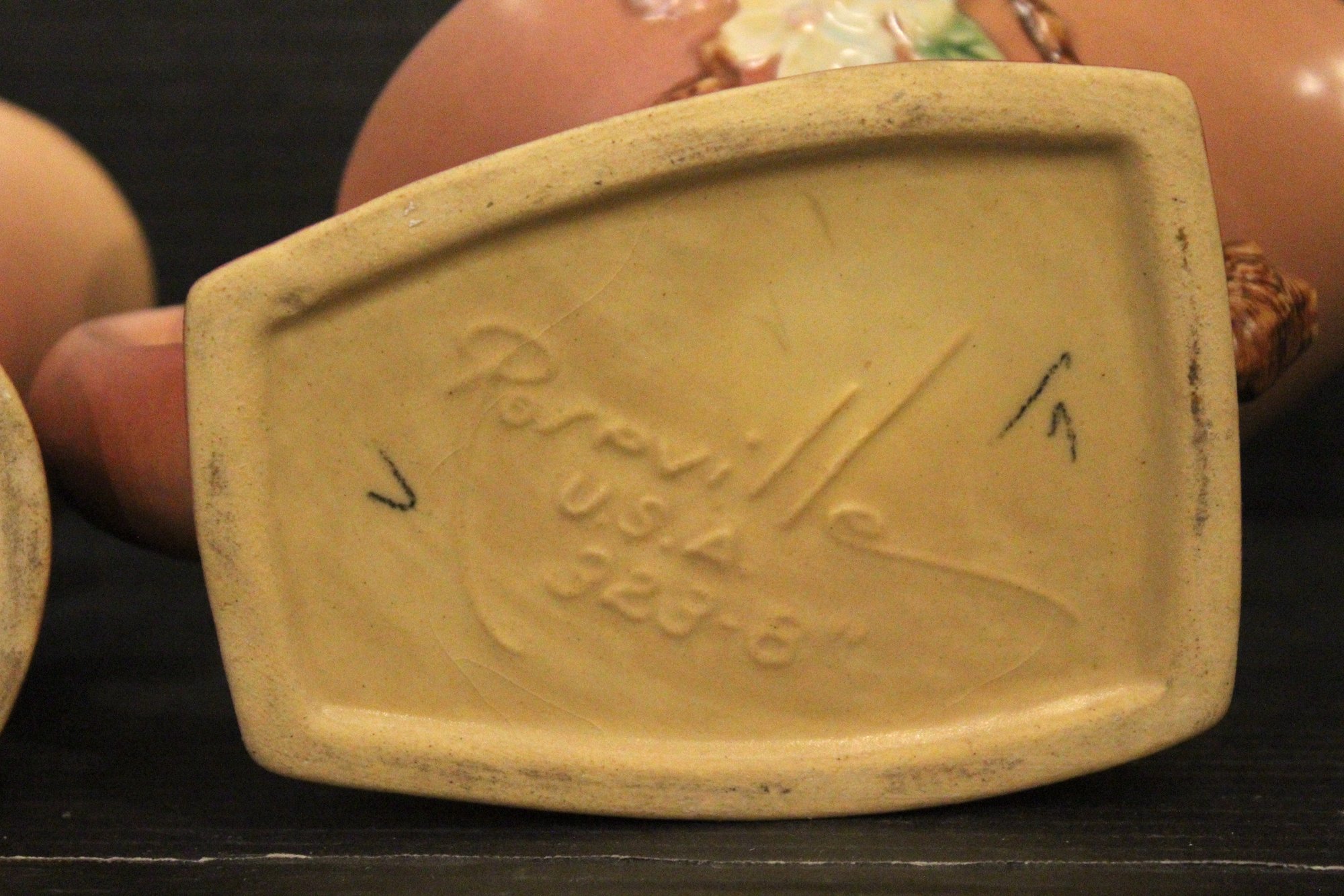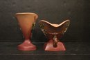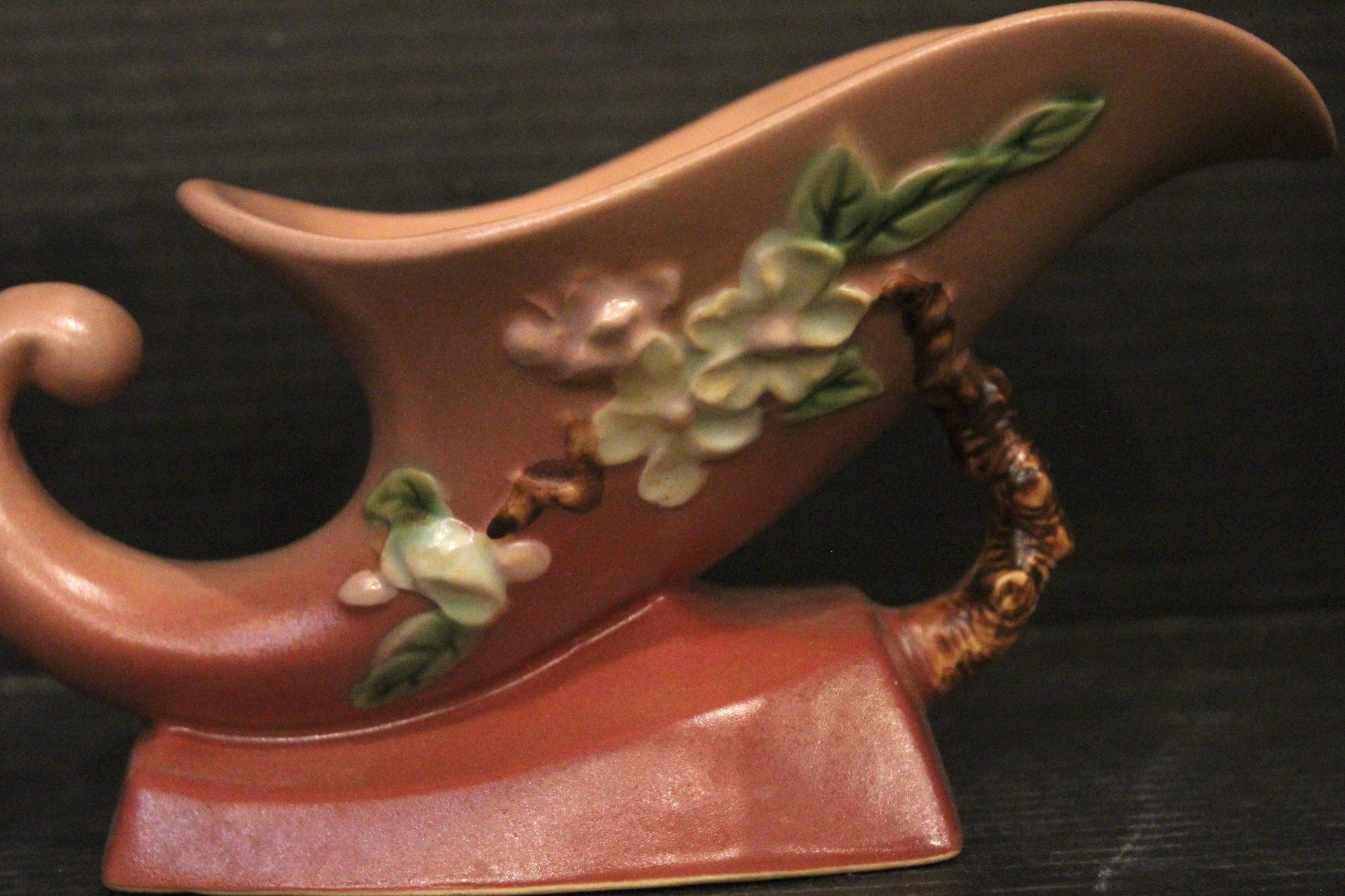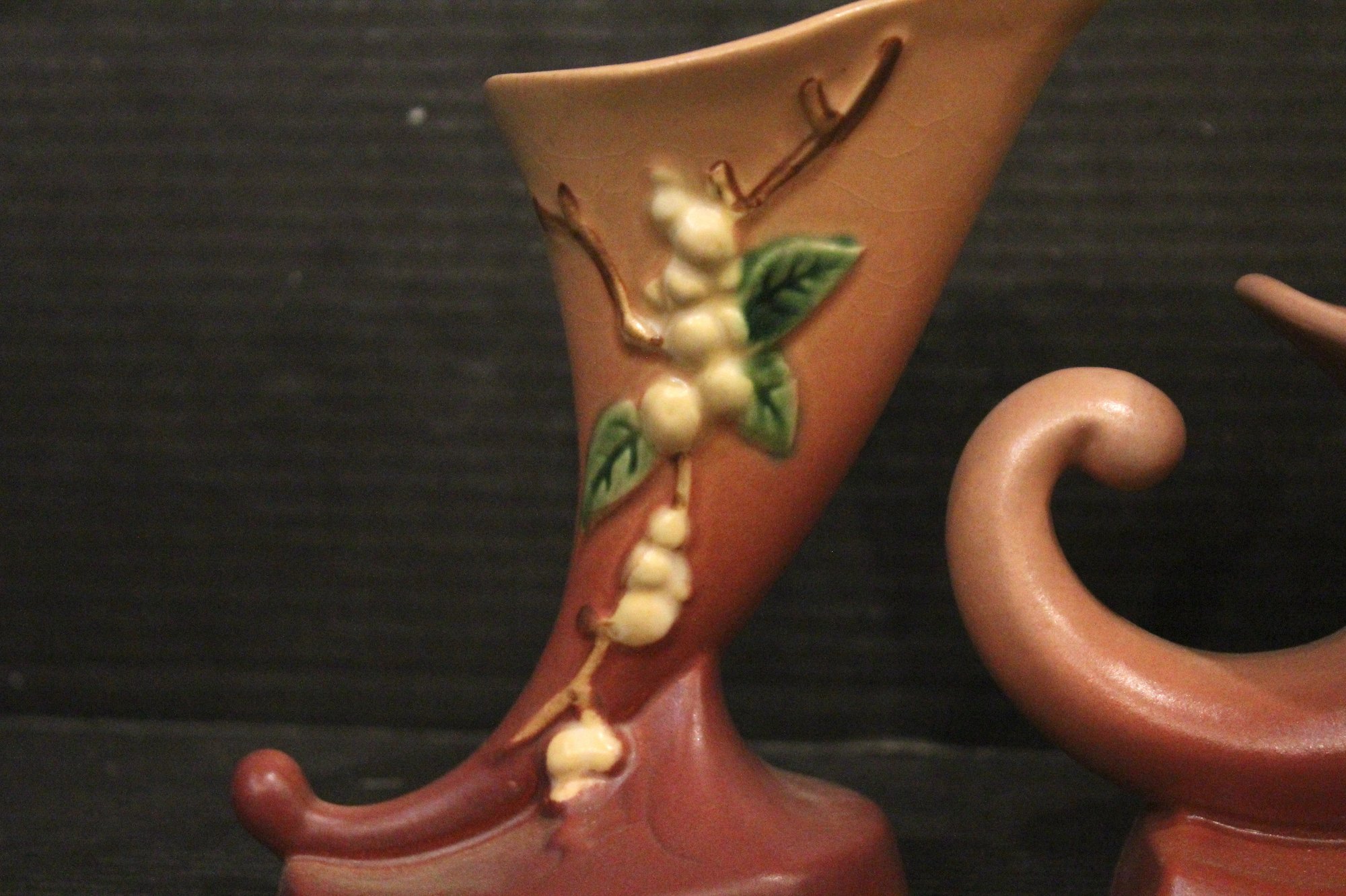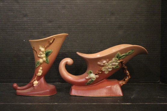 Roseville Pottery 'Snowberry' cornucopia vases in the dusty rose (pink) color 6" x 6" and 5" x 9"