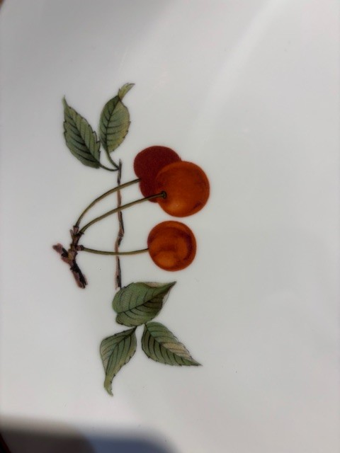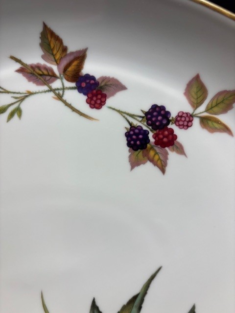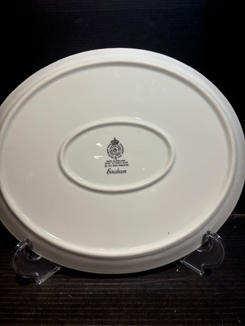 Royal Worcester Porcelain Evesham Pattern 11" Oval Serving Platter. The Evesham pattern was introduced in 1961. This is a fine porcelain designed for oven to table use.