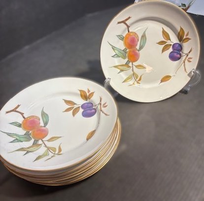 Royal Worcester Porcelain Evesham Pattern Gold set of 8 10" Dinner Plates. Oven to tableware. This item will ship