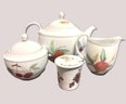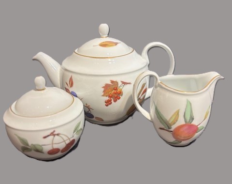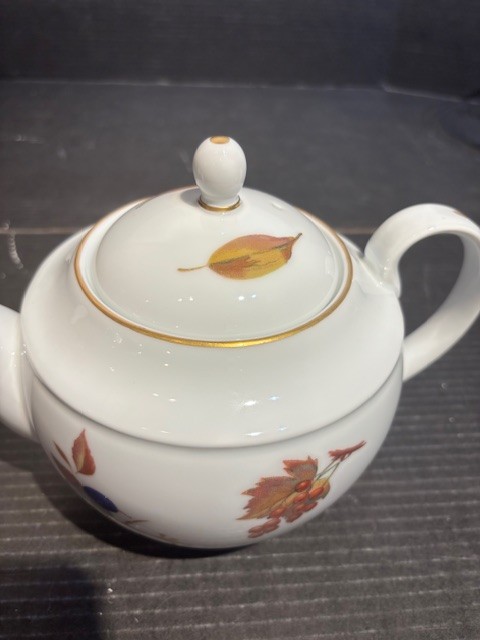 Royal Worcester Porcelain Evesham Pattern Gold Tea Pot, cream & Sugar and Honey bowl (np spoon)
