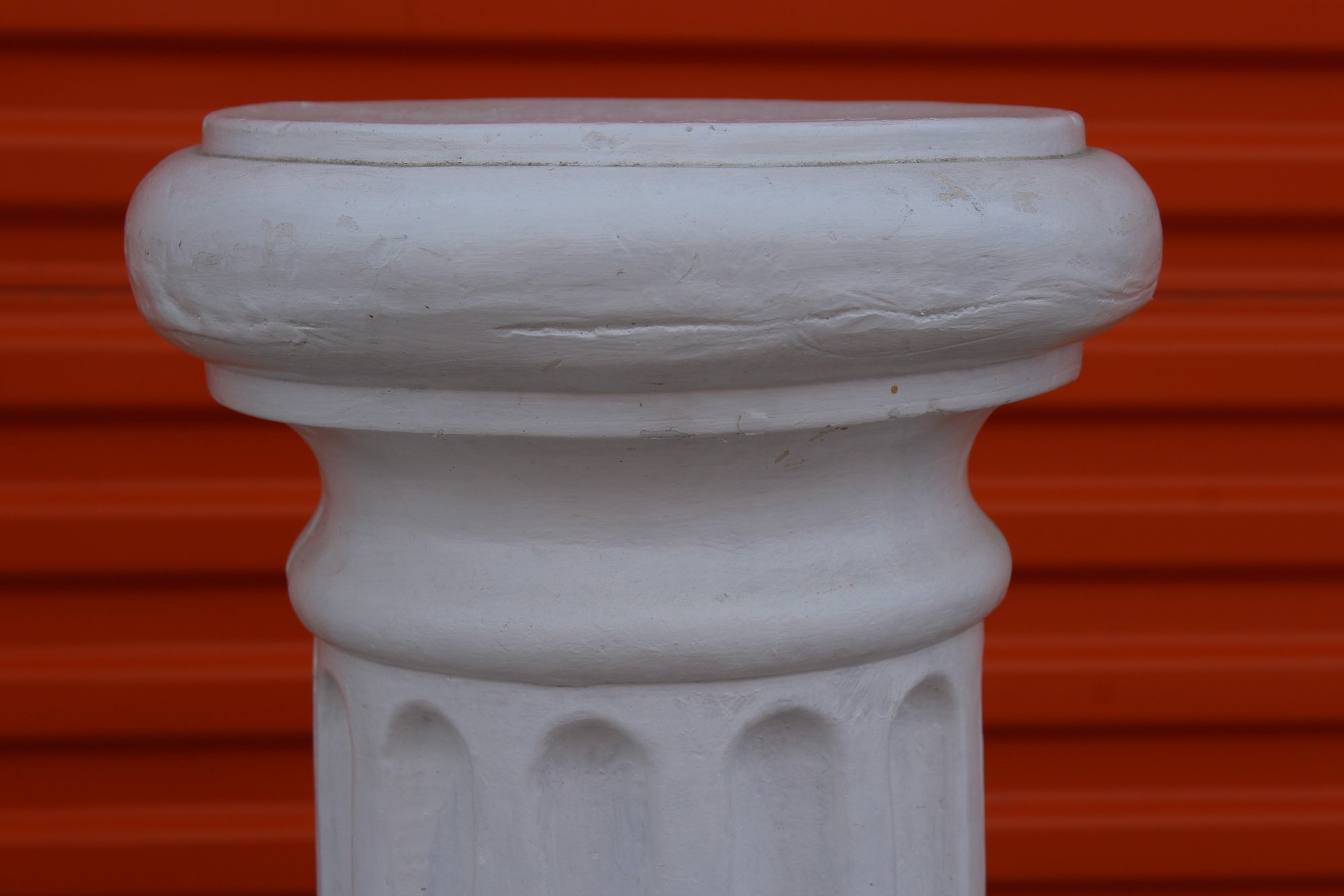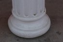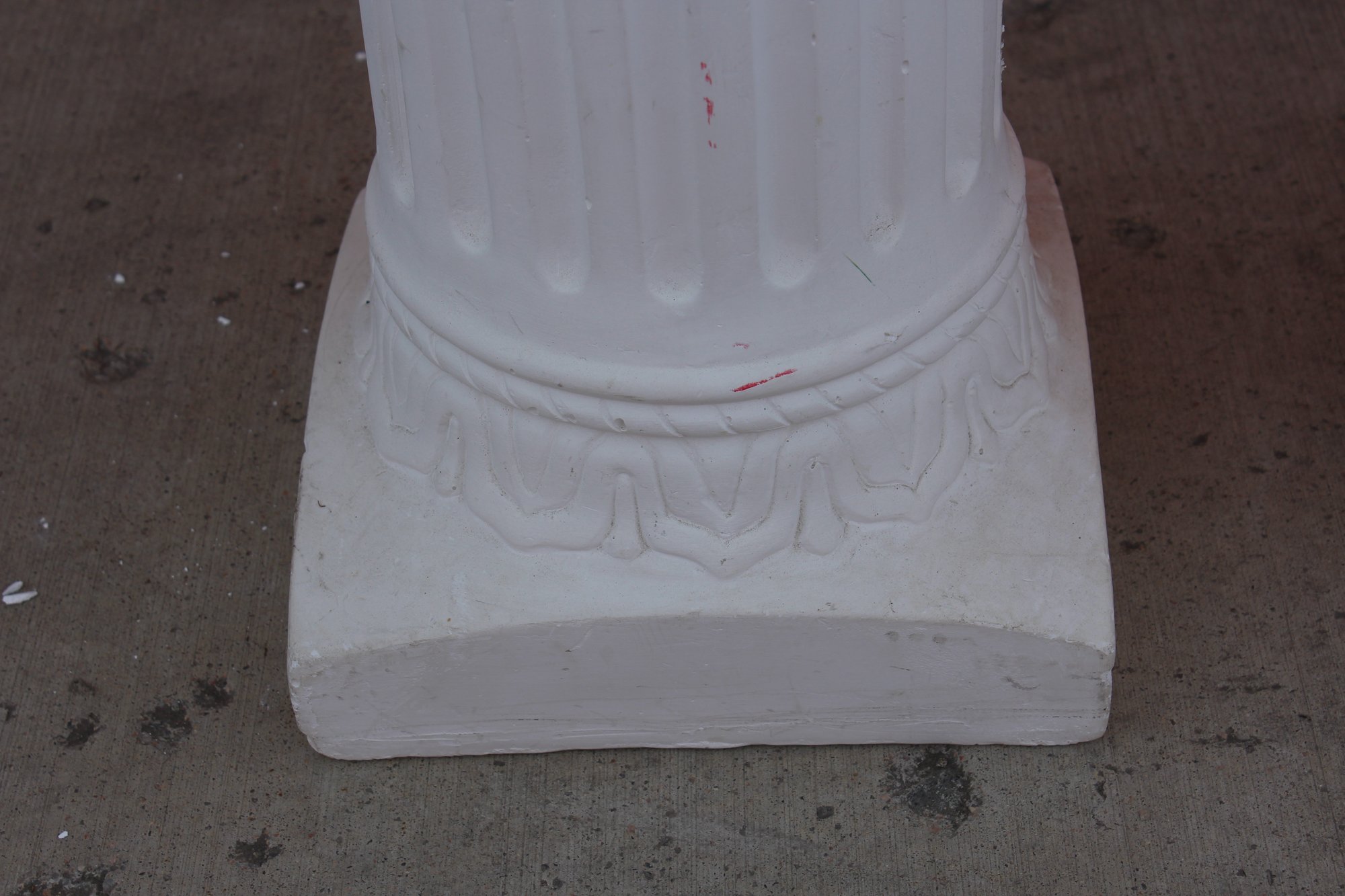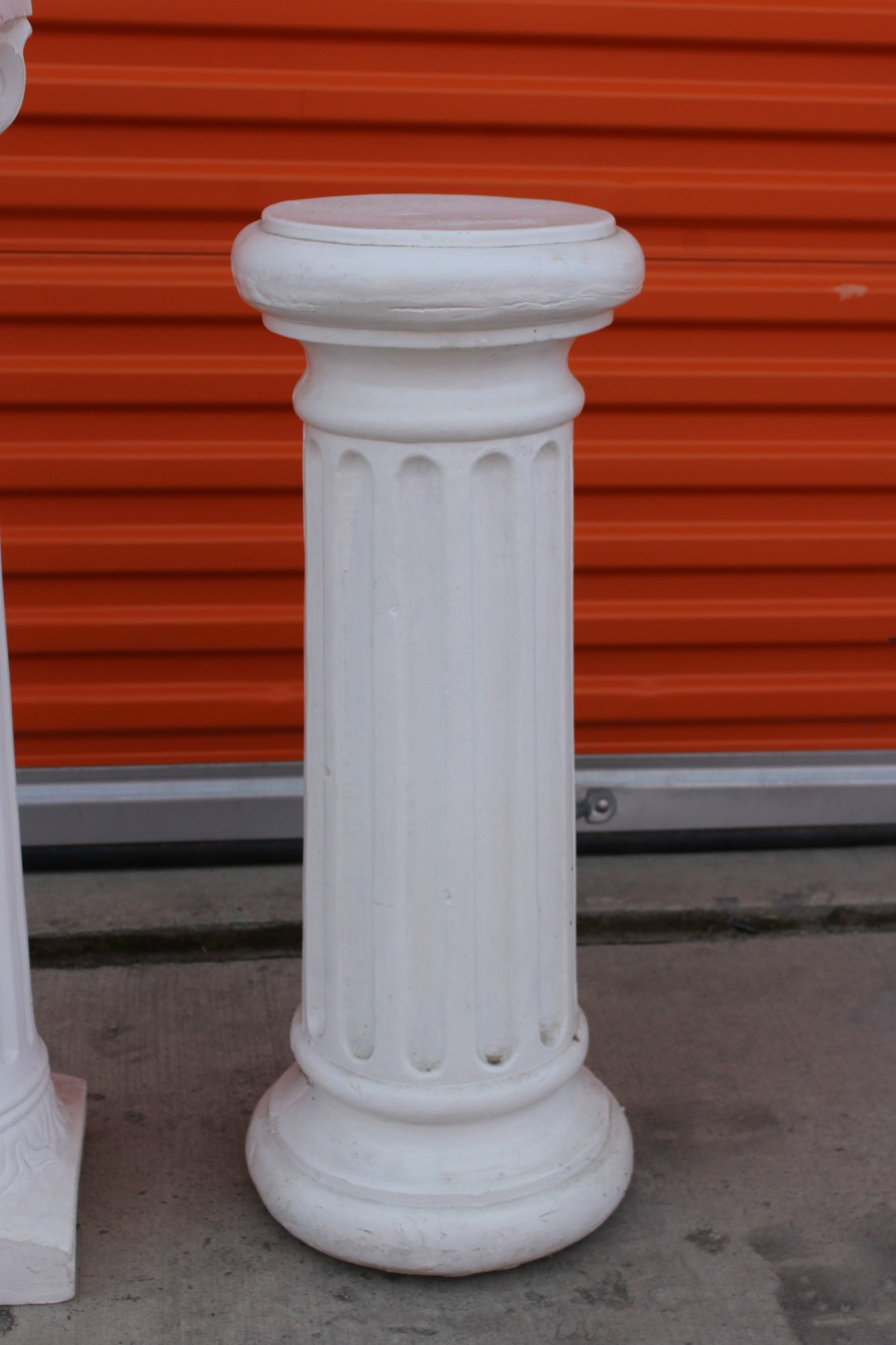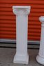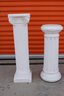A second set of small white decorative Roman or Greek style column pedestals, 35" x 9.5" and 30" x 10.5". These items can not be shipped.