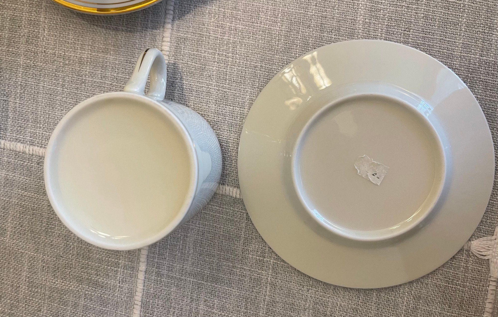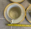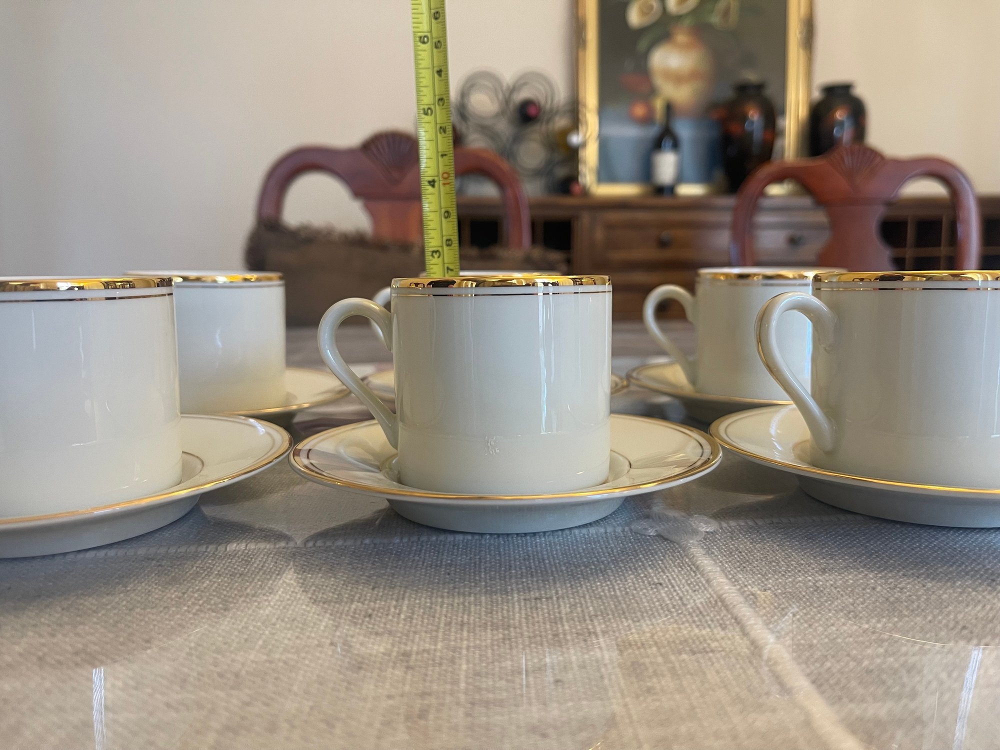 Approx. 2.5 inches tall, 5 inch diameter saucers. Good condition. These can be shipped.