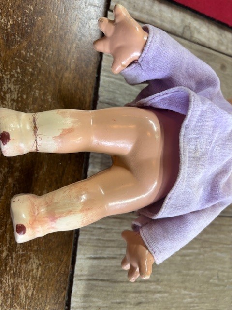 Seven Dwarf 1937-1938 Rare Knickerbocker Toy Company 10" High. He is missing his pants, and his feet need some composition repair on his feet and side of his head, but he has all his fingers and body is in good shape. He is fragile in his old age this item ships
