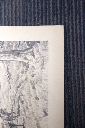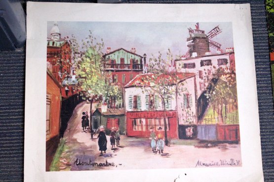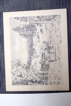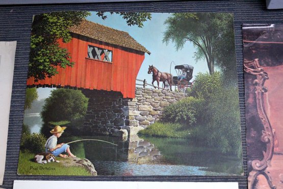 vintage print of the artwork titled "The Old Bridge" or "The Red Covered Bridge" by the artist Paul Detlefsen.