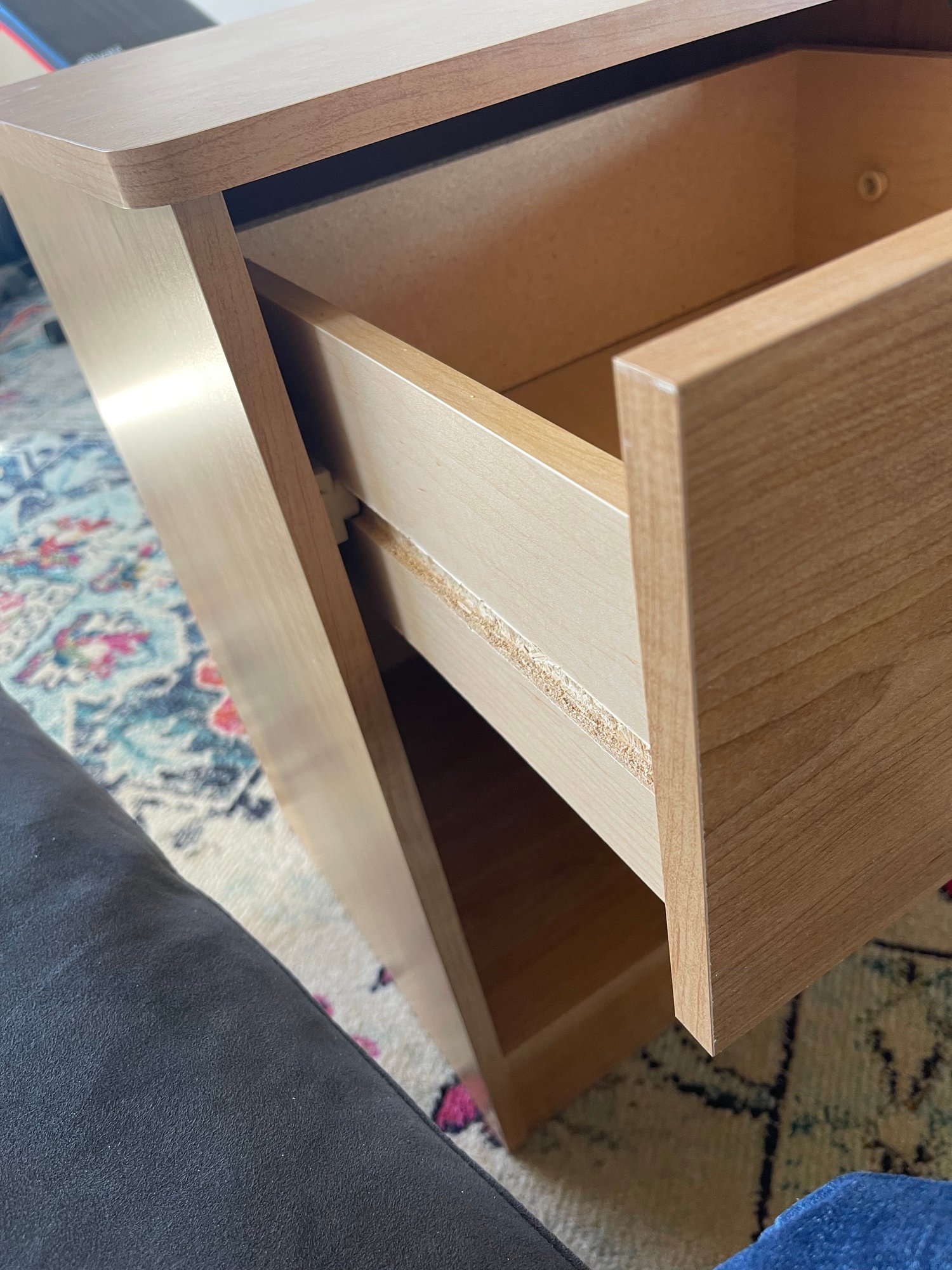 Wood laminate table, 1 drawer. Good condition.