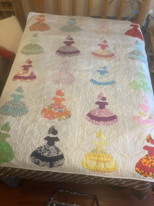 Photos shown on Queen size bed. Handmade, machine sewn & quilted with tulip & heart pattern.