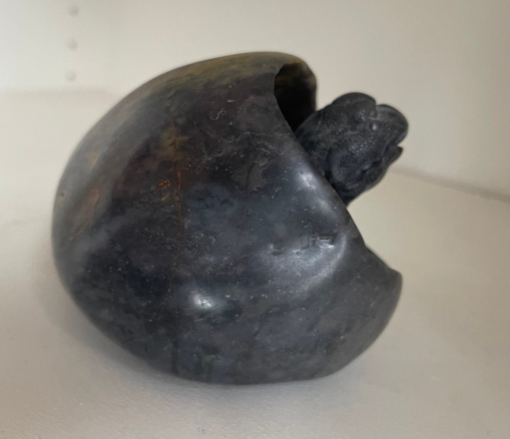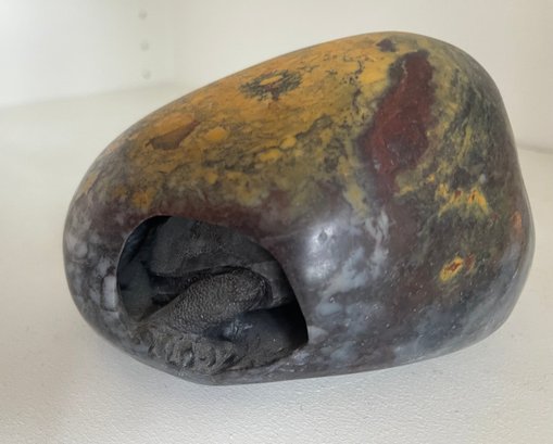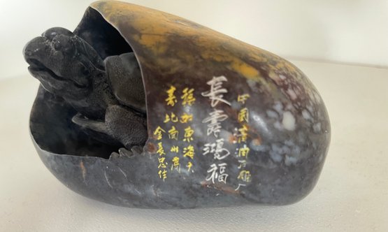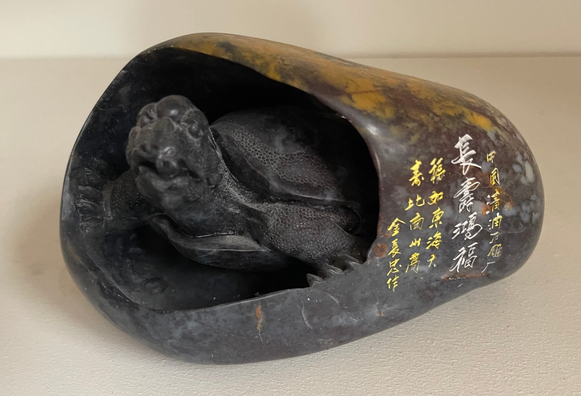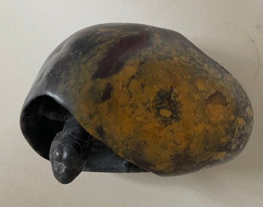 Both sides of turtle are carved from a single stone. The turtle signifies long life. This is 5.5 x 3.5 and heavy.