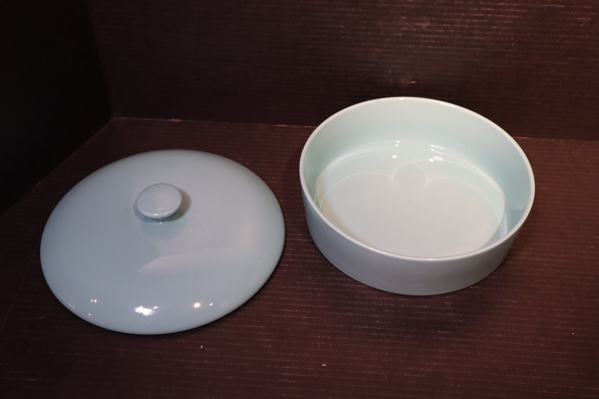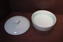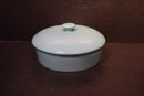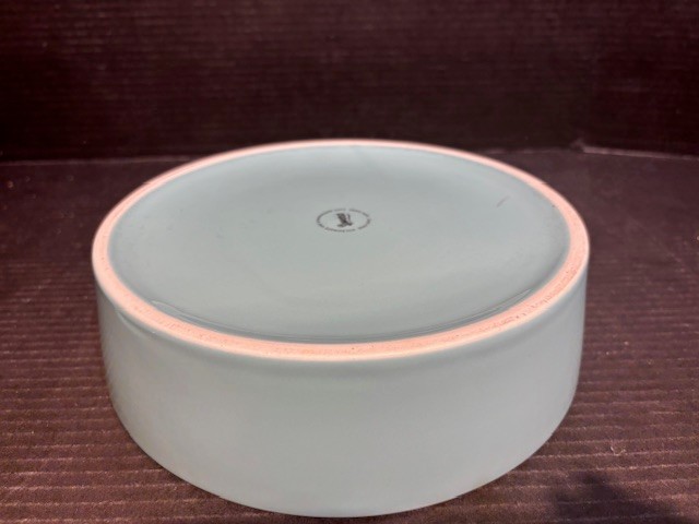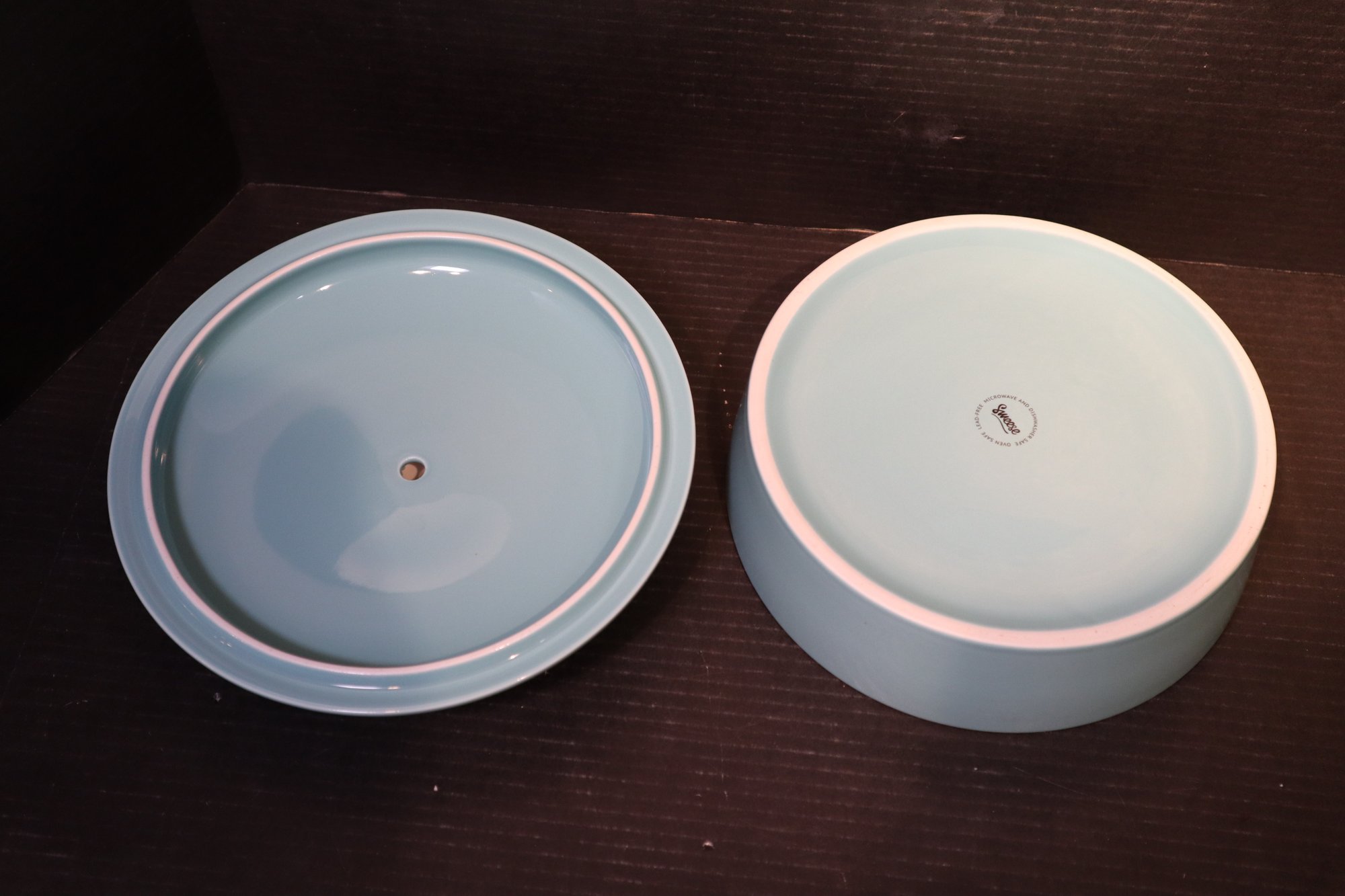 A light blue Sweese Tortilla warmer. The item is in excellent condition with no damage. The description of the item as per Sweese's website "Porcelain Tortilla Warmer is sturdy well made with high-quality food-grade Porcelain, which is durable, odorless. Use it to keep tortillas nice and warm. This tortilla warmer are smooth, can be cleaned easily in warm water." It is microwave, dishwasher, and oven safe.