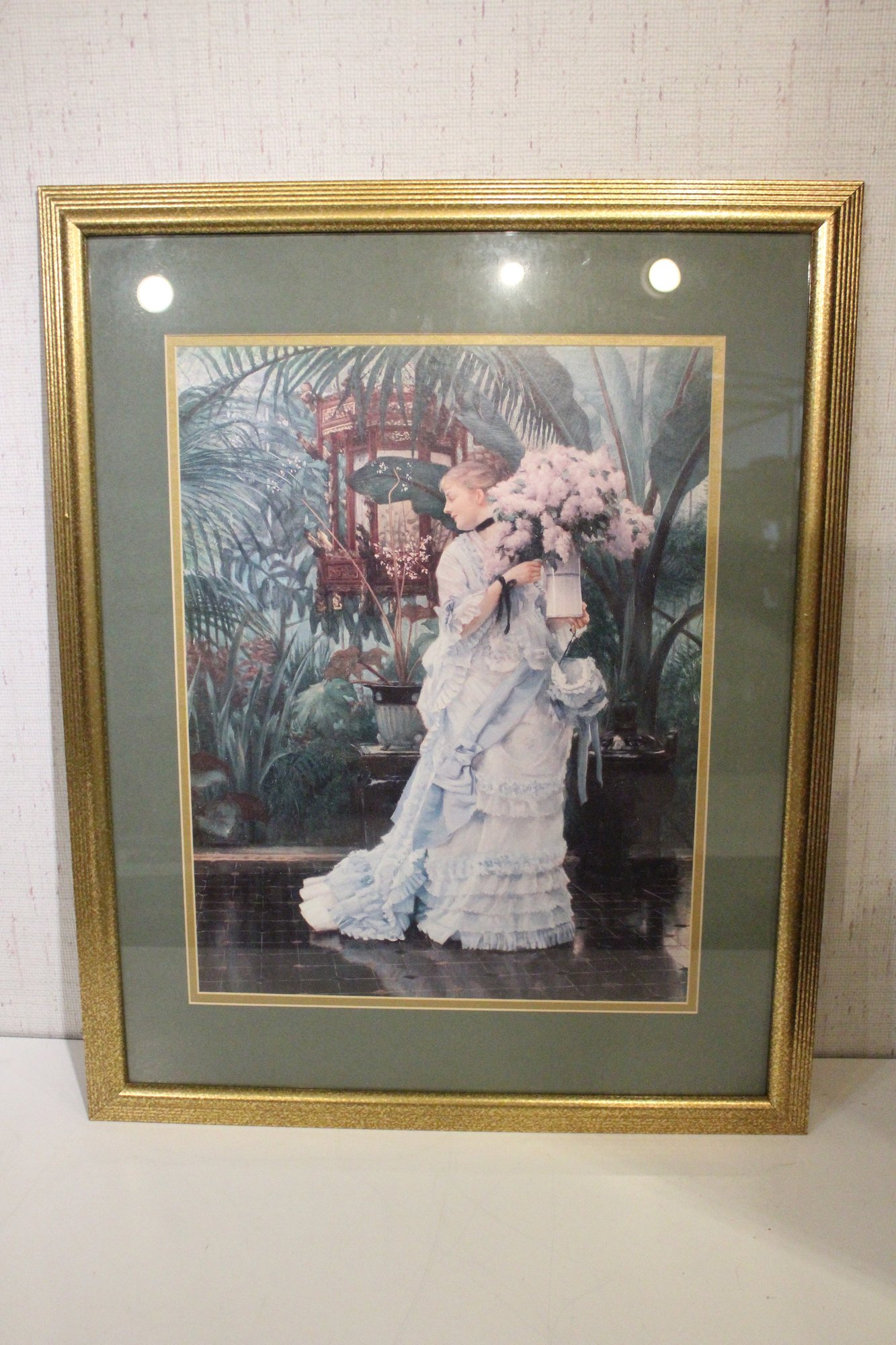 The Bunch of Lilacs by James Tissot 1875 vintage framed print in a decorative gold frame at 31" x 25". This item can be shipped.