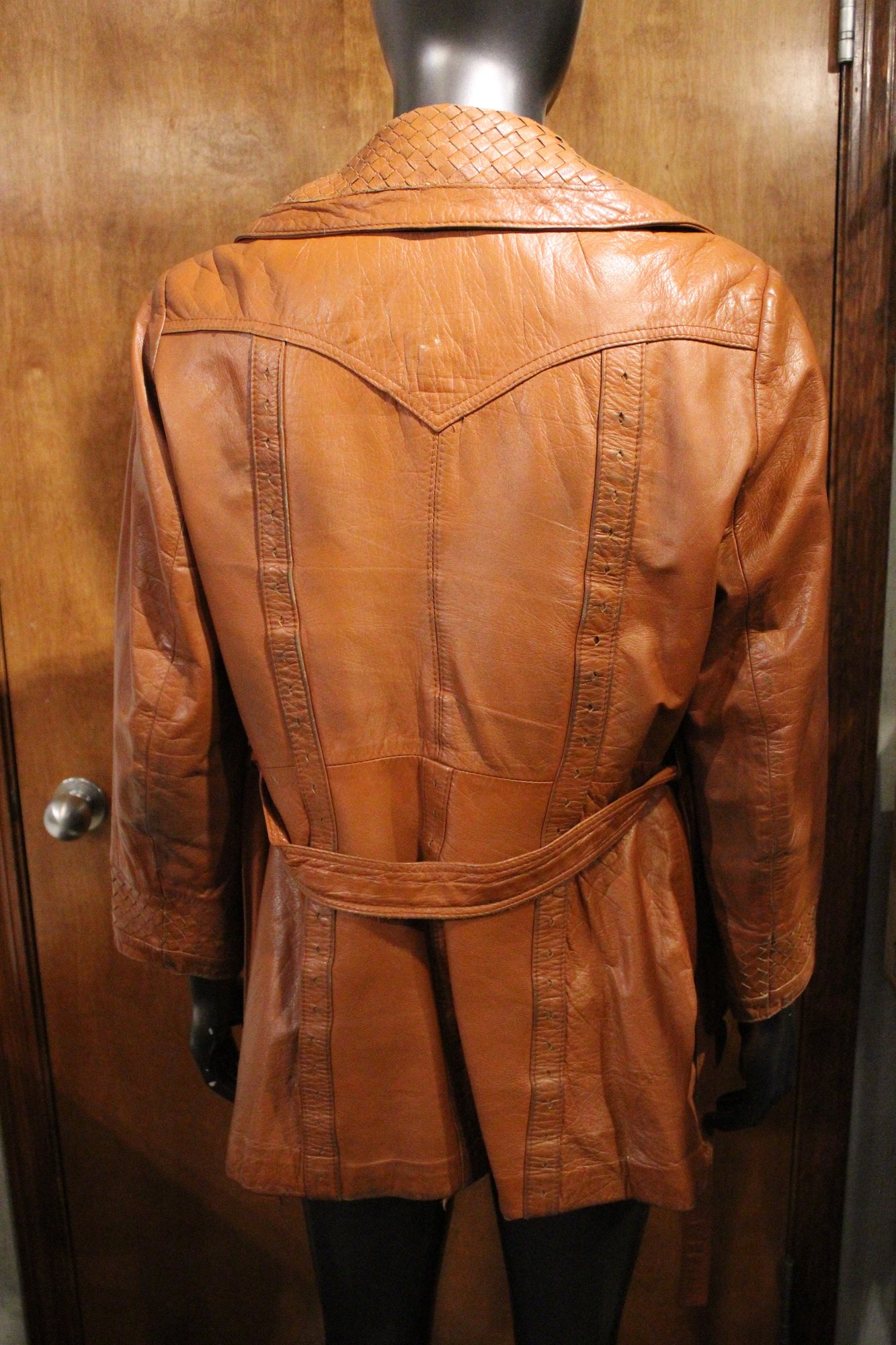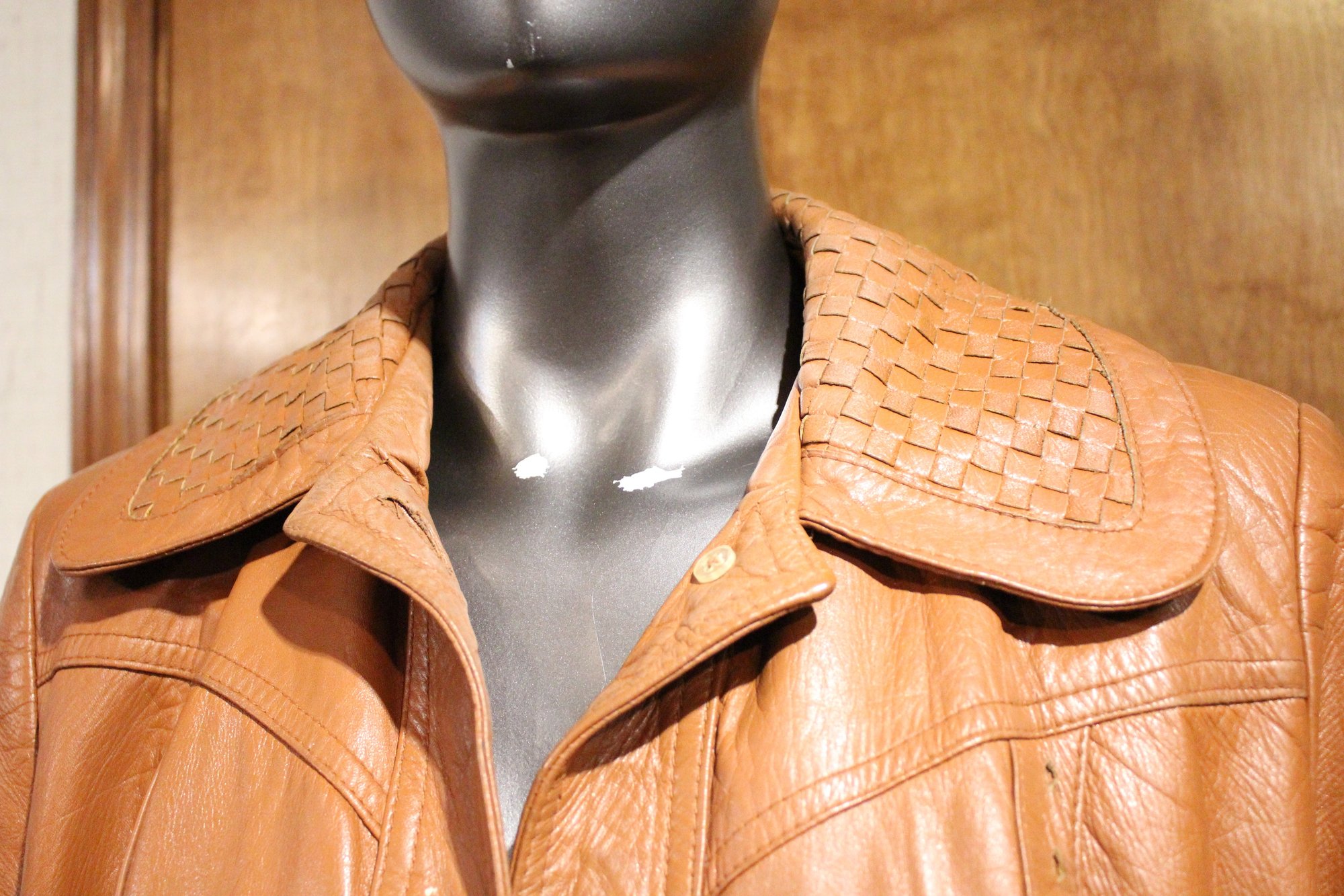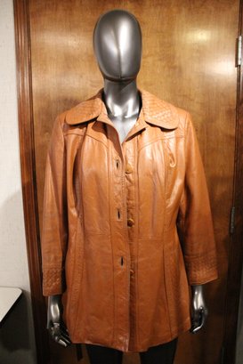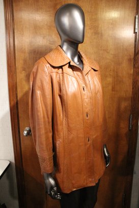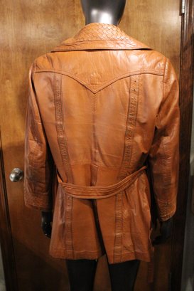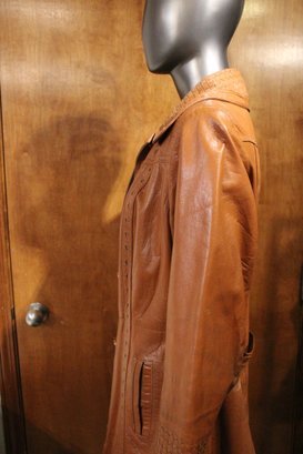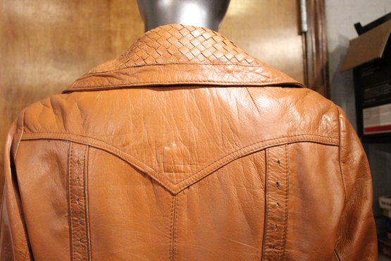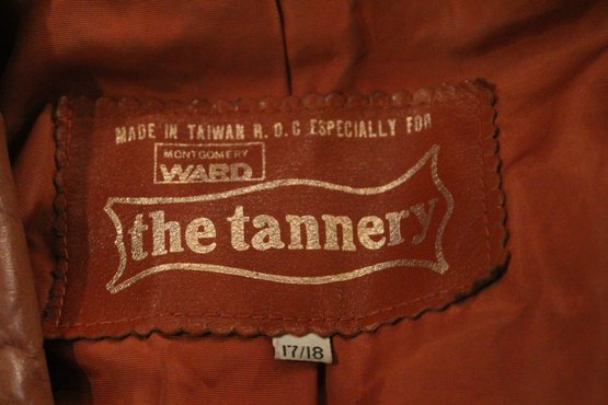 Montgomery ward The Tannery, vintage Womens brown leather jacket size S/M with ornate detailing along the front, back, collar, and sleeves. This item can be shipped