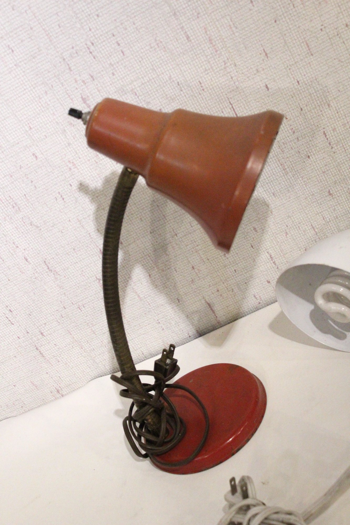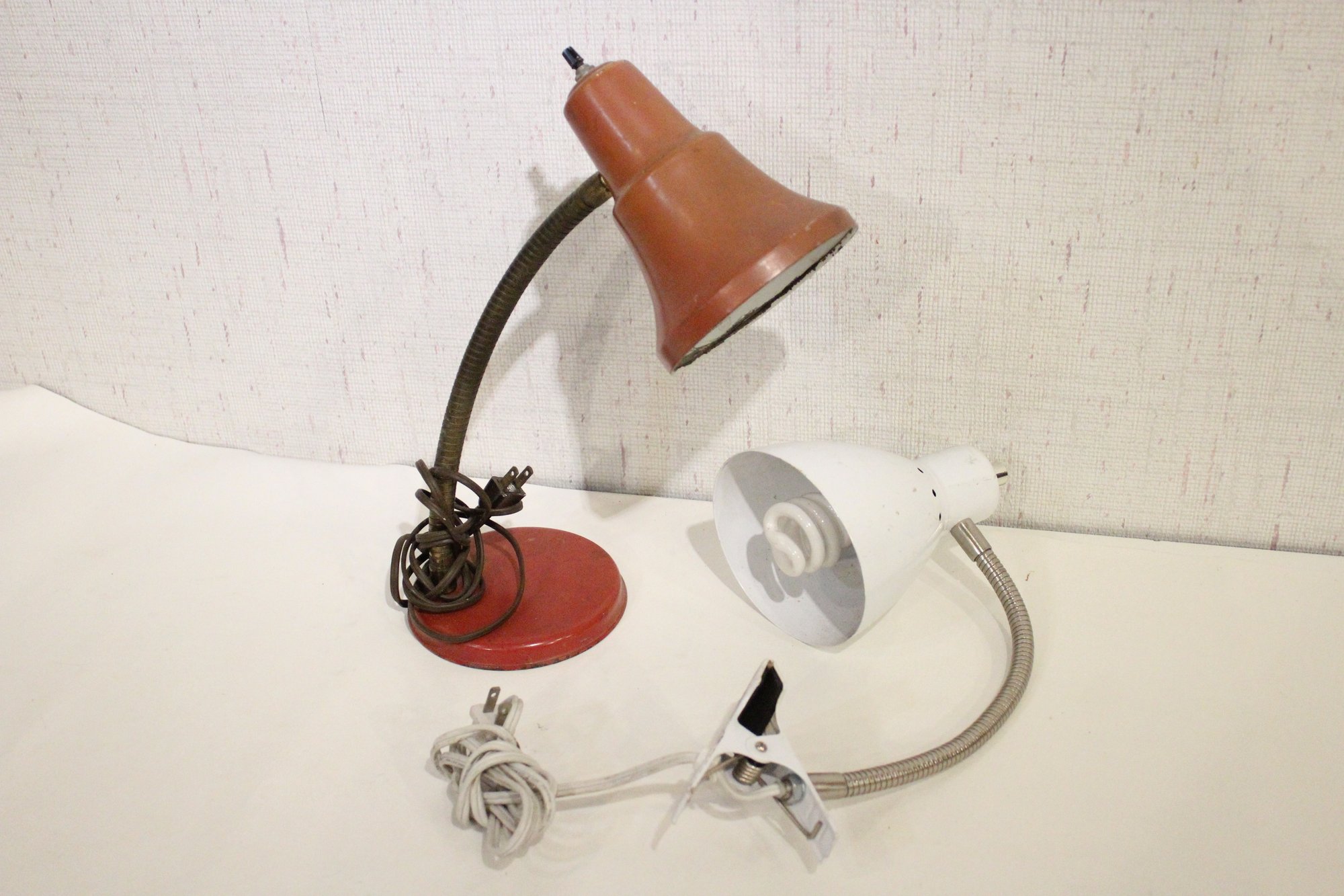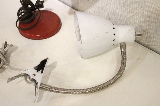 Two industrial desk lamps with flexible gooseneck arms 17" tall. These items can be shipped.