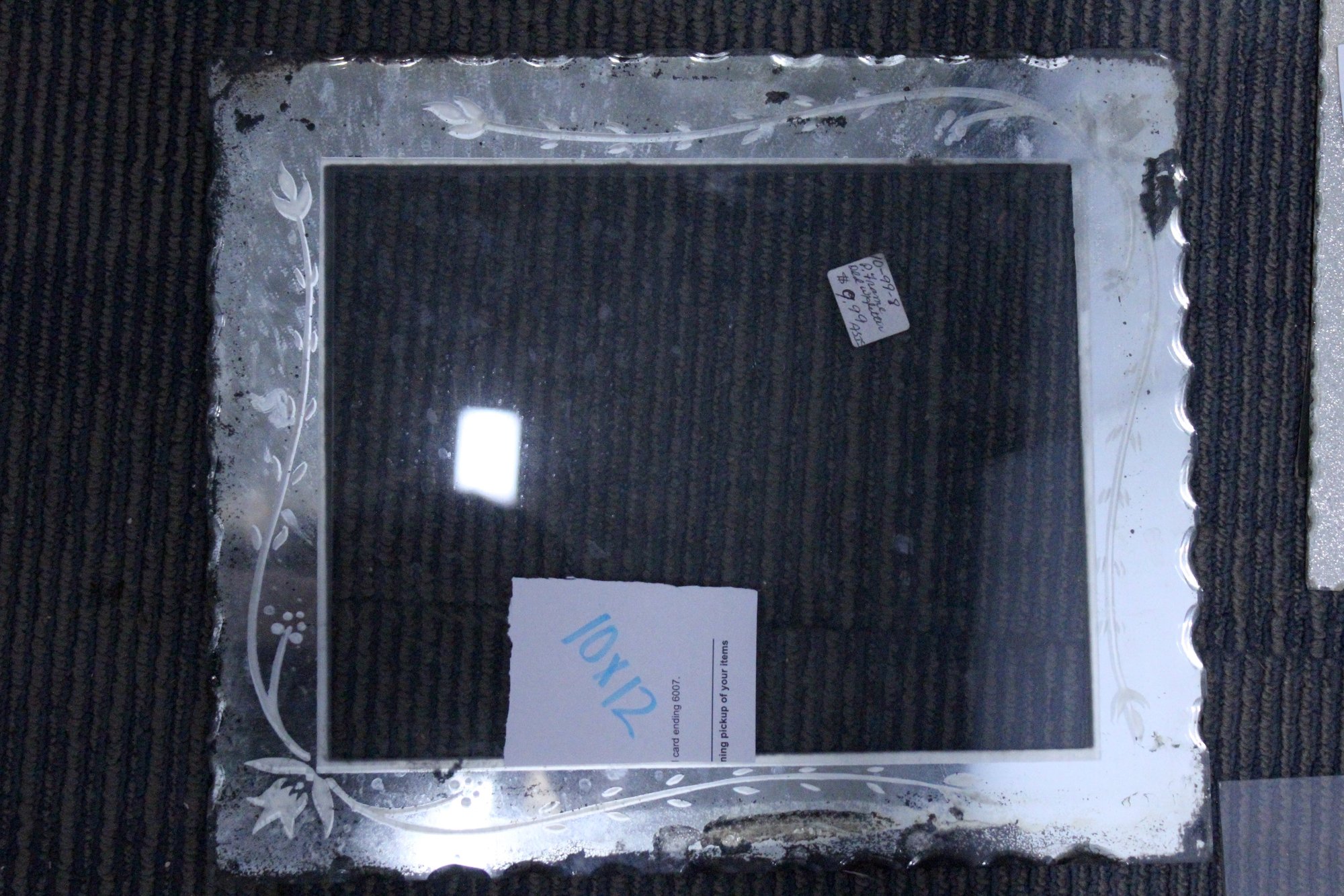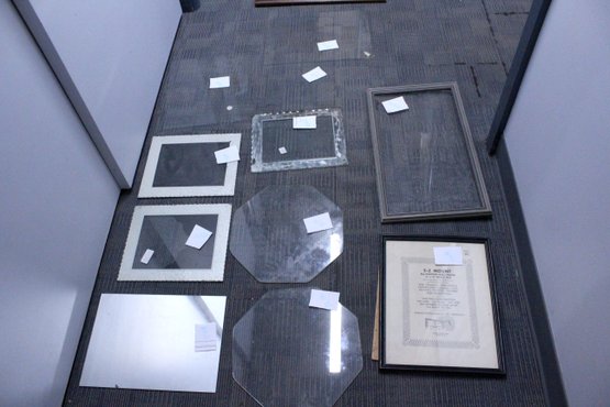 various sized glass pieces for frame, and some highly worn frames, sizes shown in images.