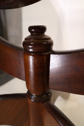 Notes: Minor damage to the varnish around edge of the mirror oval and slight signs of wear around feet and mirror supports. The right support is loose, and there is a large crack where it connects to the base, it still supports the weight of the mirror but might require repair before daily use.