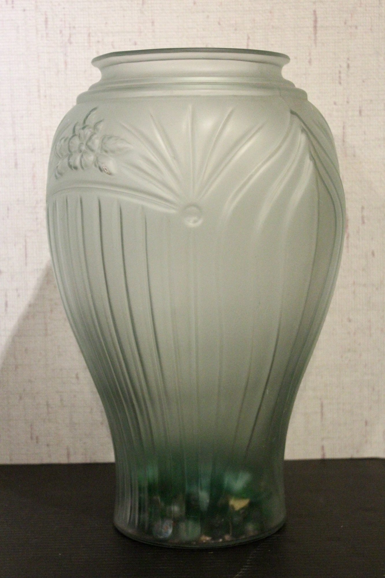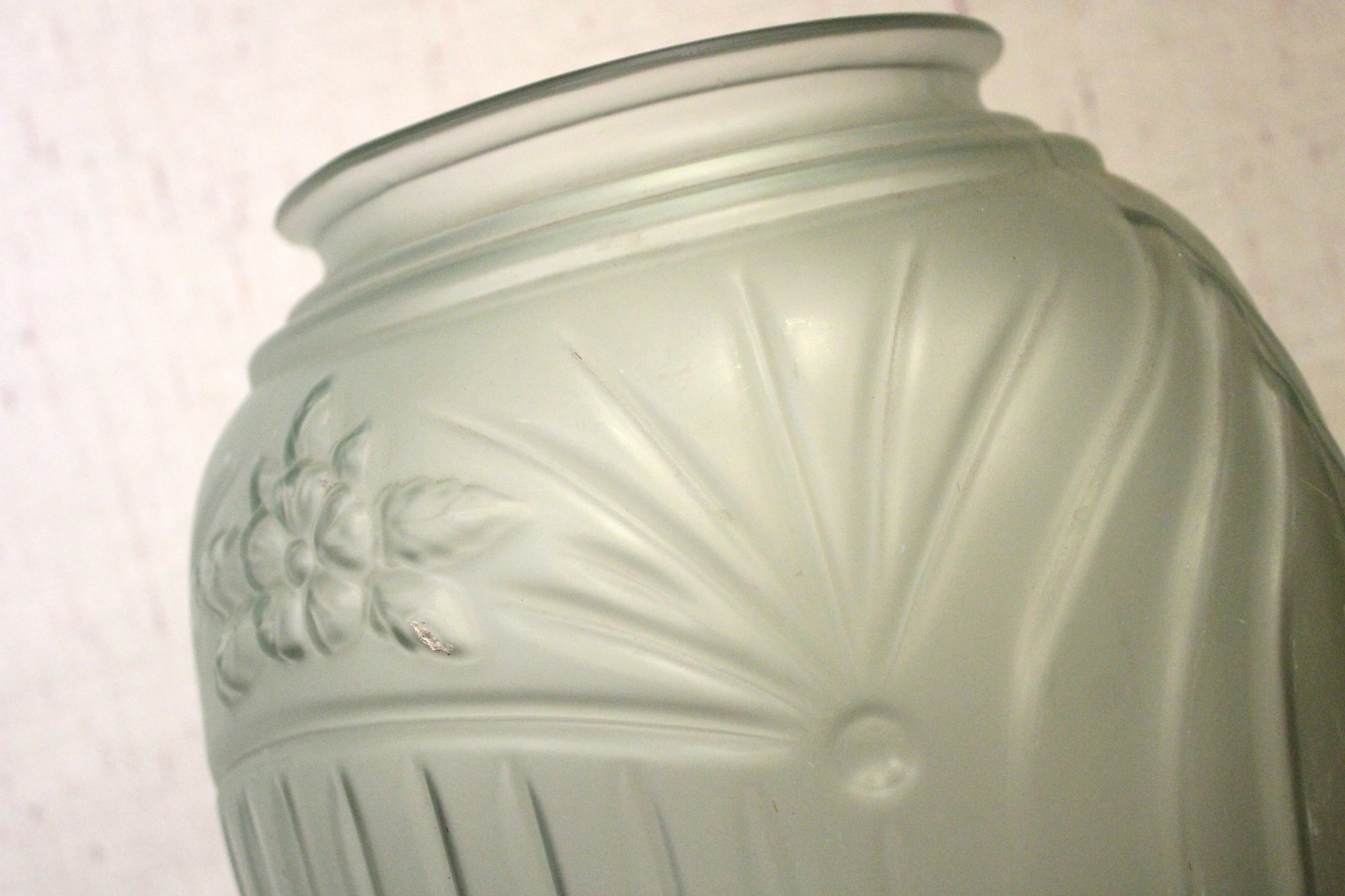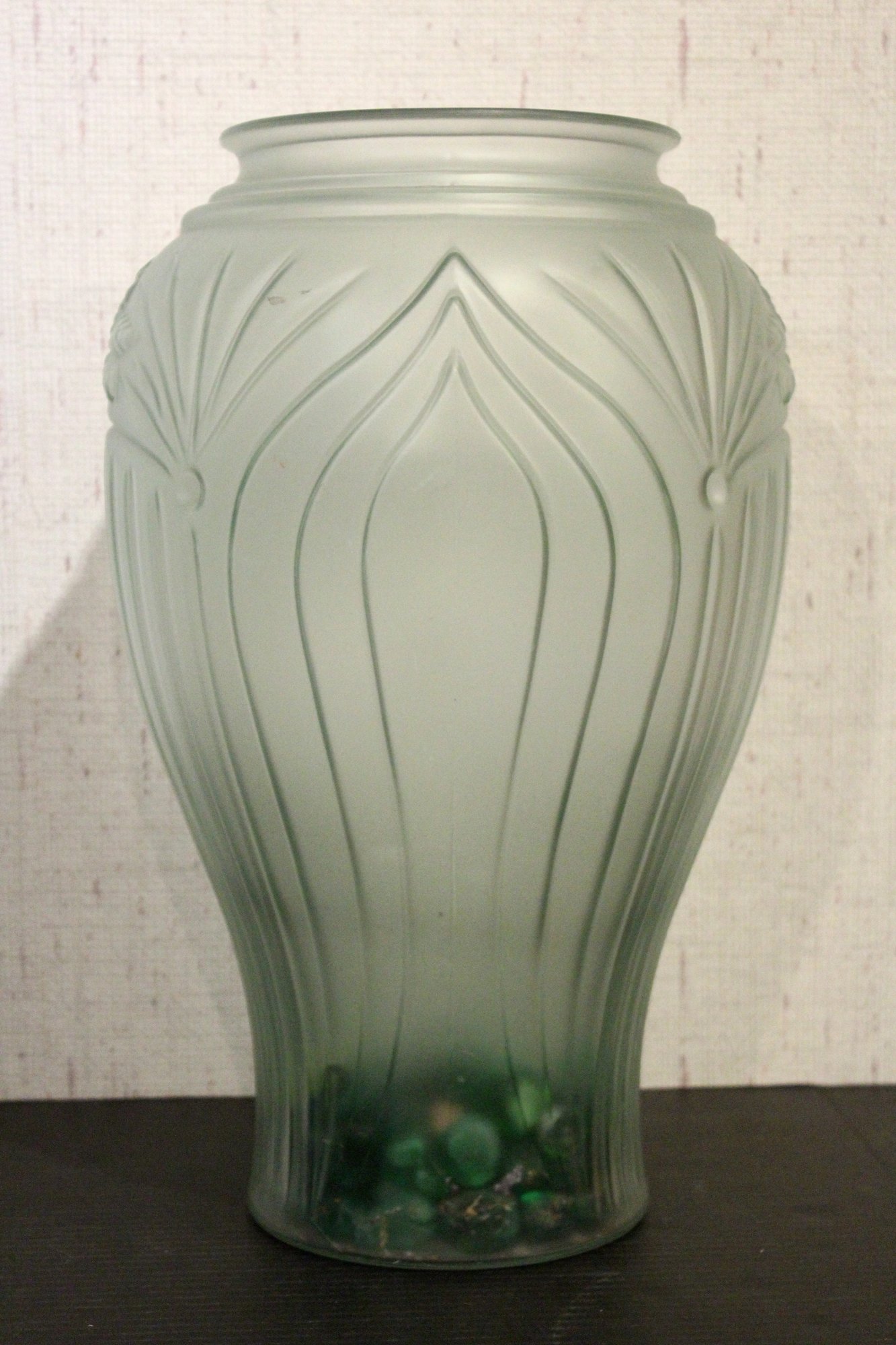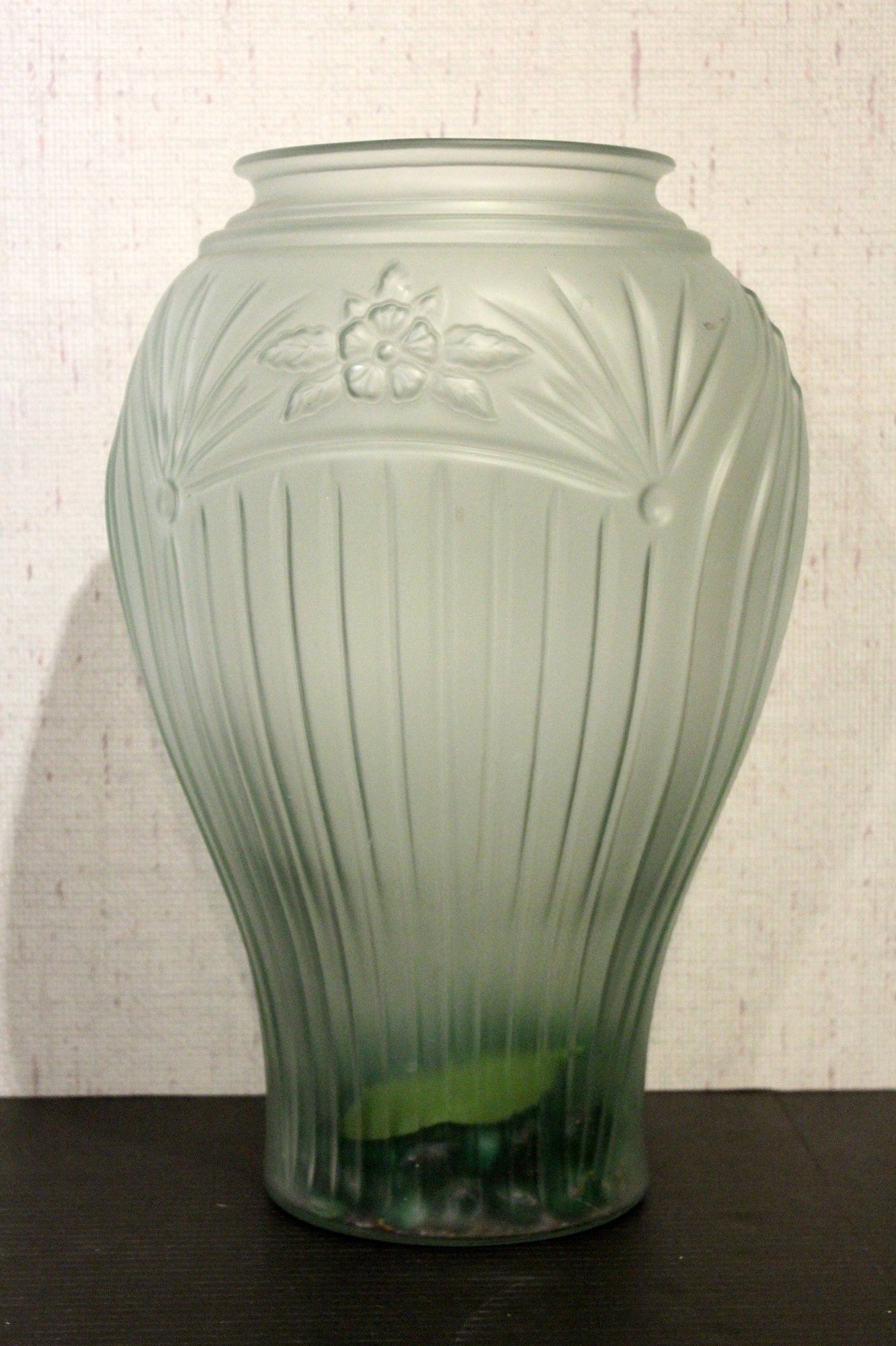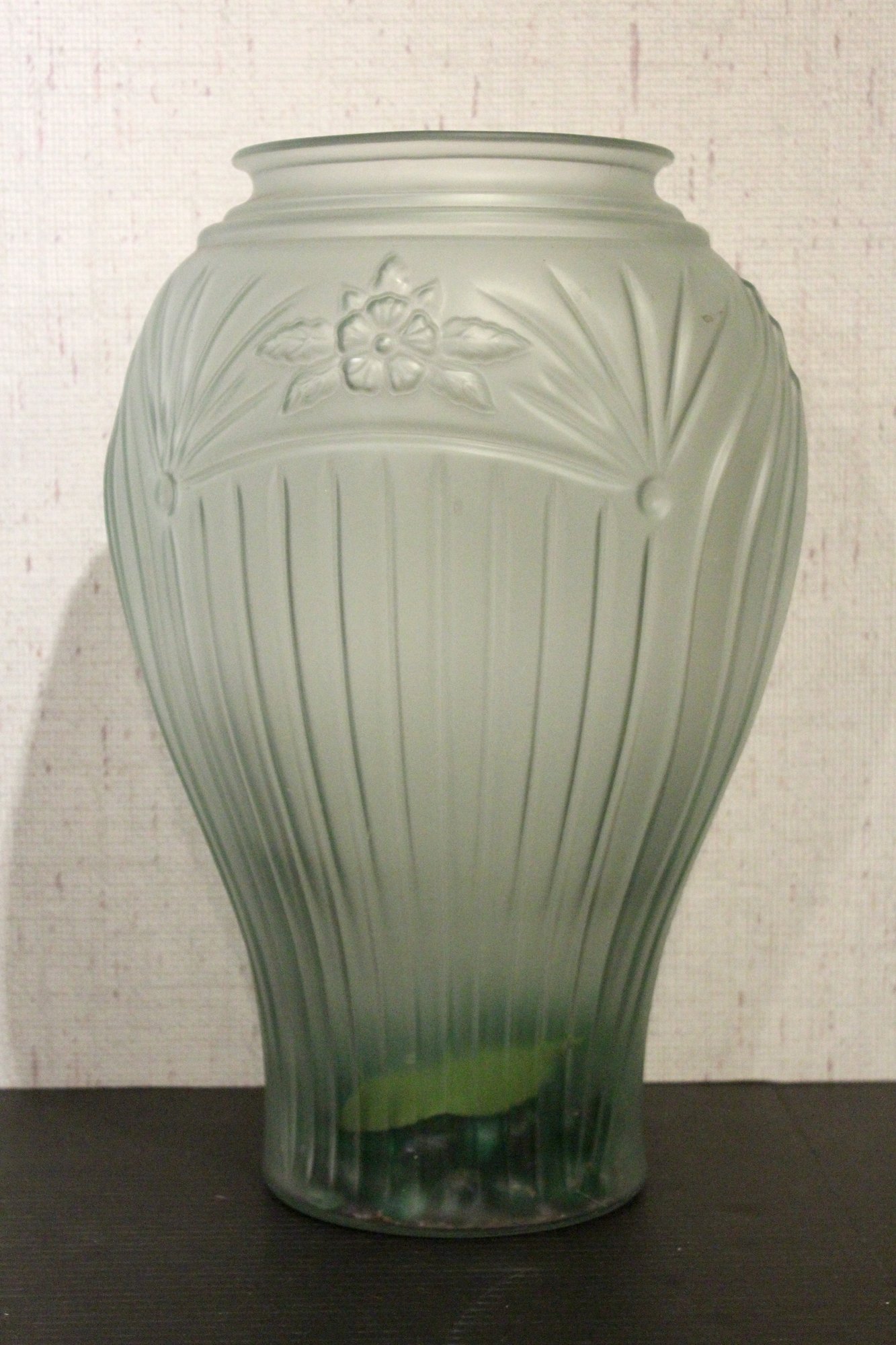 Vintage 1980s Art Nouveau Vase Matte Light Green 16" Anchor hocking Cambridge at 16" x 11". This item can be shipped.