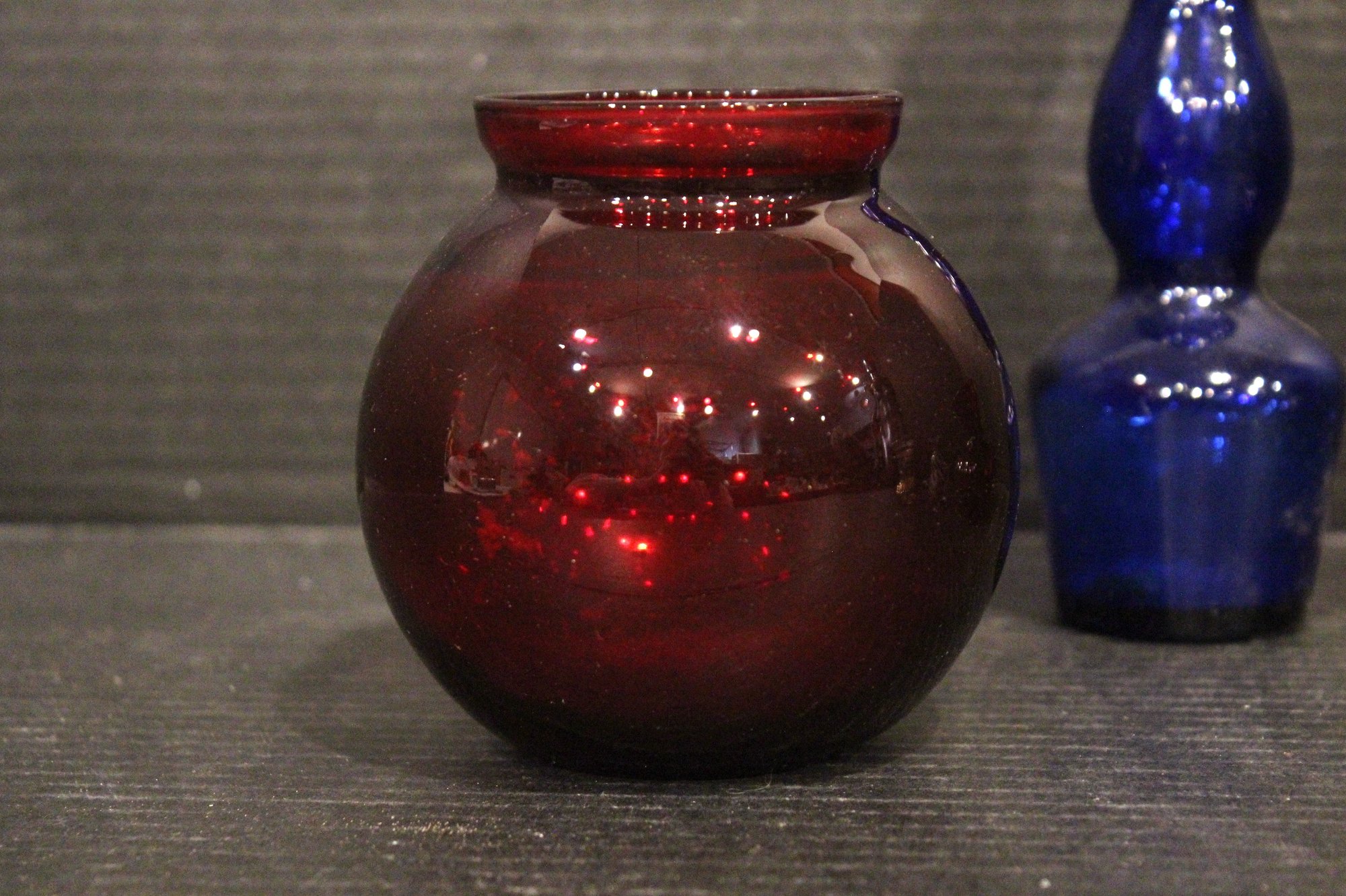 vintage Anchor Hocking Royal Ruby Red Ivy Ball vase 4"