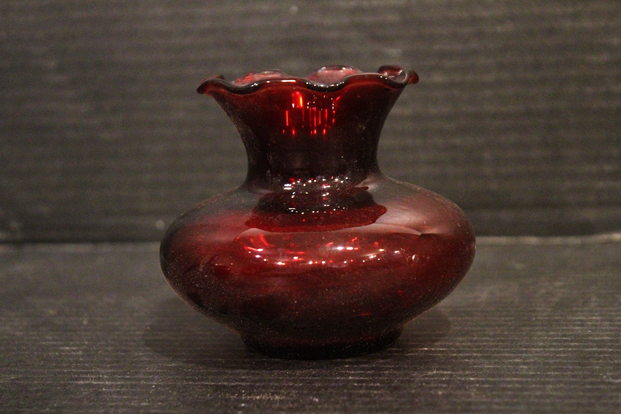 vintage Anchor Hocking Royal Ruby red glass ruffled-edge bud vase 4",
