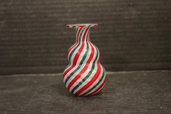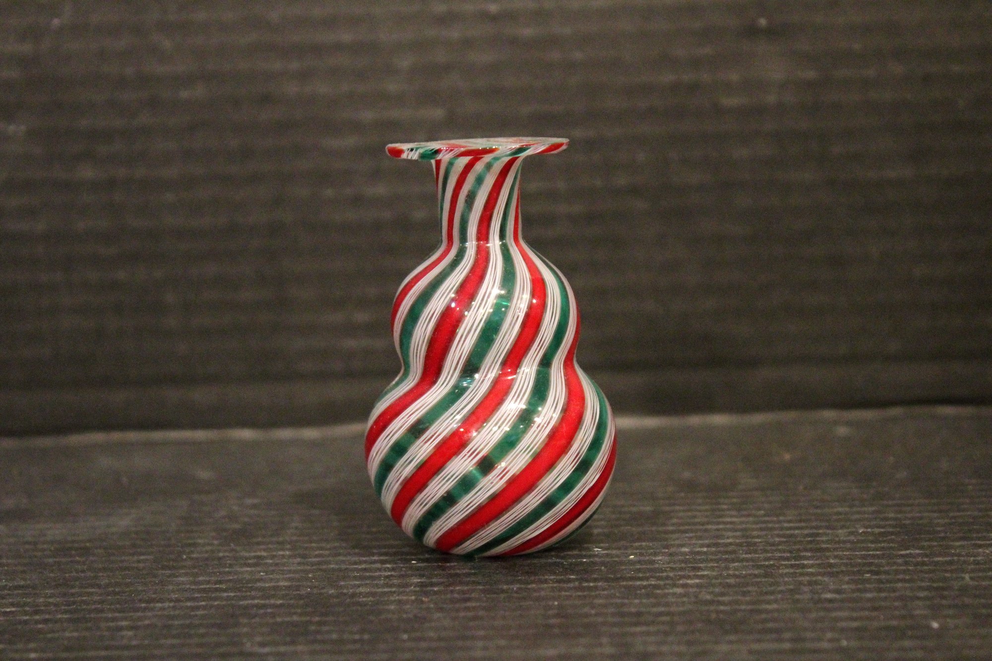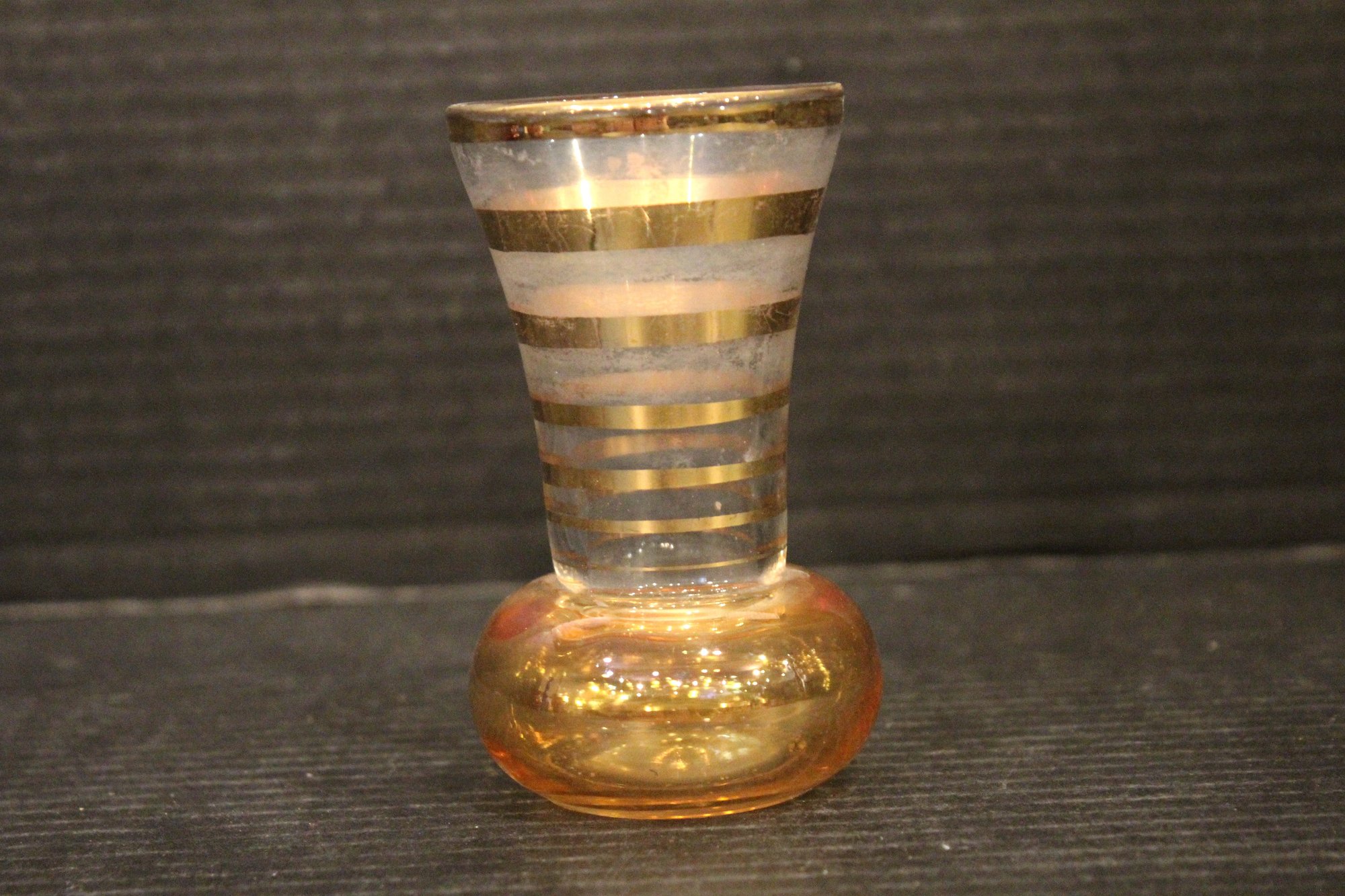 Mid Century Bud Vase Clear Glass with Gold Stripes, 4"