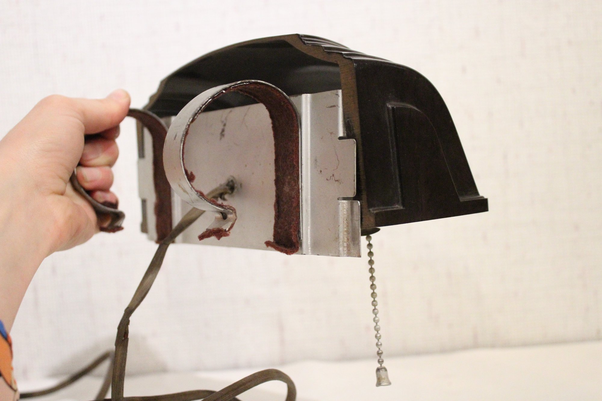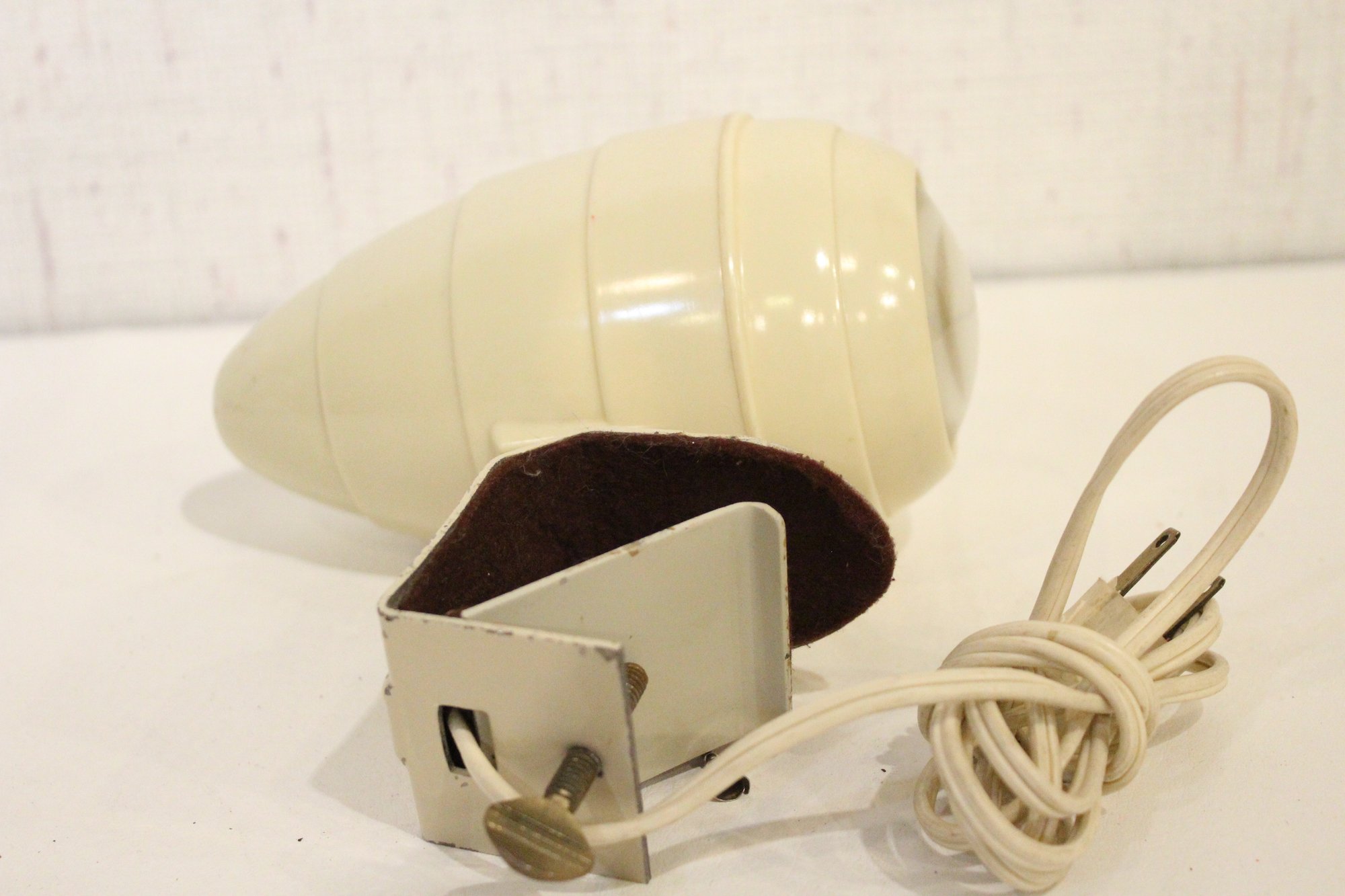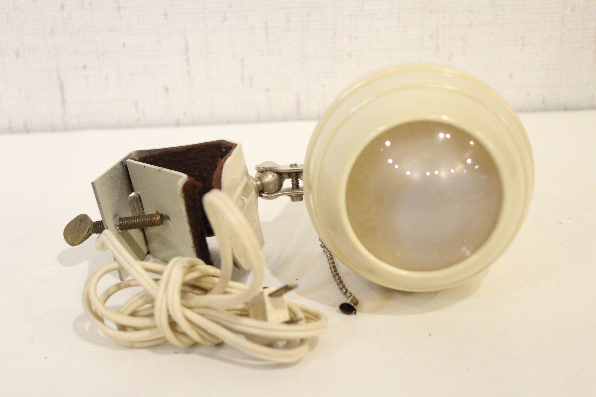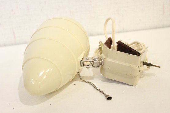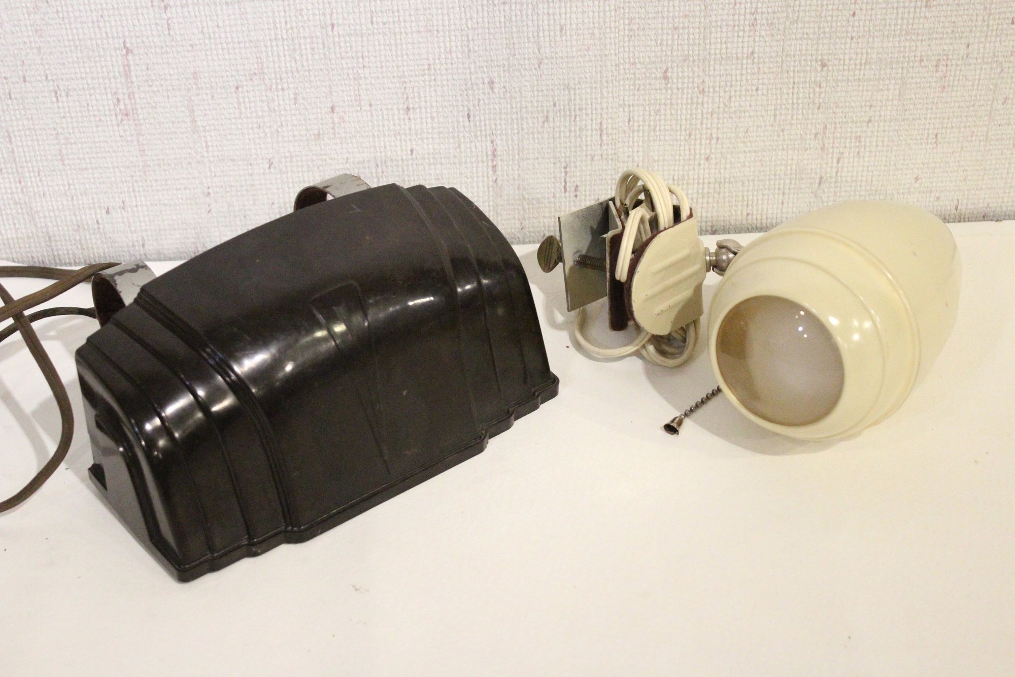 2 vintage Art Deco bakelite headboard lamps, designed to clip onto a bed headboard for reading 9" x 7", and the white one is 8" x 7". These items can be shipped.