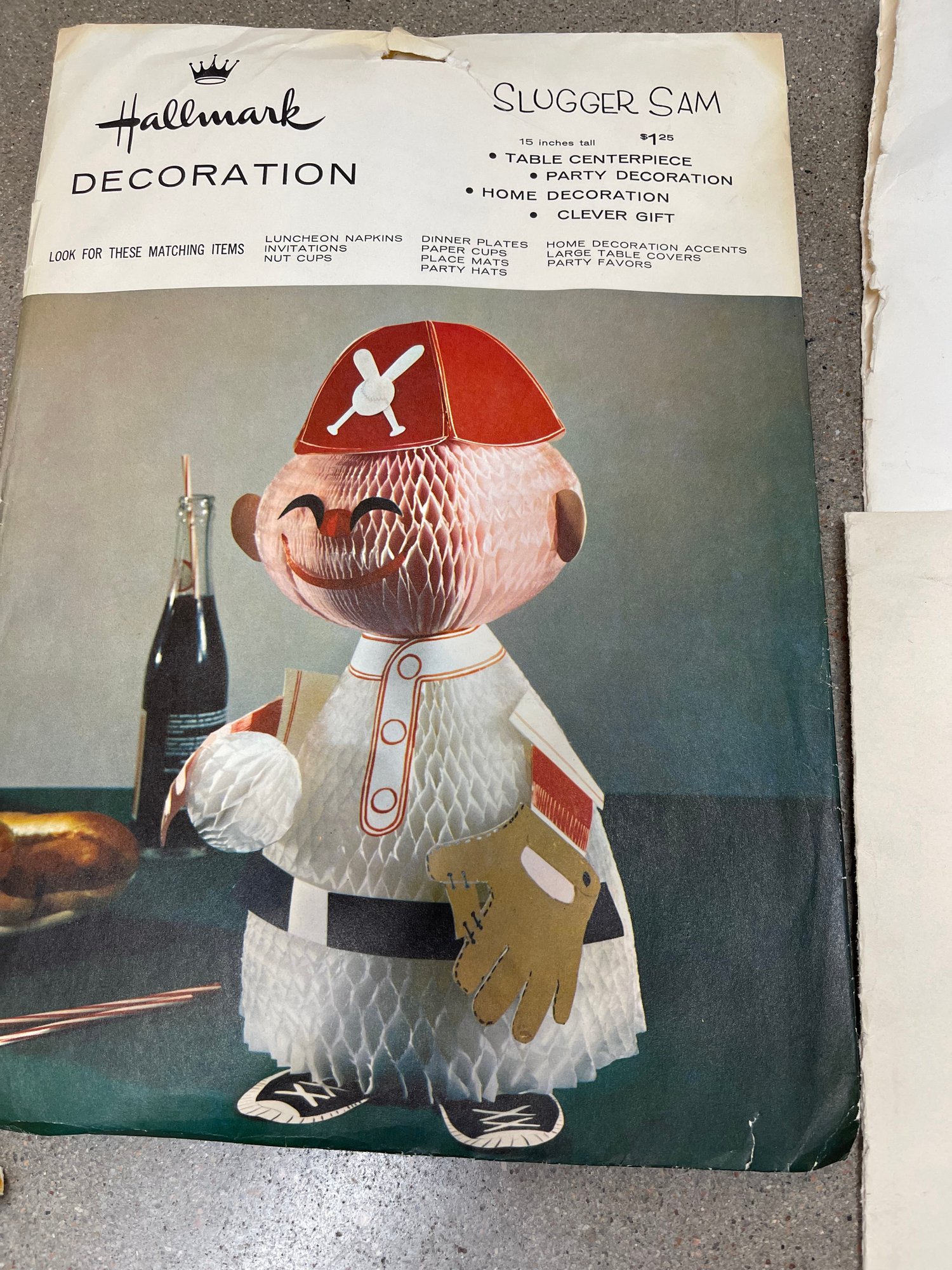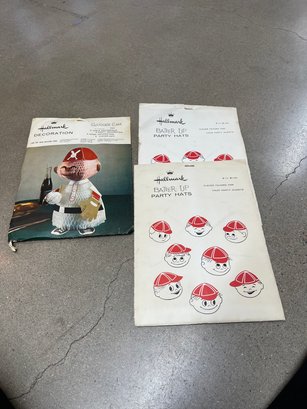 Paper centerpiece and 16 party hats from Hallmark, all in original packaging
