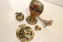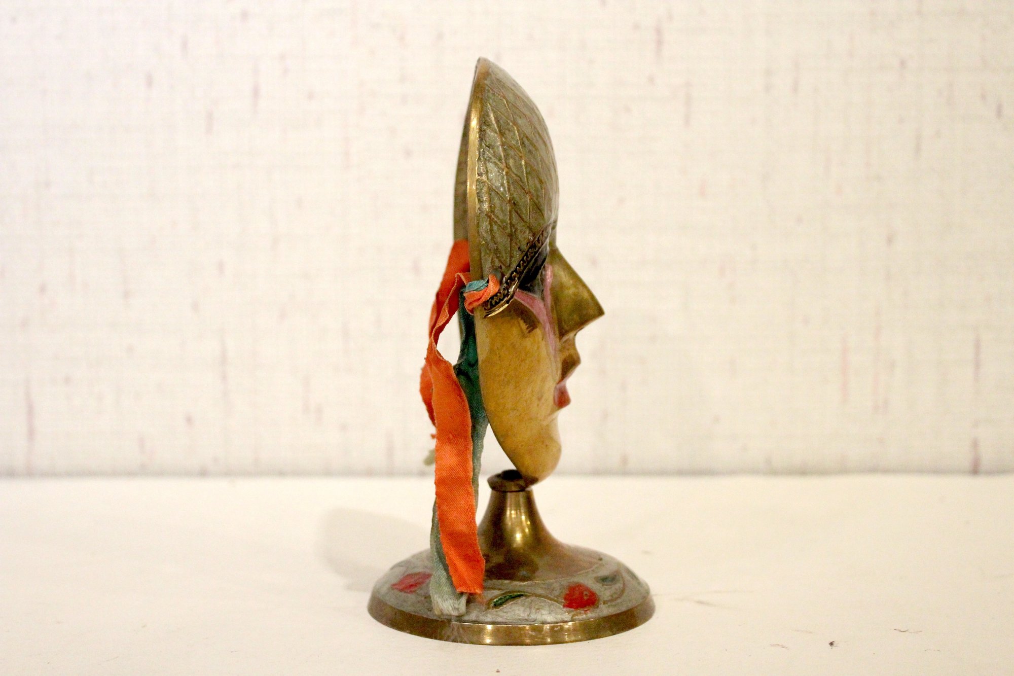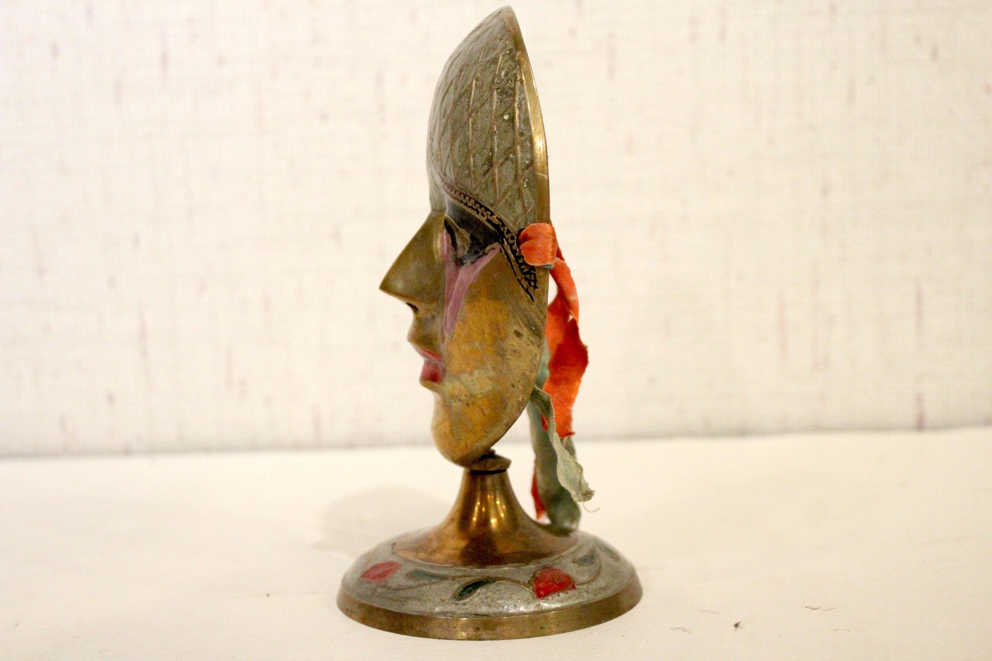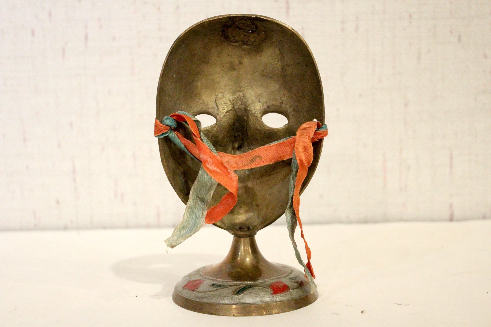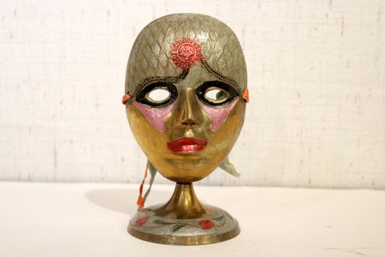 Vintage Mask Painted Theatre Carnival Colorful Decor Pedestal, 7" x 4"