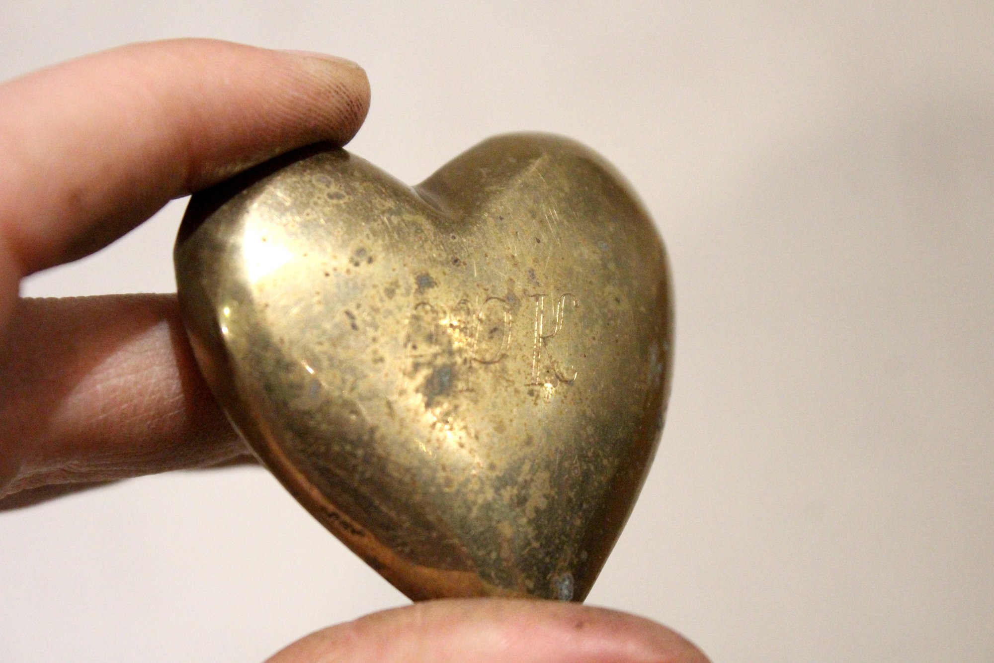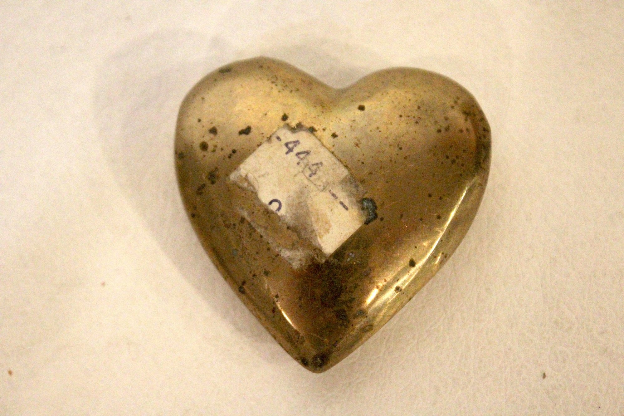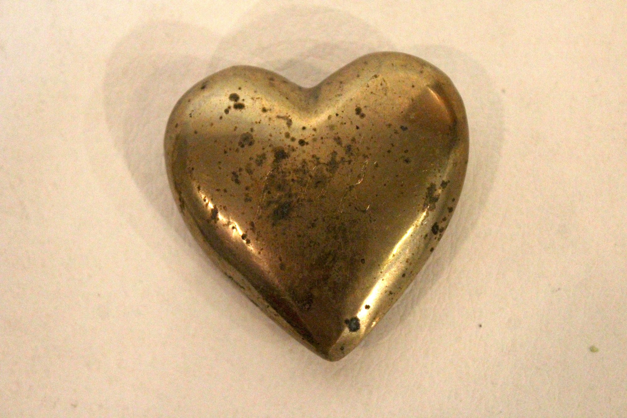 vintage brass heart paperweight, 1.5" x 1.5"