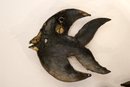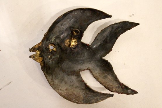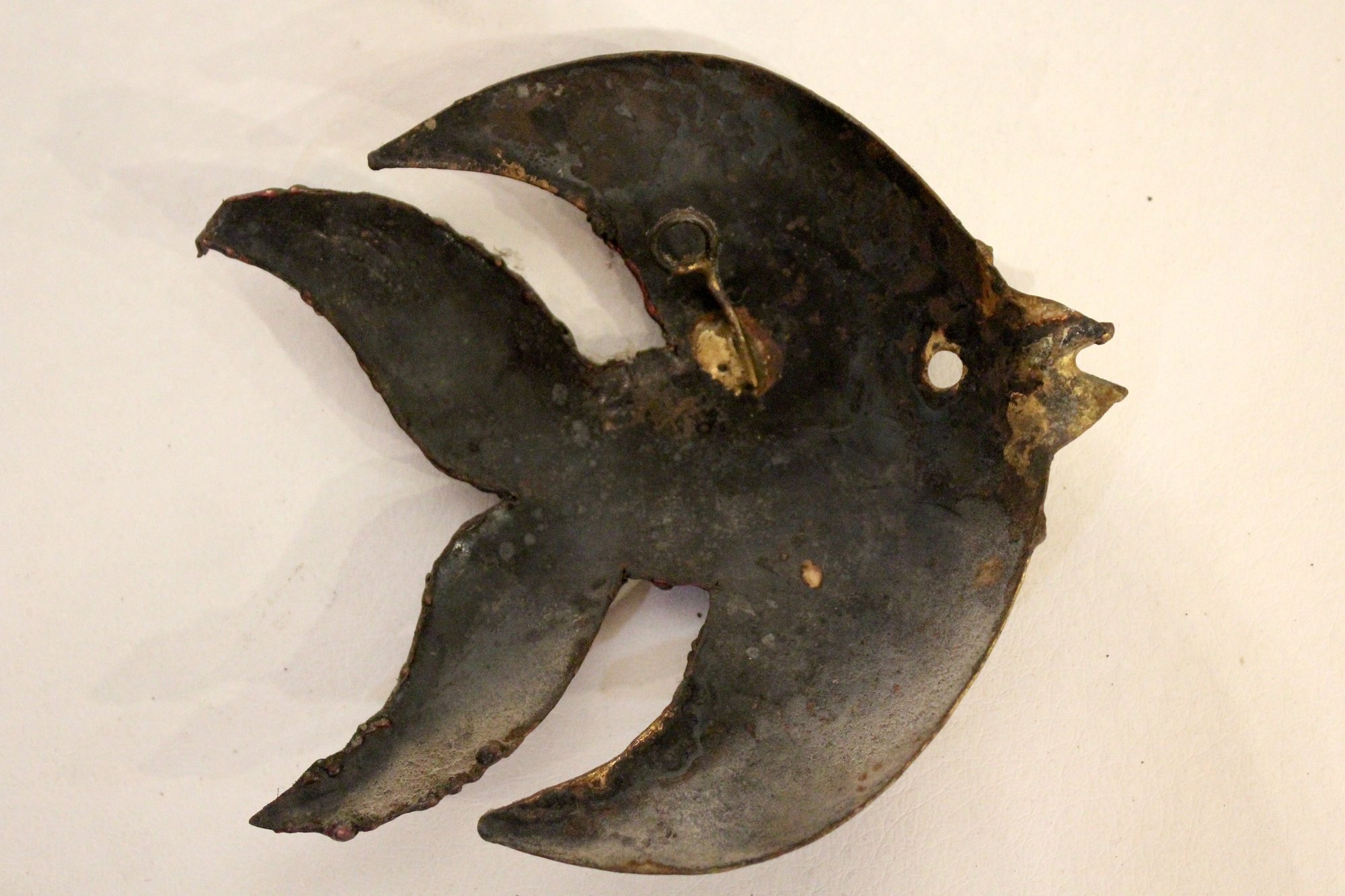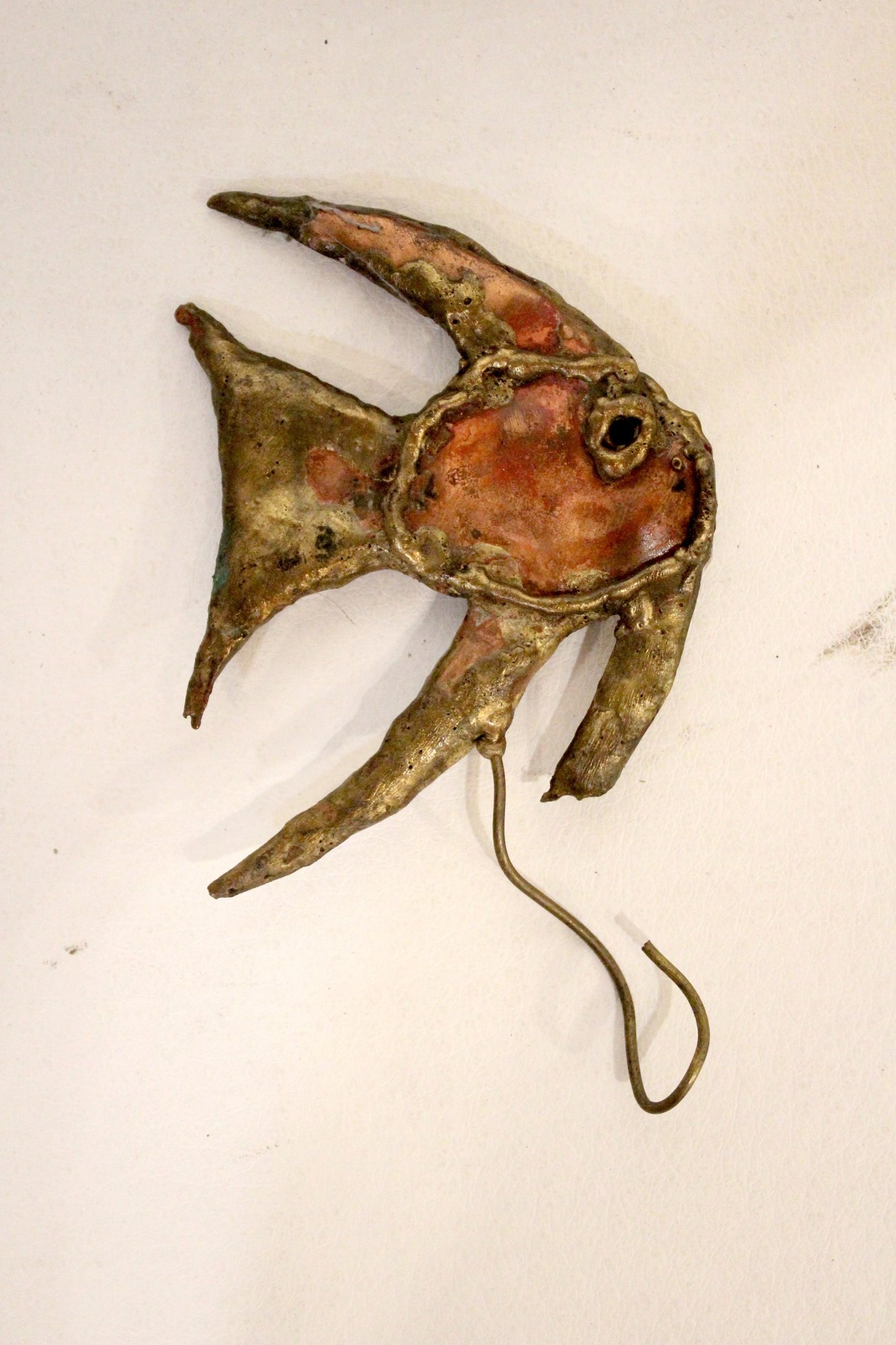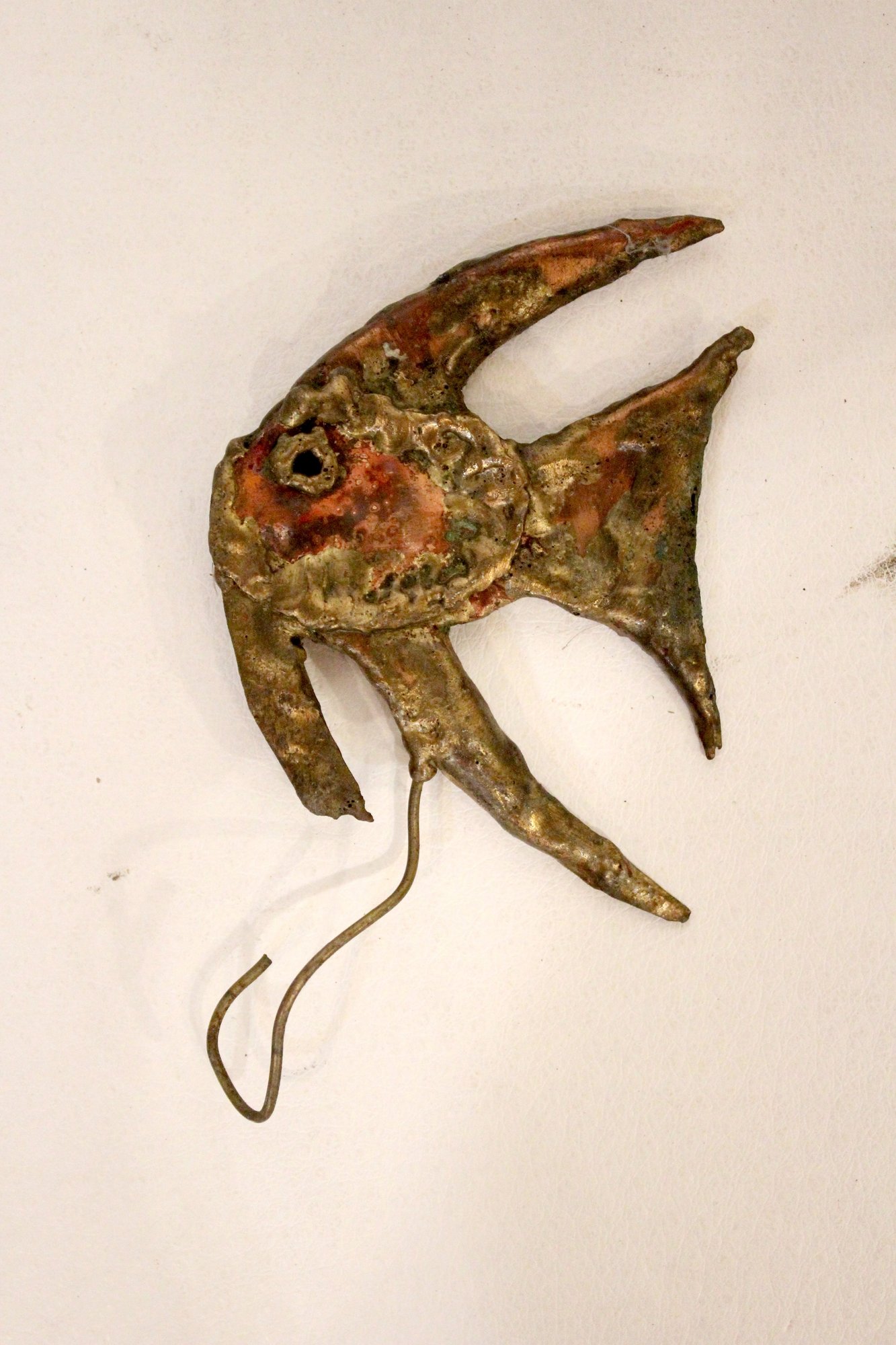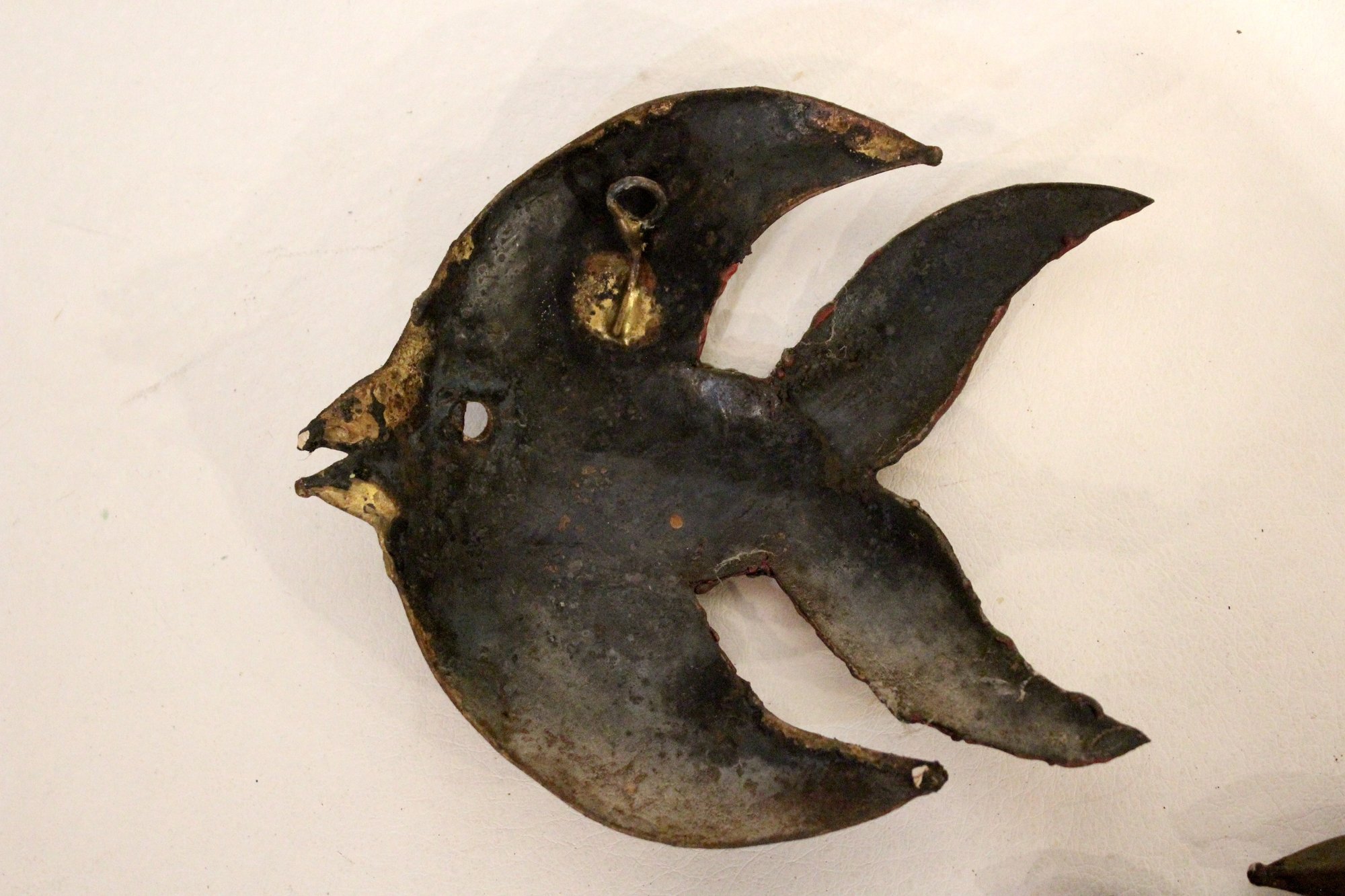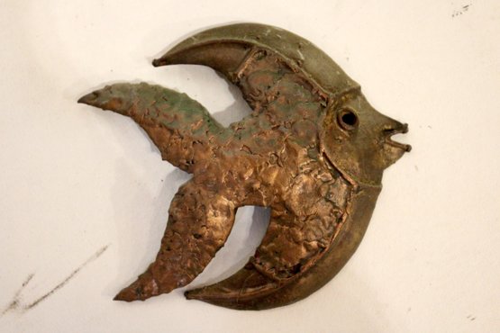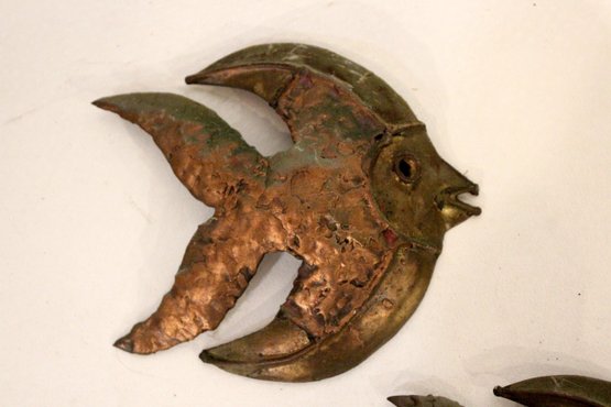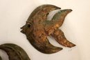 A set of vintage brutalist metal angel fish wall sculptures. 5" x 4"