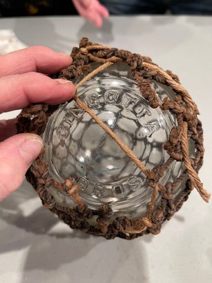 glass buoy with original netting, Cincotta Brothers brand. 6 inches in diameter