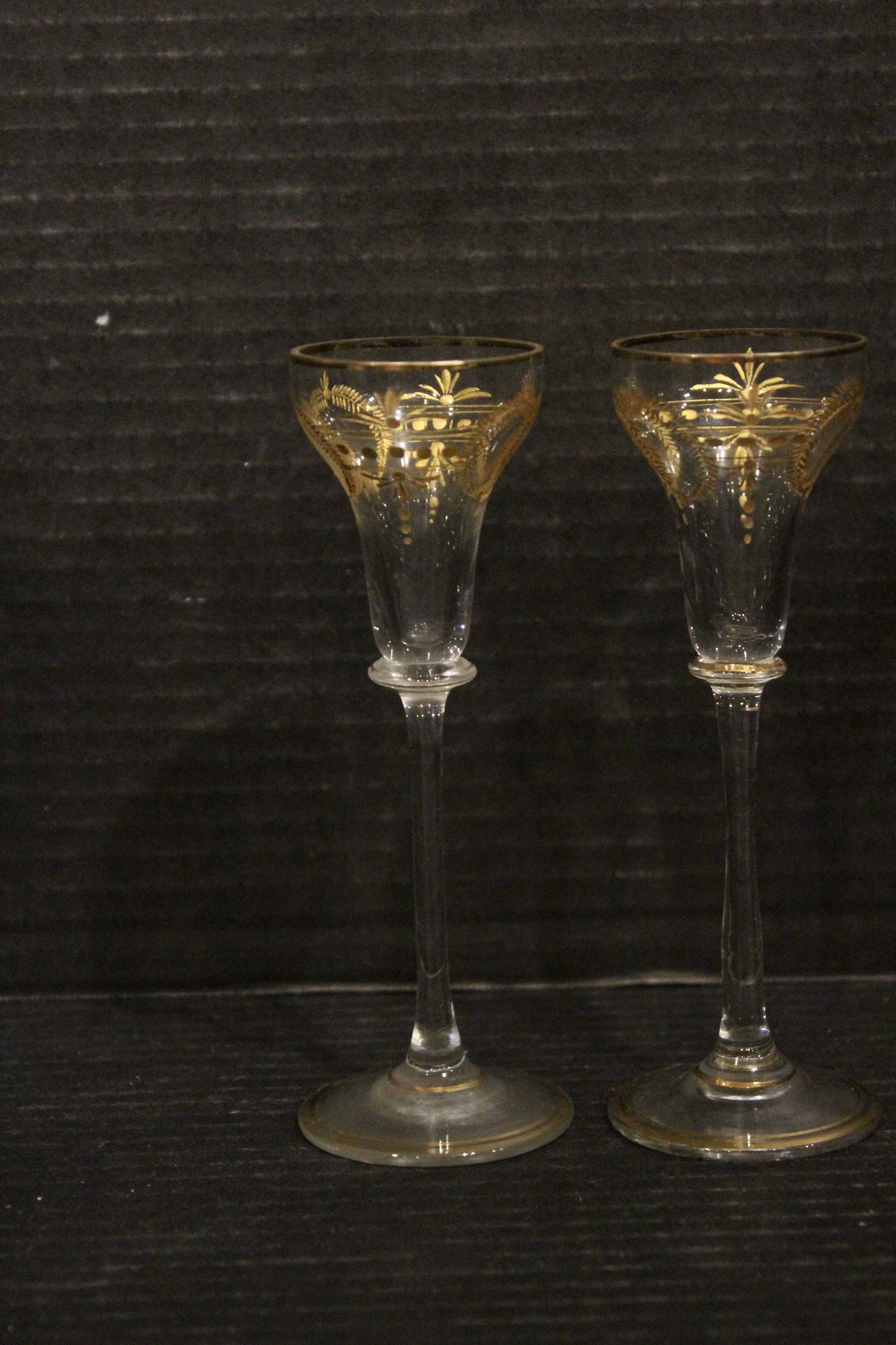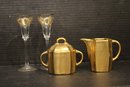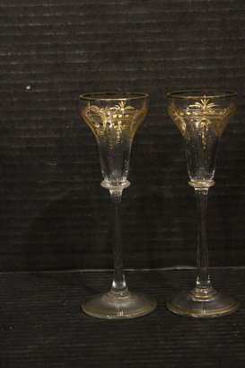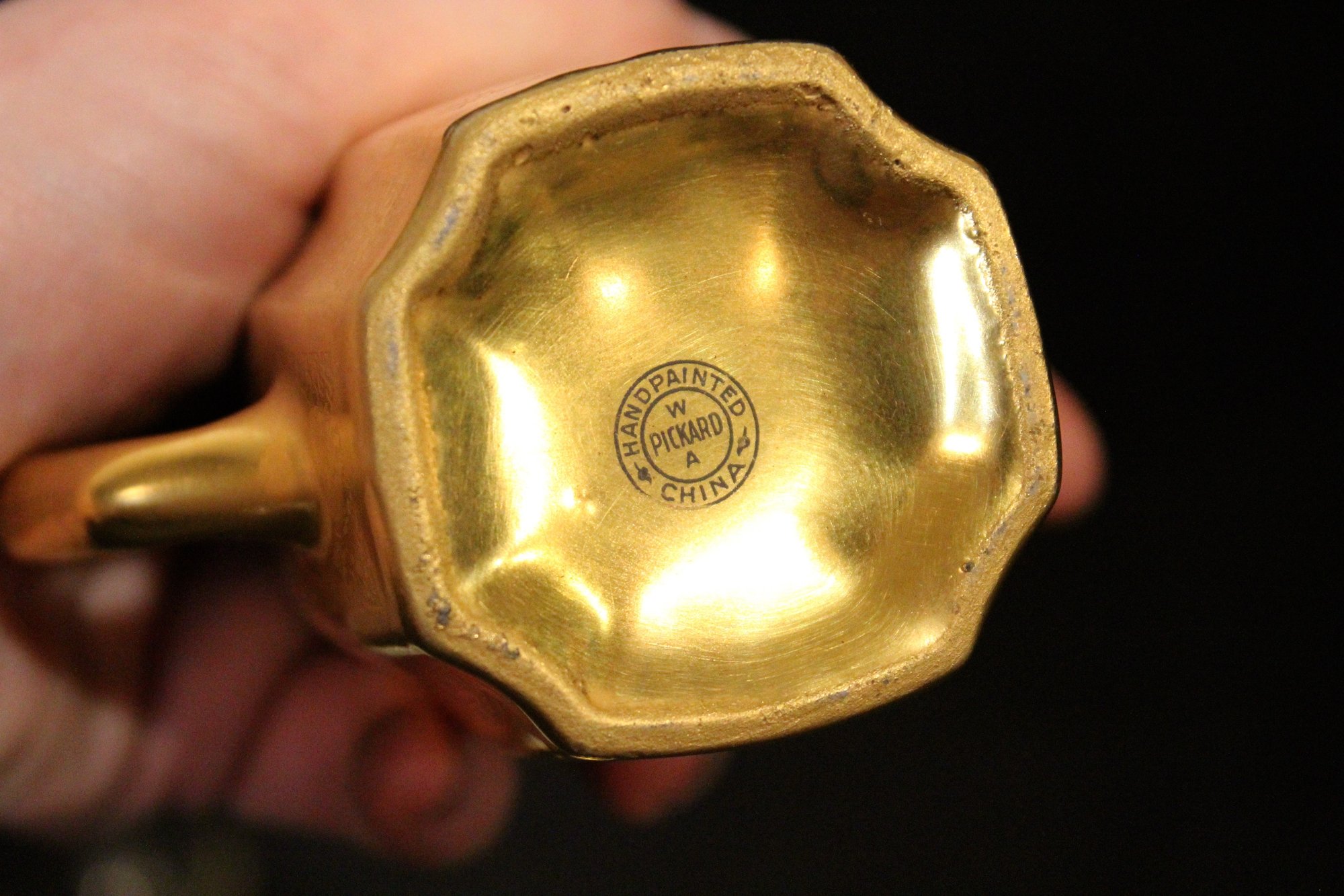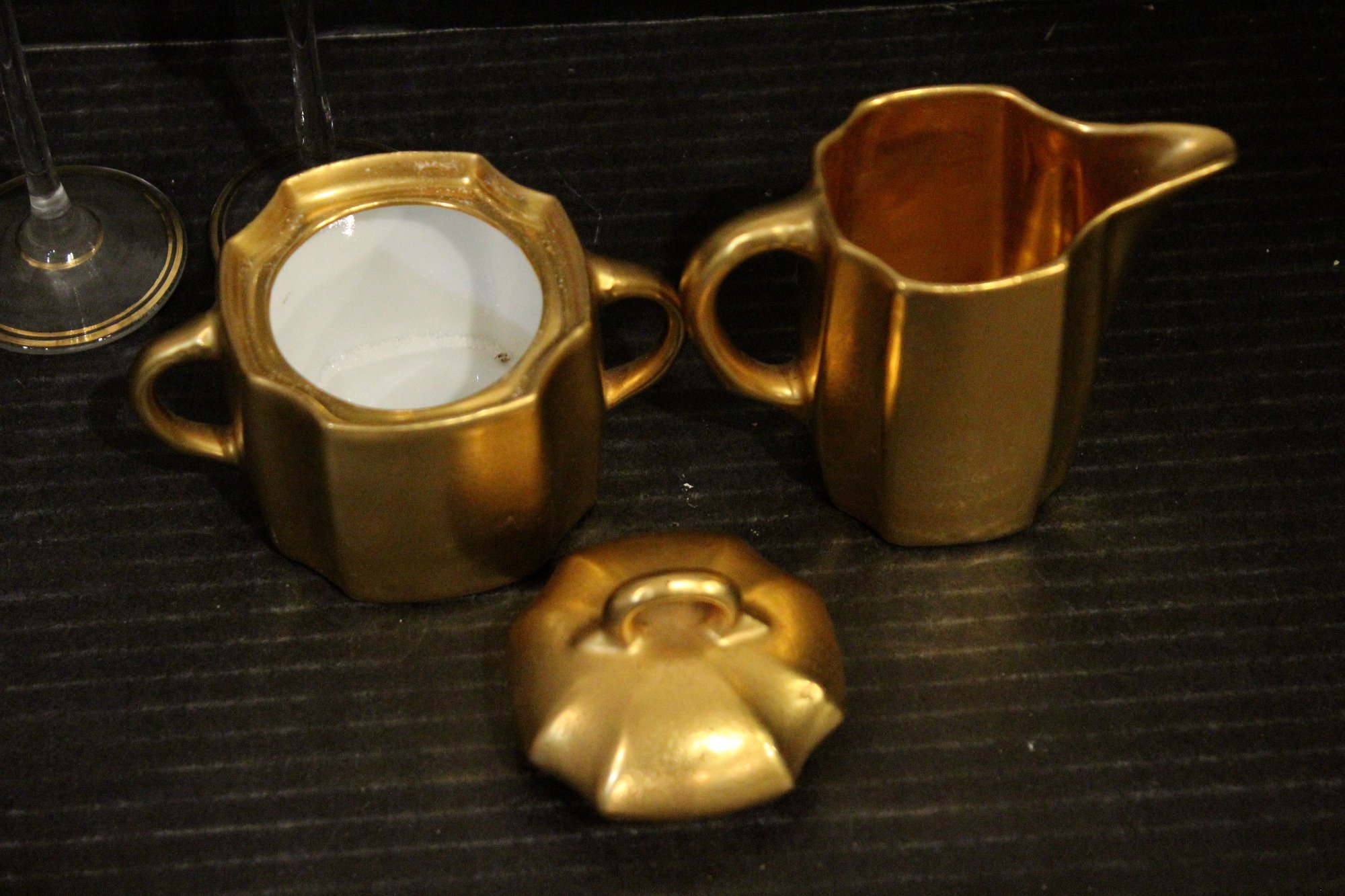 and a pair of vintage cups or candlestick holders with gold trim 6" tall