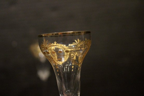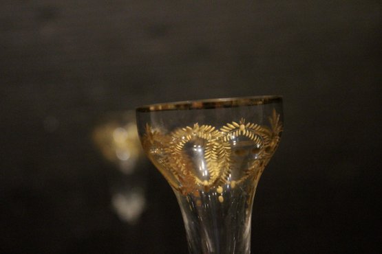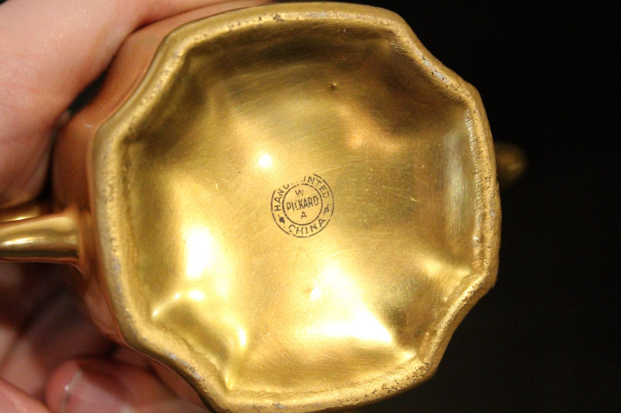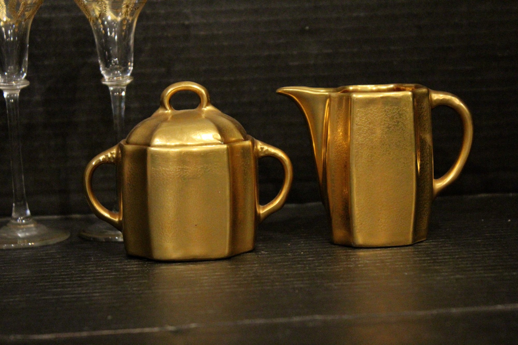and a pair of vintage cups or candlestick holders with gold trim 6" tall