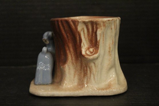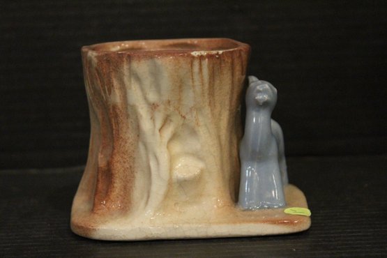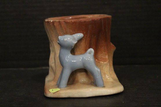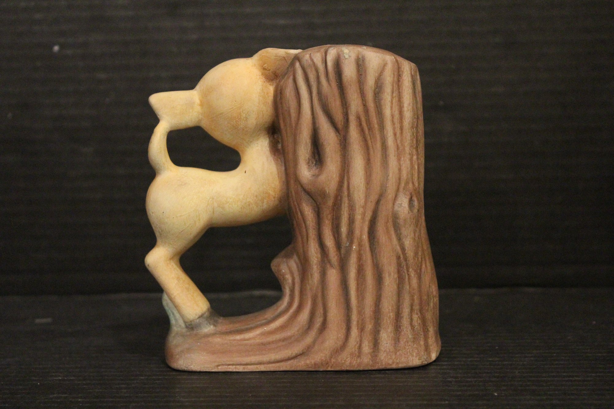 Vintage Deer Tree Stump Planter, 4" x 4", ear has broken off.