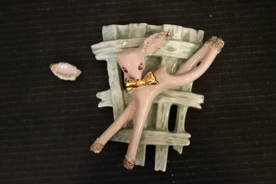 Vintage wall pocket pink gold spaghetti deer Japan 1950's, 6” x 5.5”, ear has broken off but is present.