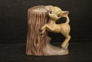 vintage ceramic Bambi or fawn figurine planter/vase, 5" x 5"