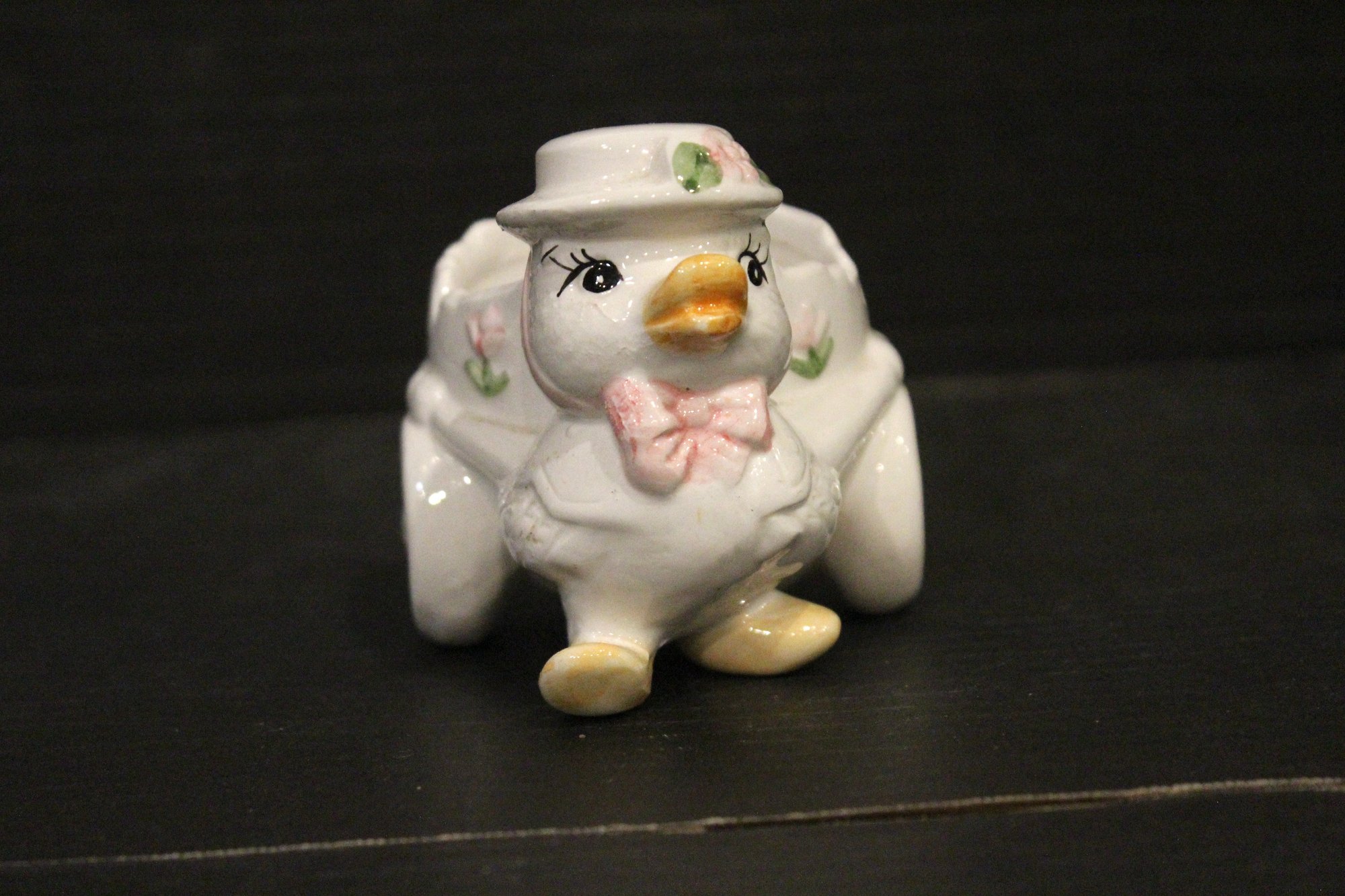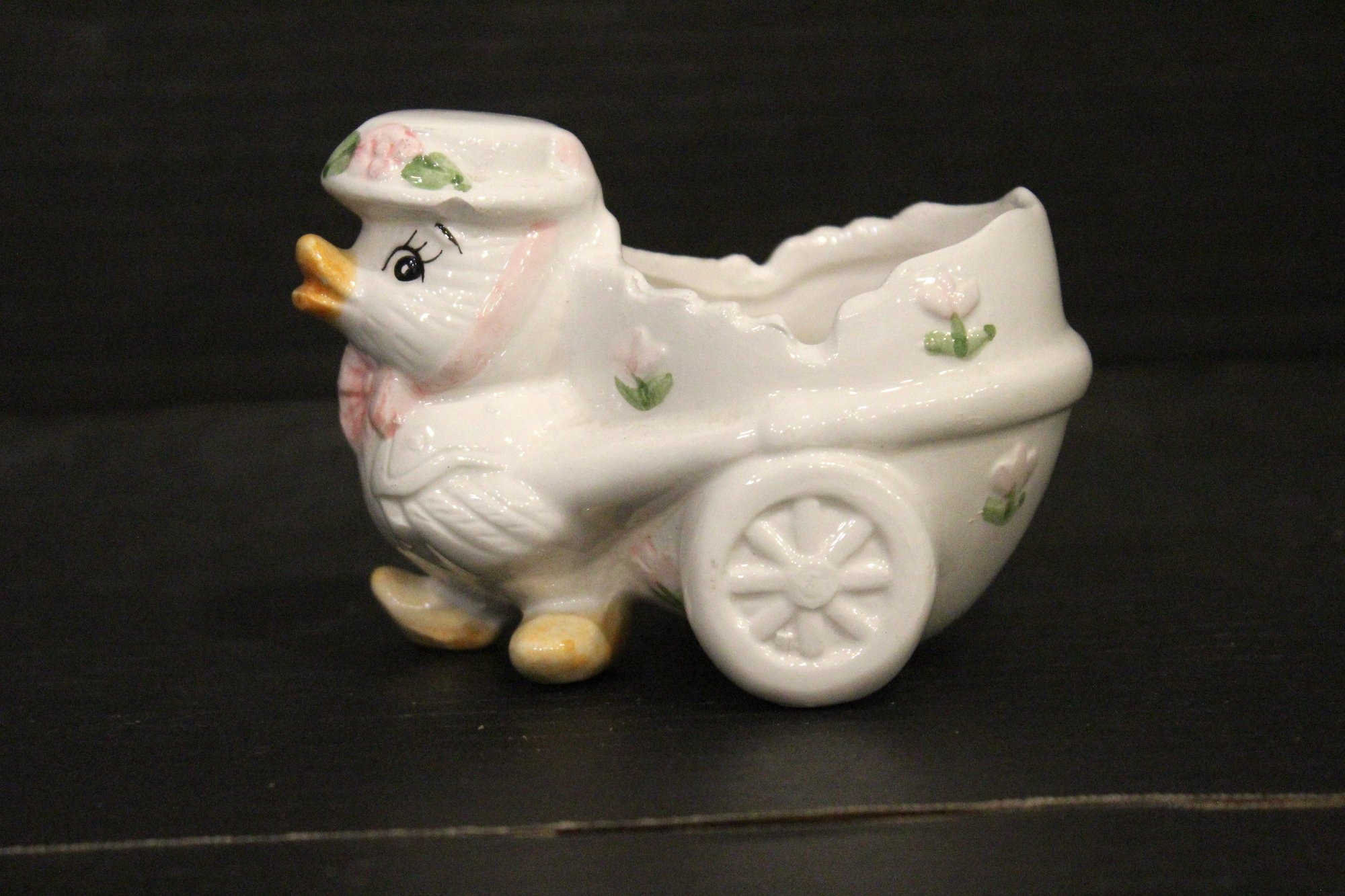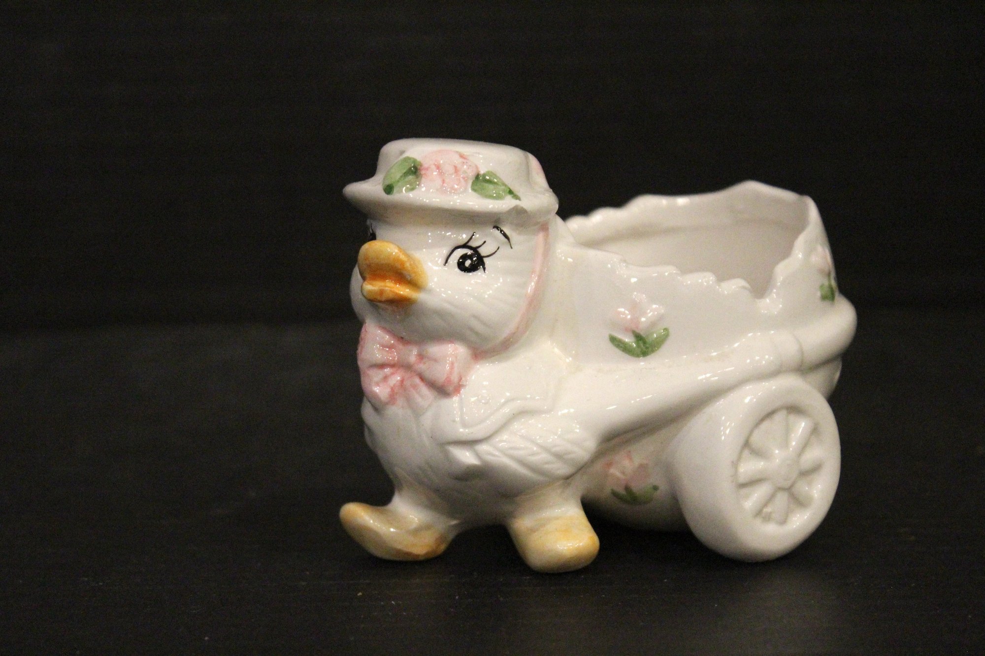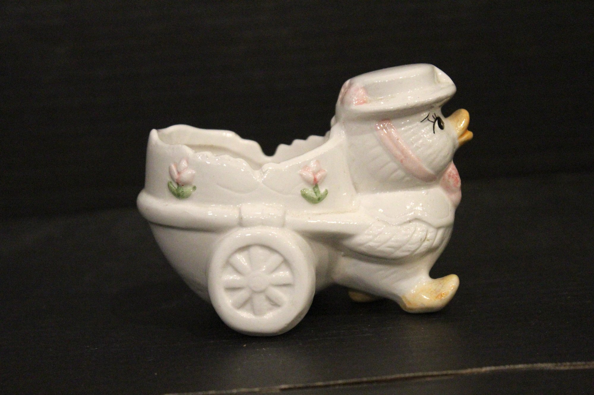 Vintage Duckling with Cart Candy Dish or Planter 4" x 3"
