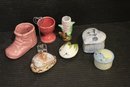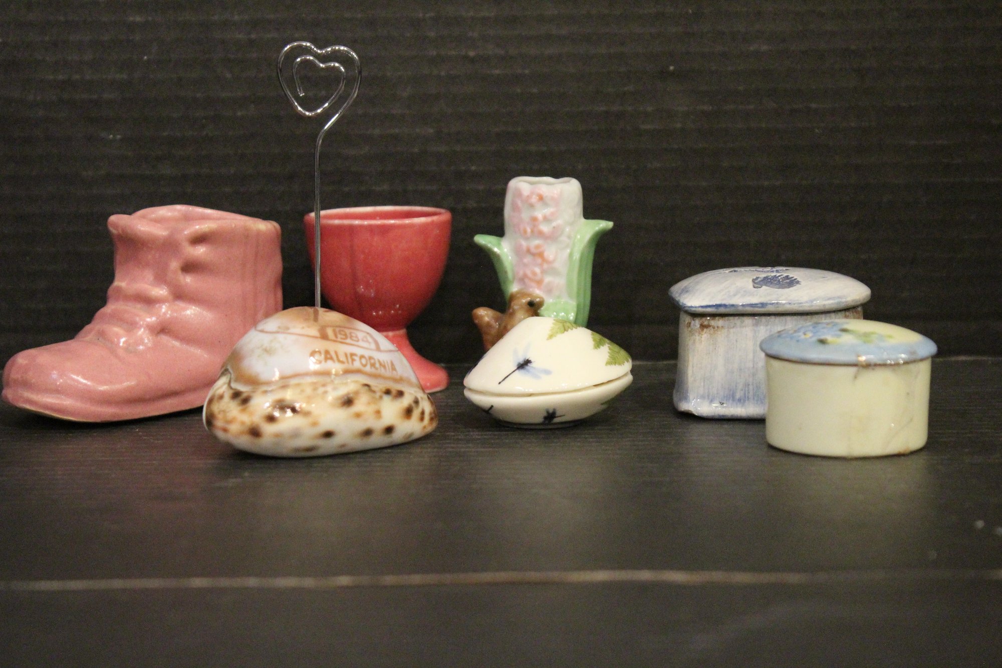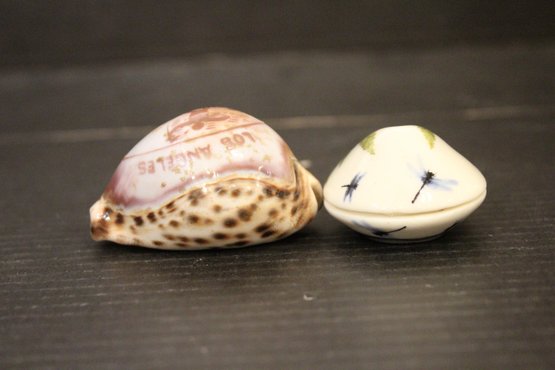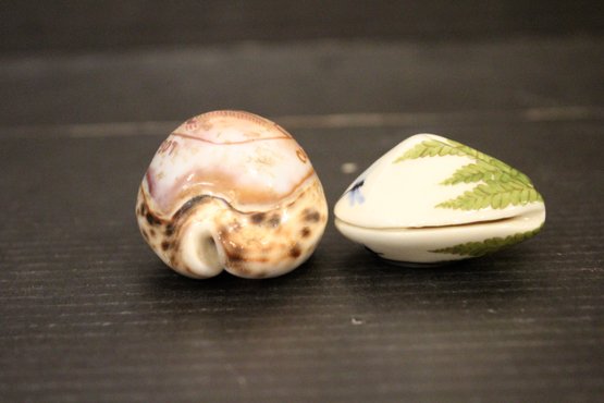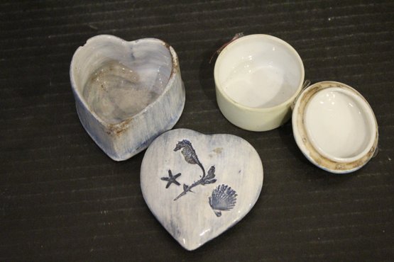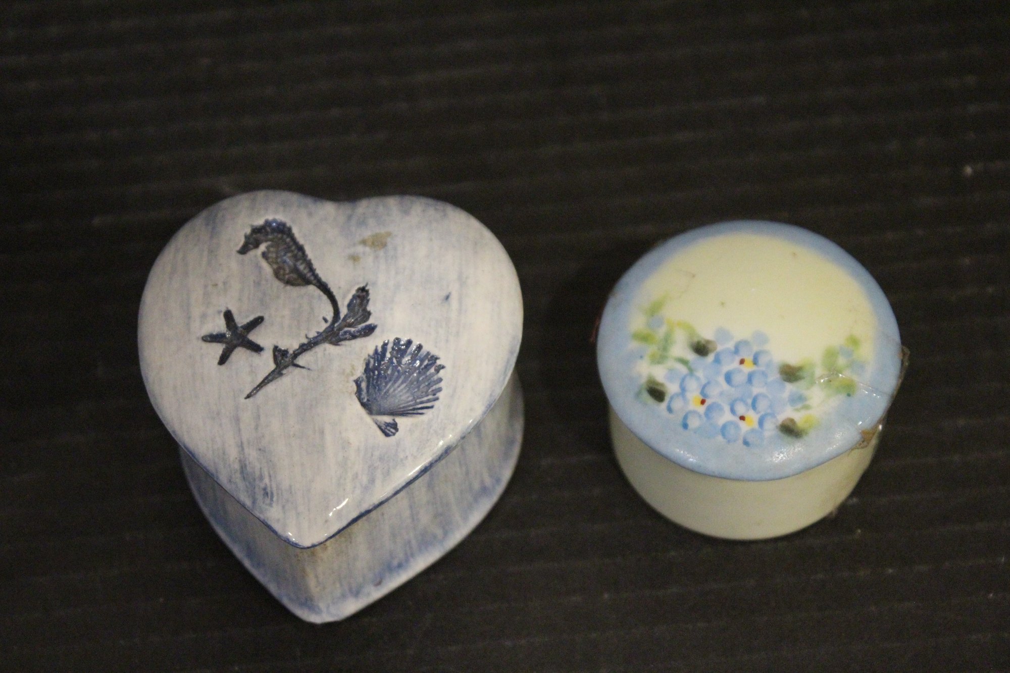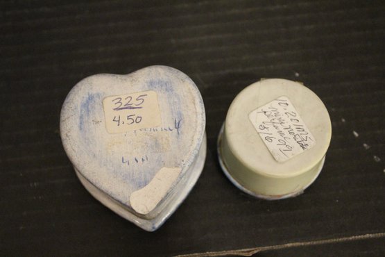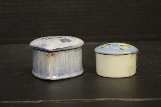 two small, vintage-inspired ceramic trinket boxes 2" x 2"
