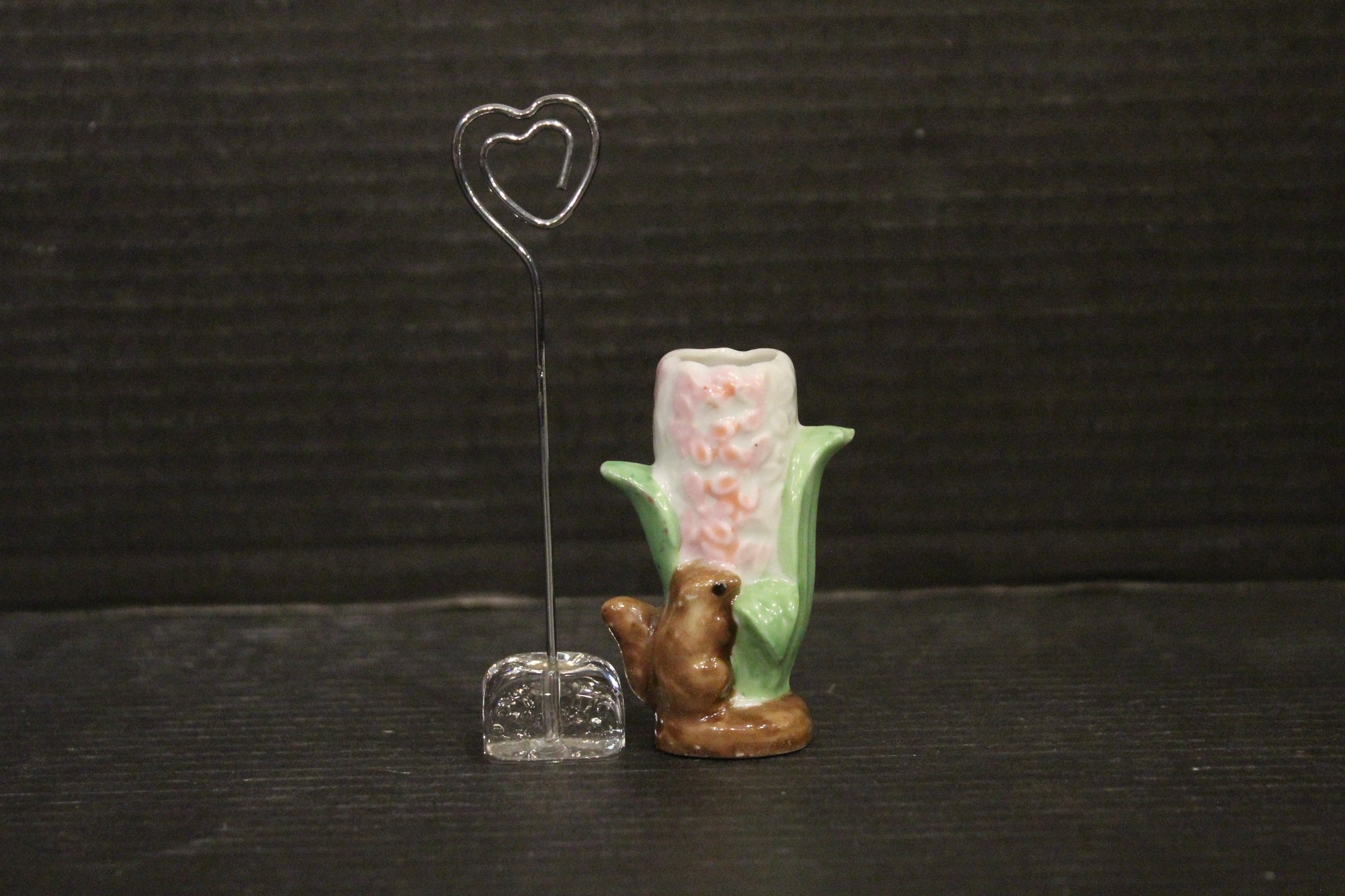a vintage ceramic McCoy Hyacinth vase, possibly from the 1940s or 1950s, made in occupied Japan 3"