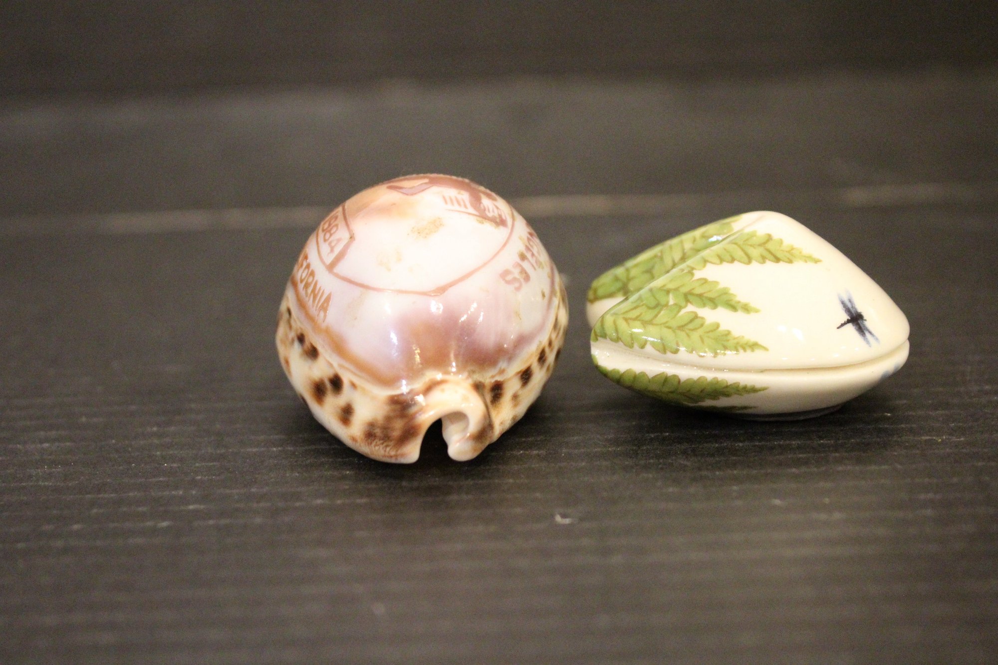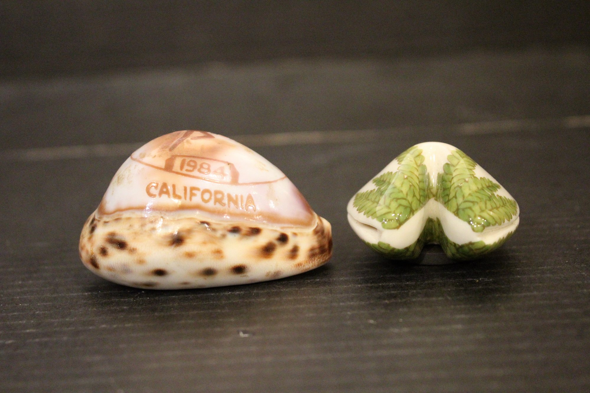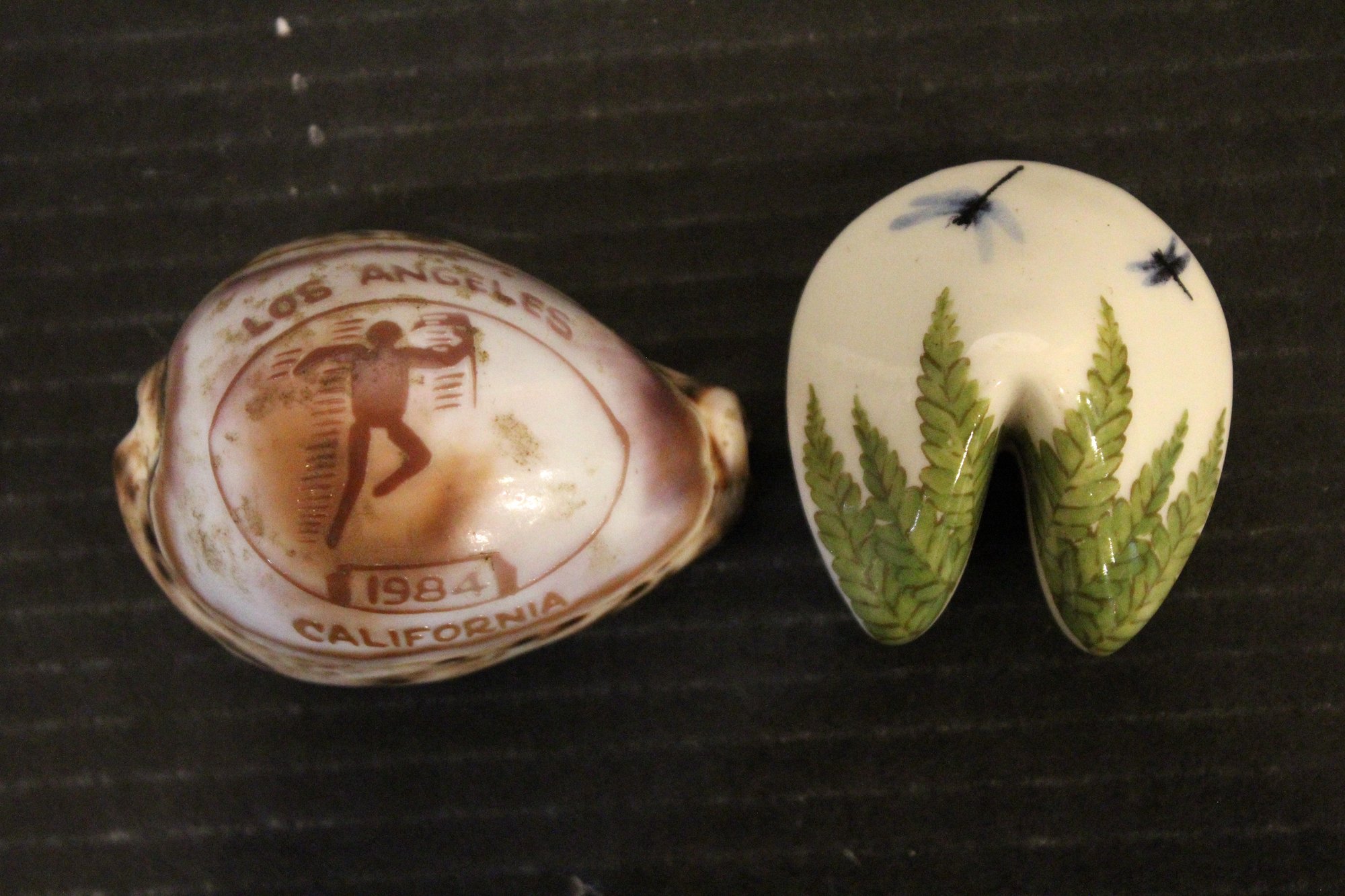 carved tiger cowrie seashell souvenir from the 1984 Los Angeles Olympics 2" x 2"