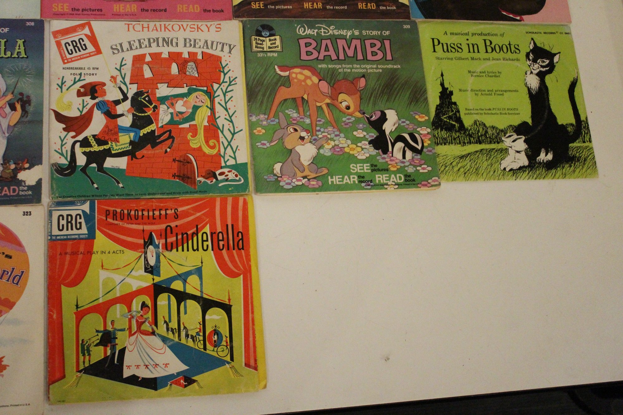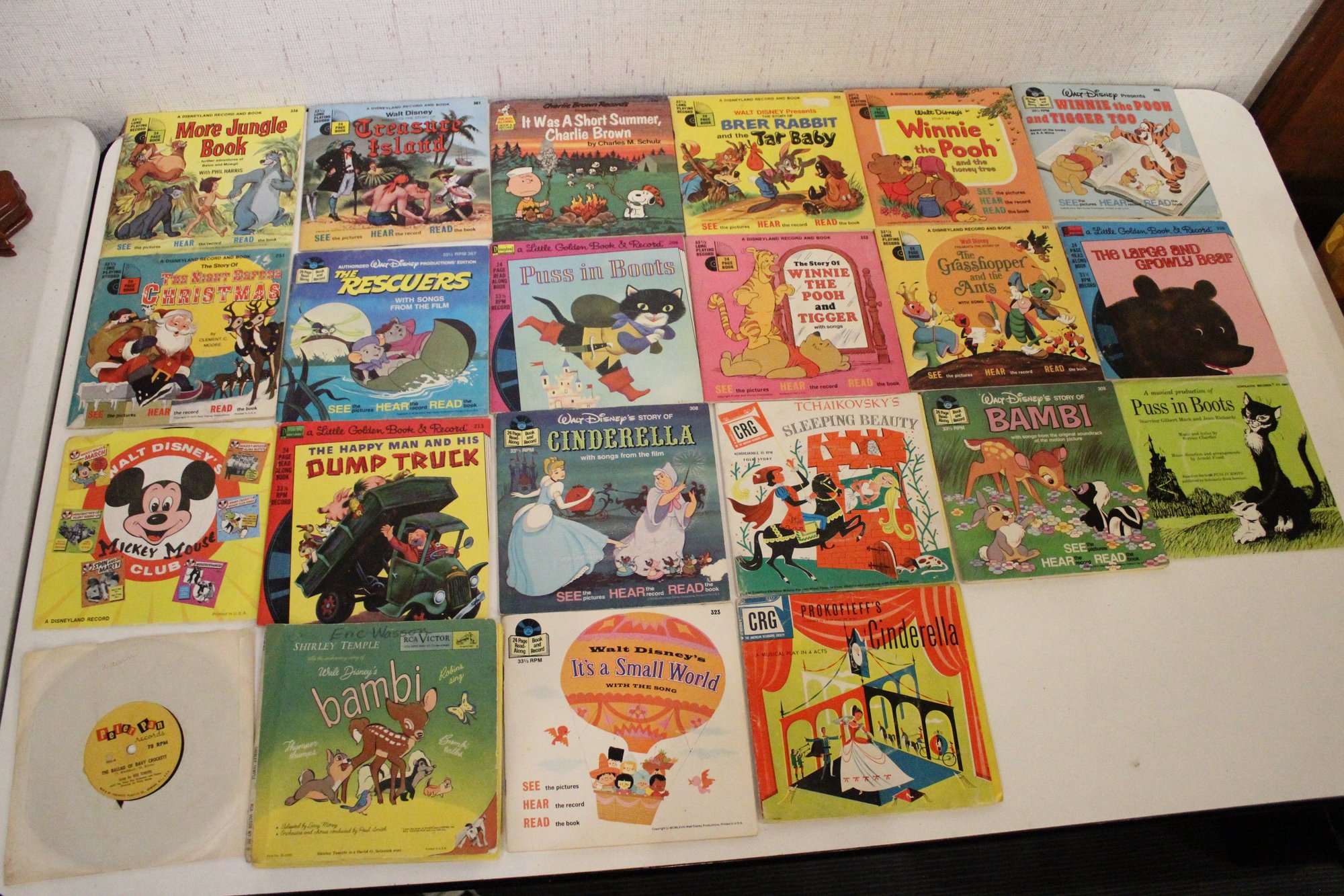 A large lot of vintage Walt Disney and other children's book and record sets. These items can be shipped.