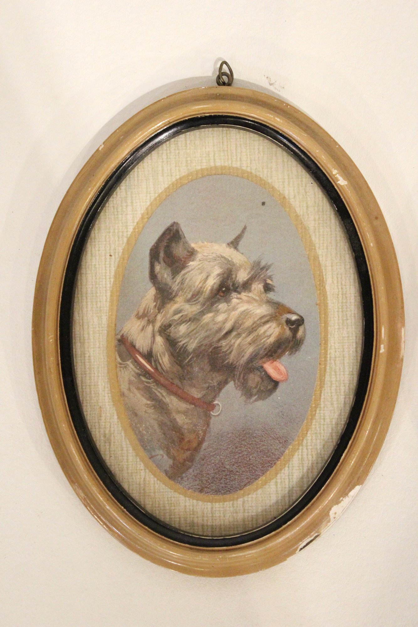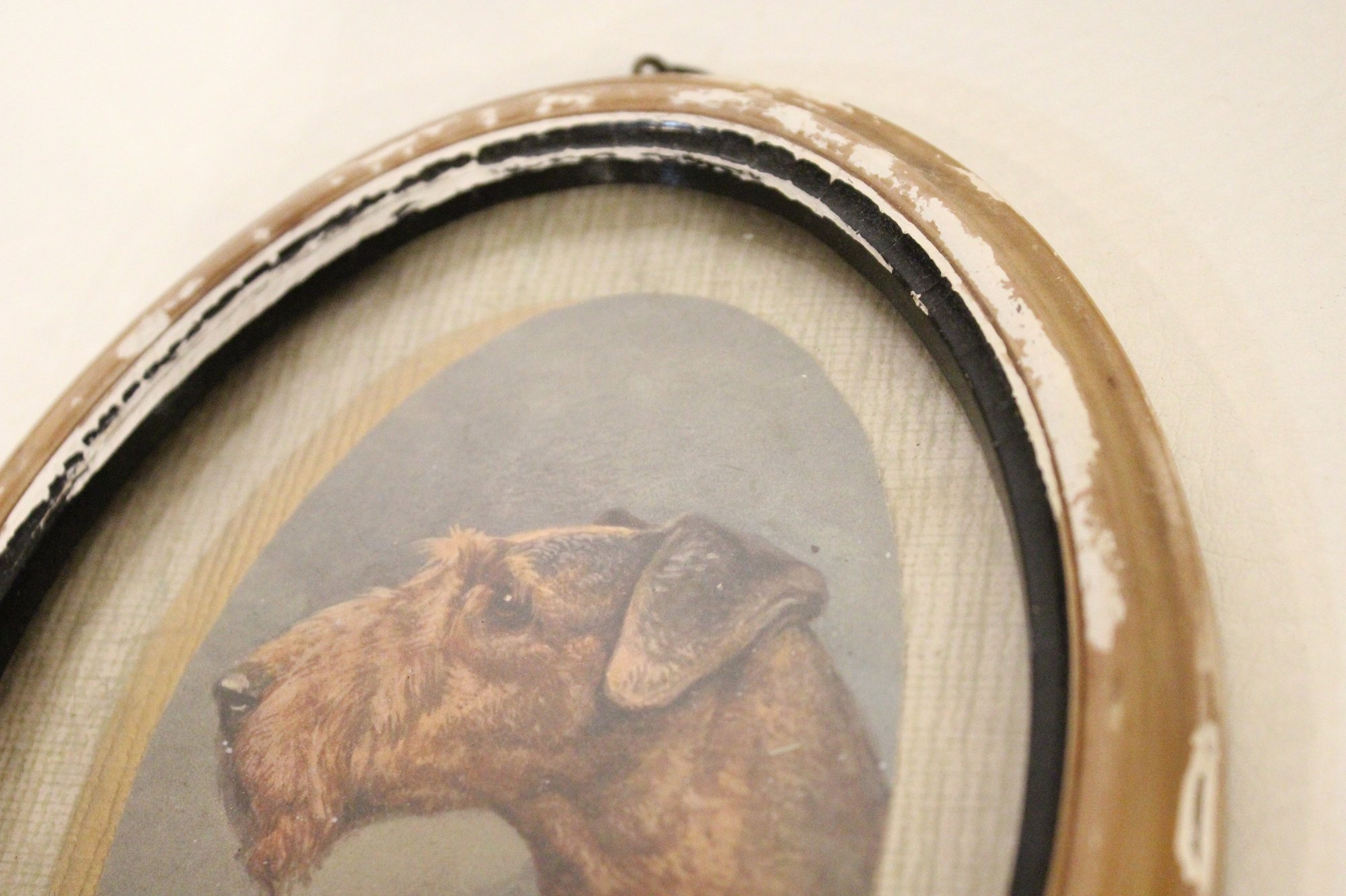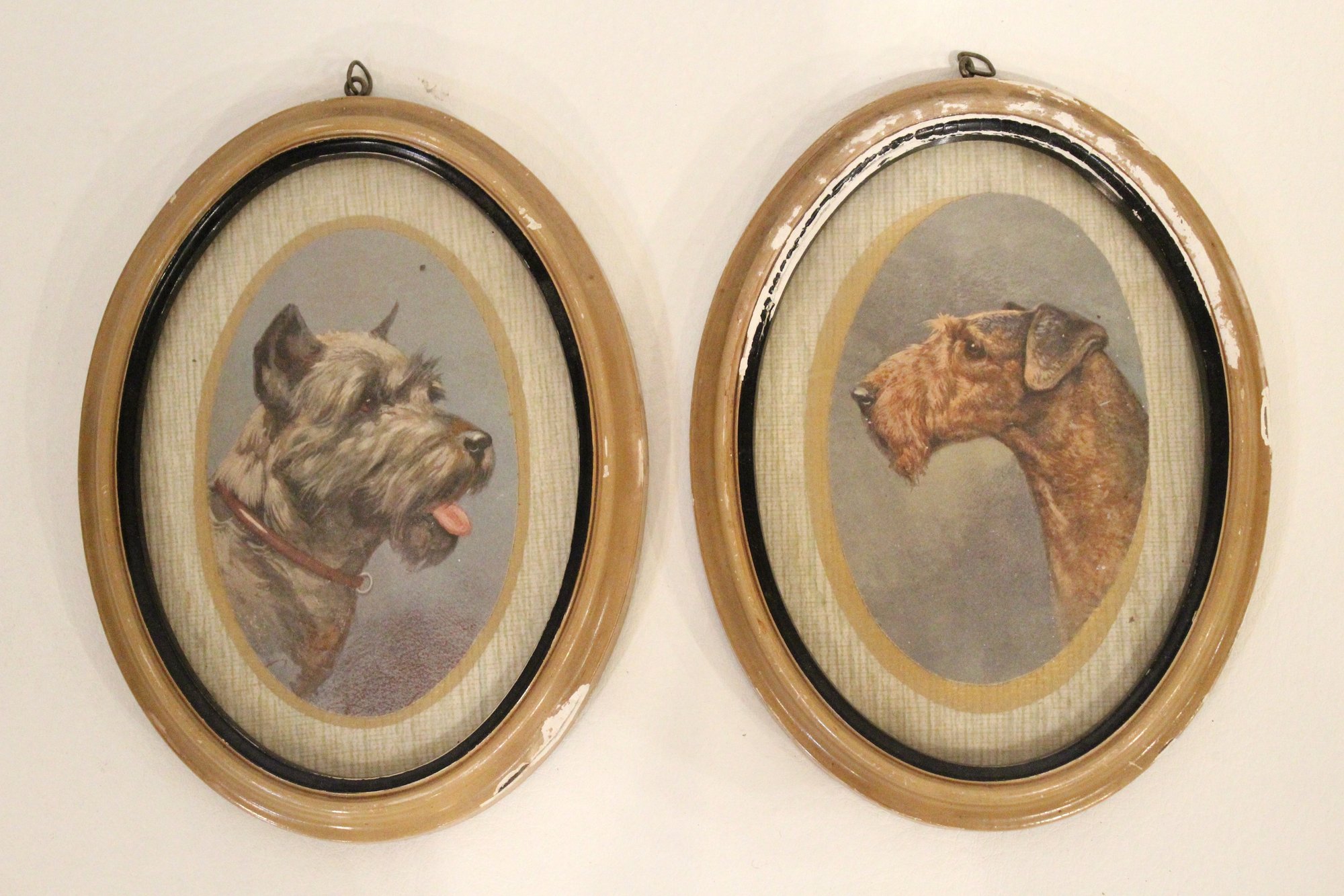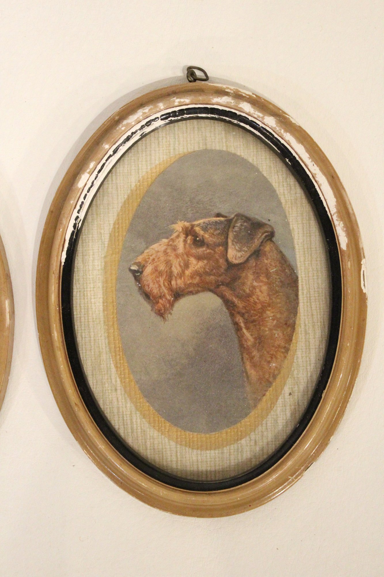 2 vintage dog portrait postcards in oval frames 8" x 6", both have ware as pictured. These items can be shipped.