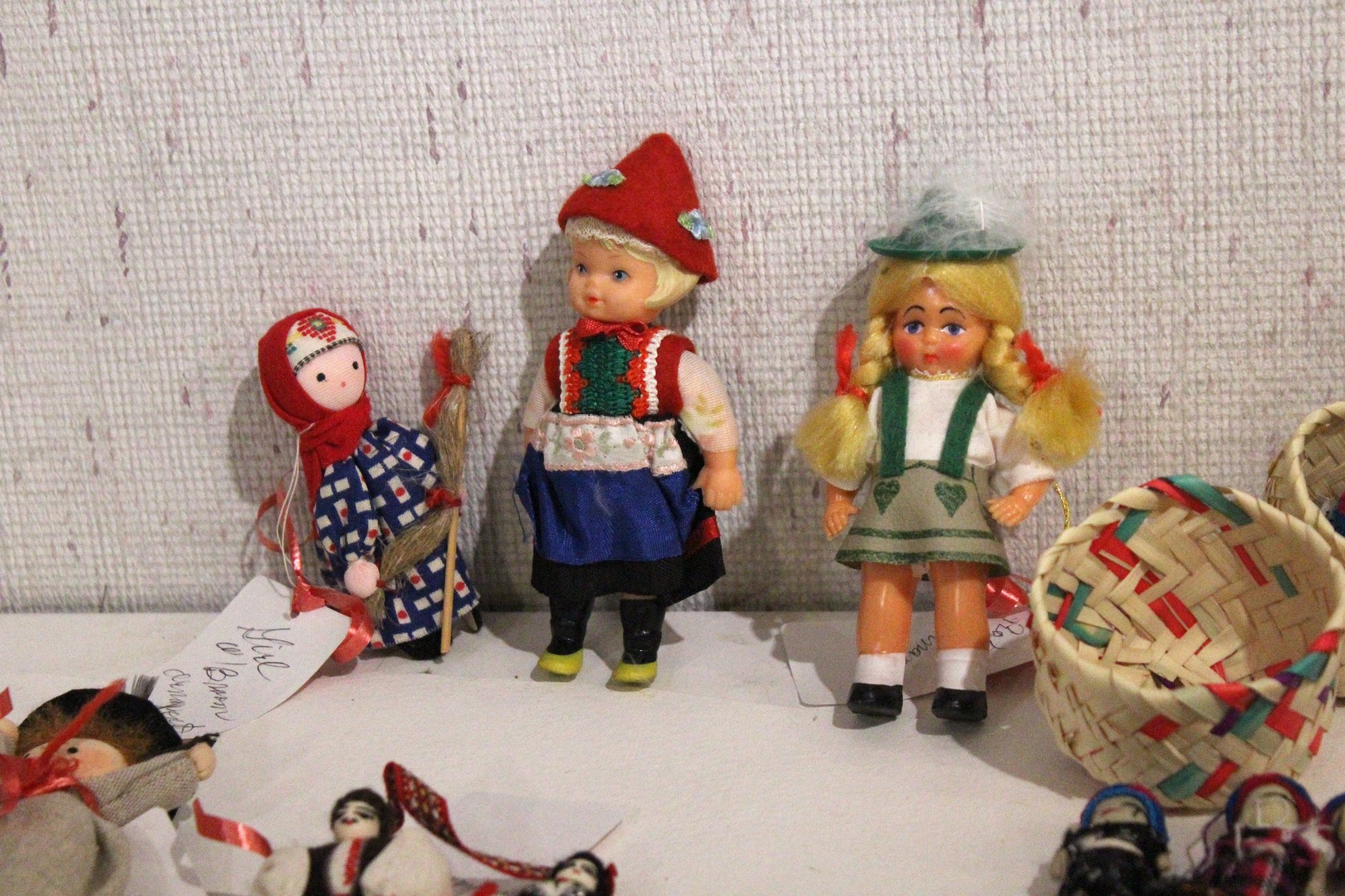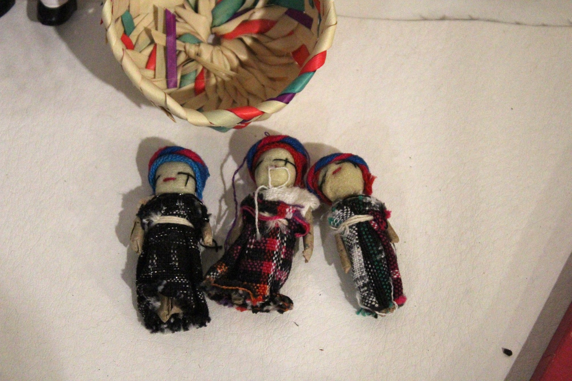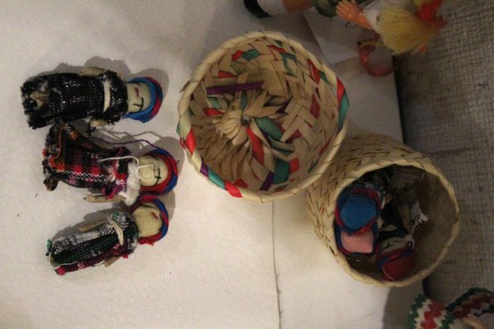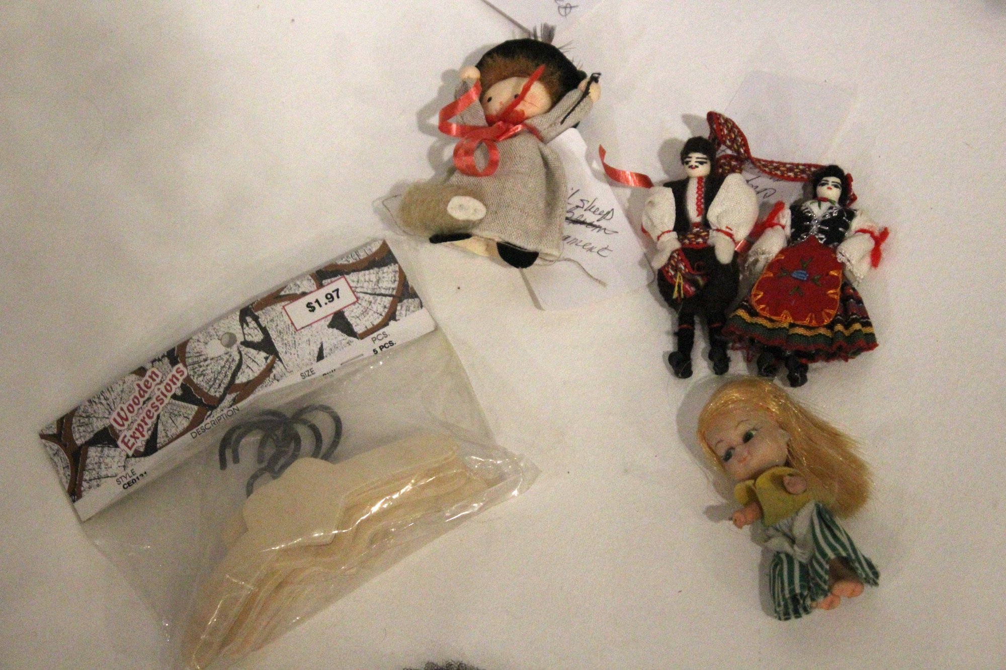 - small doll, possibly a vintage folk art or souvenir dol