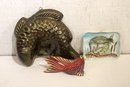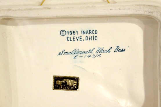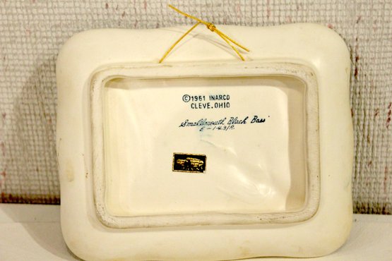 vintage 1961 Inarco "Smallmouth Black Bass" porcelain fish-themed 3D platter, 6" x 5" x 2"