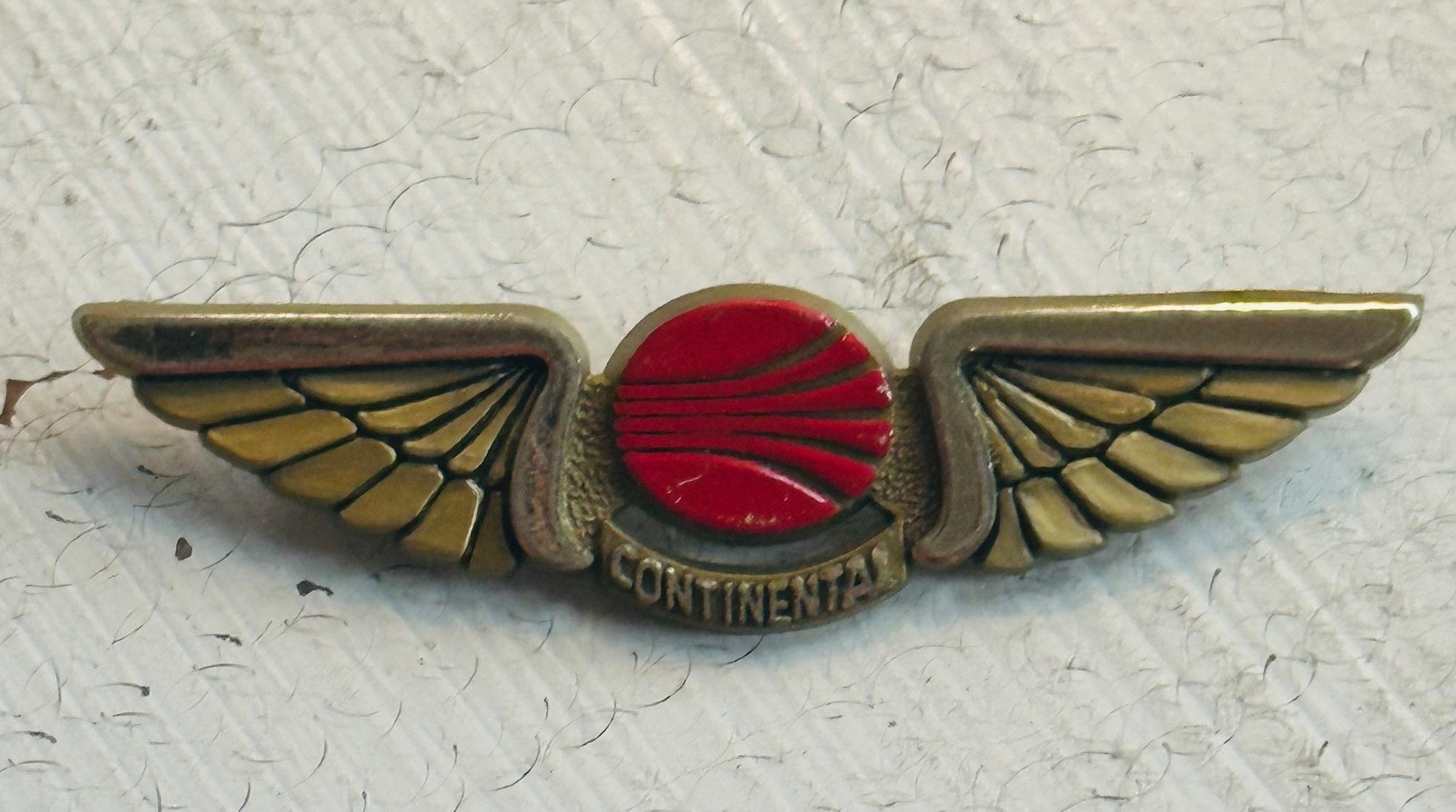 Vintage Gold Tone Plastic Continental Airlines Collectible Jr. Pilot Wings Pin.