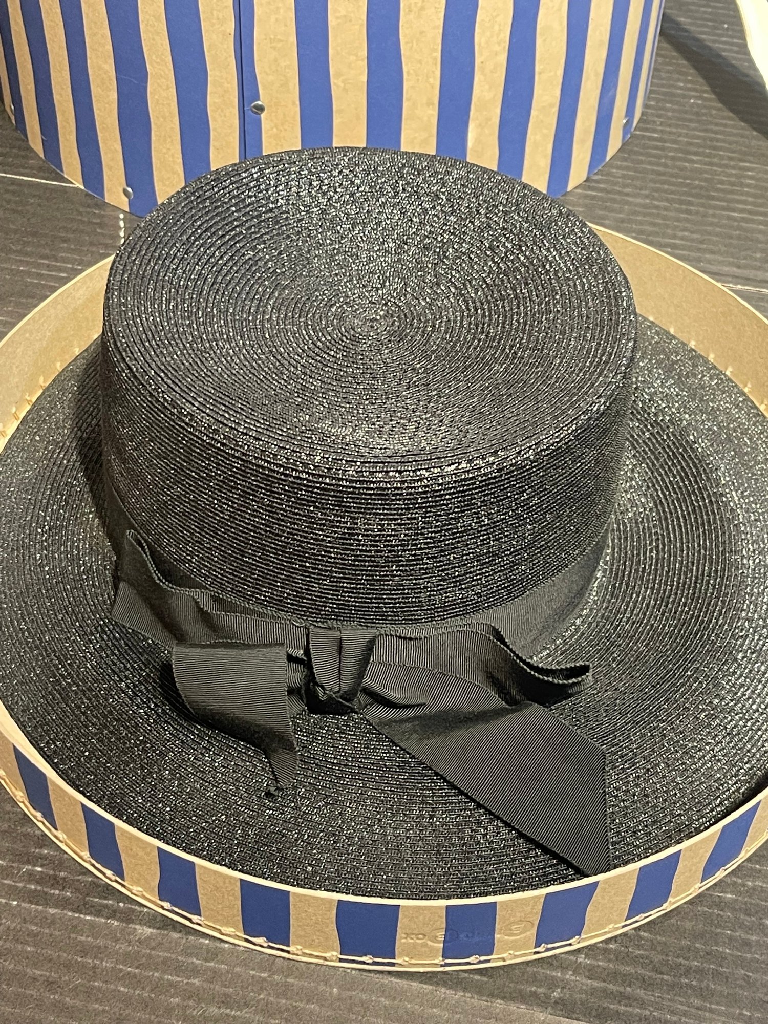 This hat comes with a hatbox and is size medium.